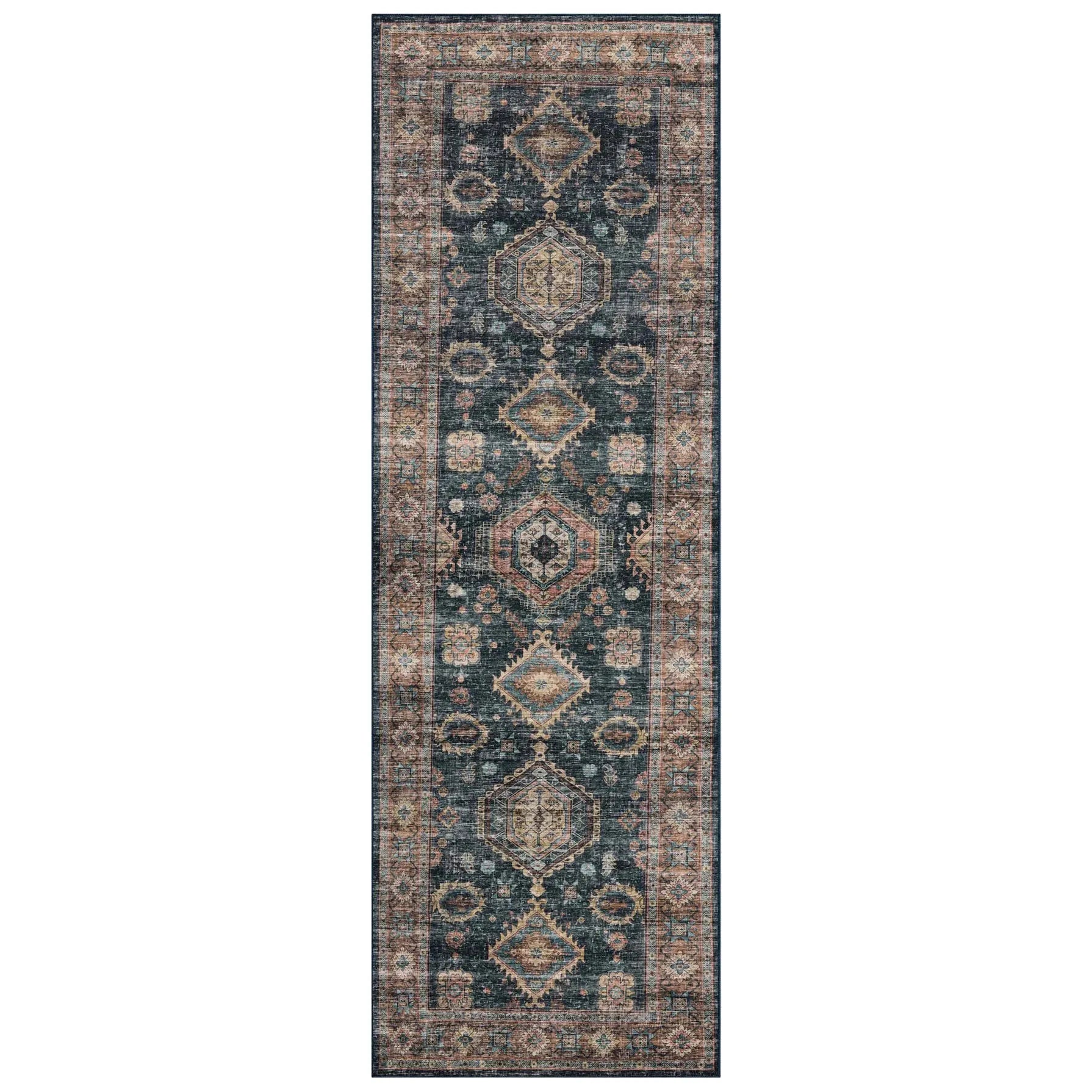 The Anniston Collection is a washable rug with traditional motifs in beautifully saturated and distressed tones. This durable area rug is power-loomed of polyester and designed for the busiest rooms of the home-living rooms, bedrooms, kitchens, hallways, and more. It can be washed in a home washing machine without an agitator, depending on the size. Any rug size 5' x 7'6" or smaller, including all runners, can fit into a washing machine that's 3.4 cubic feet or bigger; 6' x 9' rugs require a washer that's 4.2 cubic feet or bigger, 7'6" x 9'6" rugs require a washer that's 4.8 cubic feet or bigger, 9' x 12' rugs must be washed in a commercial washer with at least a 60-lb capacity. Wash in cold water, delicate cycle, with mild detergent, and no bleach, hang dry or lay flat to dry.
