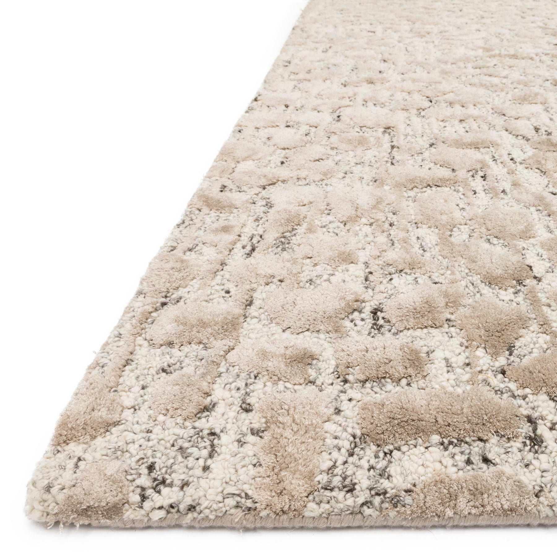 Inspired by nature’s most textured landscapes, the Juneau Collection offers a striking foundation to build your room around. Each piece is hand-tufted with rayon and wool by artisans in India for a silky shine that highlights the high and low effects in the pile.