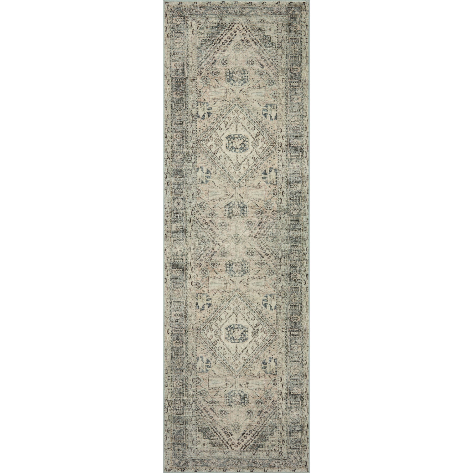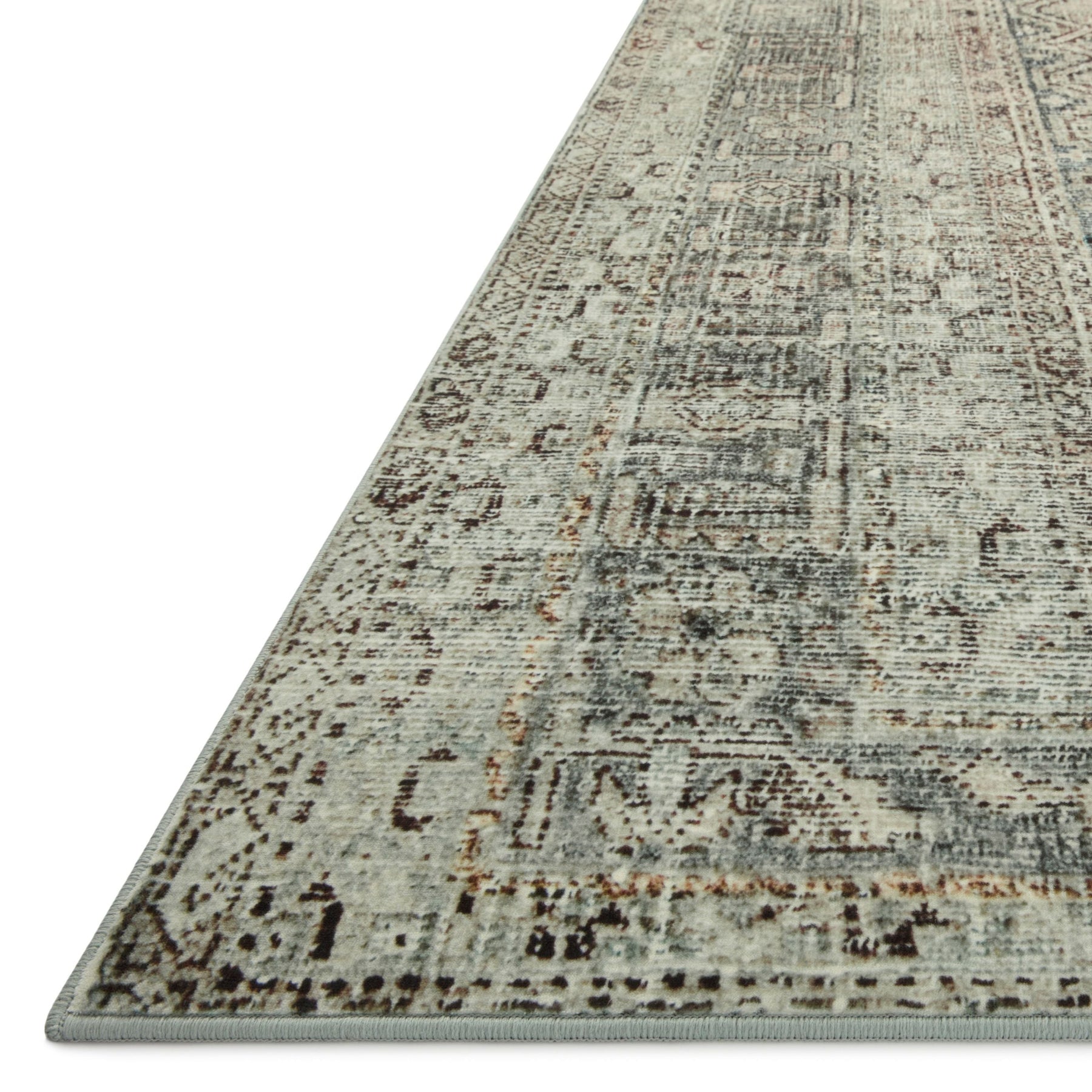 The Sinclair Collection for Magnolia Home by Joanna Gaines x Loloi is power-loomed of polyester, including 58% Global Recycling Standard (GRS) certified recycled polyester (made from recycled plastic bottles), certified by Control Union 1171944. Sinclair area rugs have incredible softness and durability comparable to classic power-loomed rugs, while also reducing waste in their production. This collection is also machine-washable, making it an ideal rug in high-traffic living rooms, hallways, entryways, and children’s rooms. The design features antique motifs with intricate details and slight distressing, creating a sophisticated, storied feel.