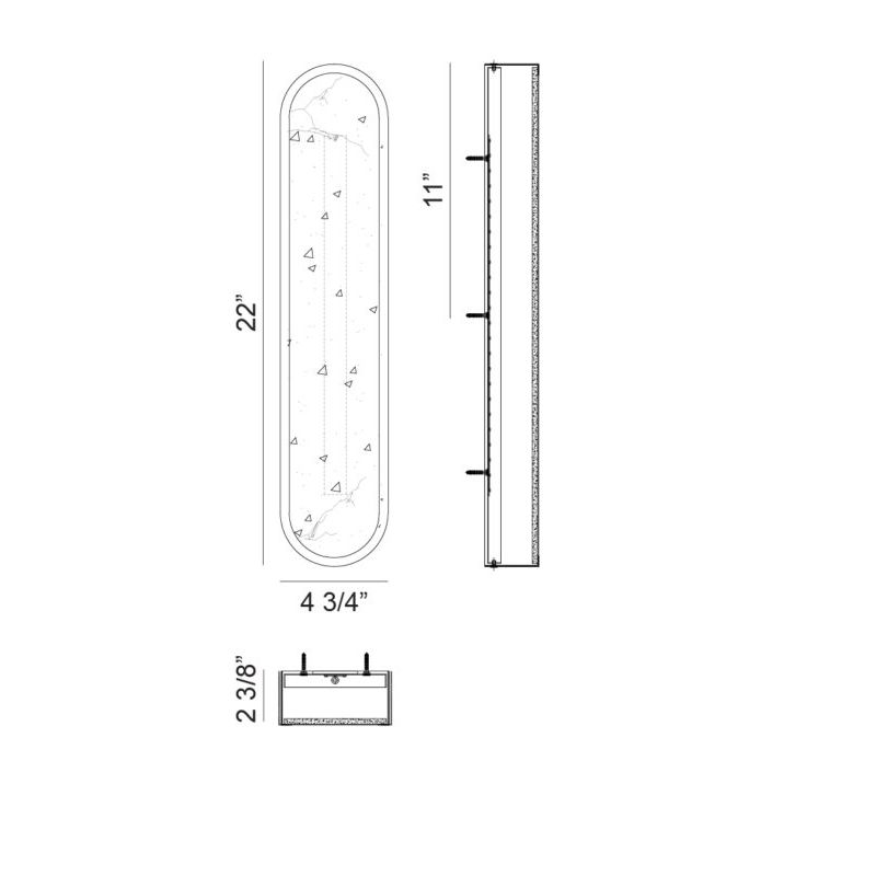 • Dimensions: 4 3/4"W x 22"H x 2 3/8"E