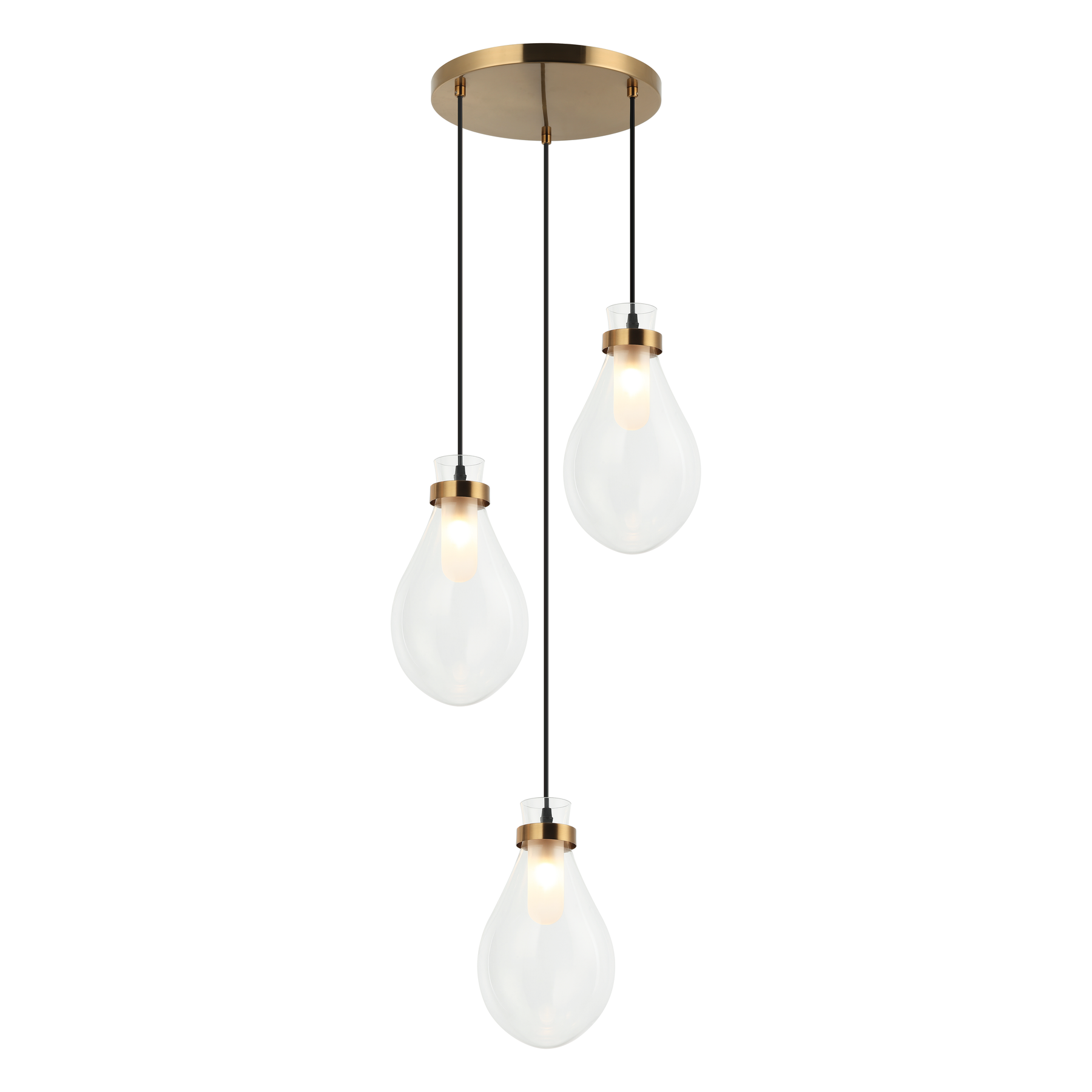 The Seranna family is available in Aged Gold Brass or Matte black with teardrop shaped clear glass. The graceful drop style wall sconce, single pendant and cluster pendants in three, five and seven light options are all beautifully elegant and will present a stylized look in any room.