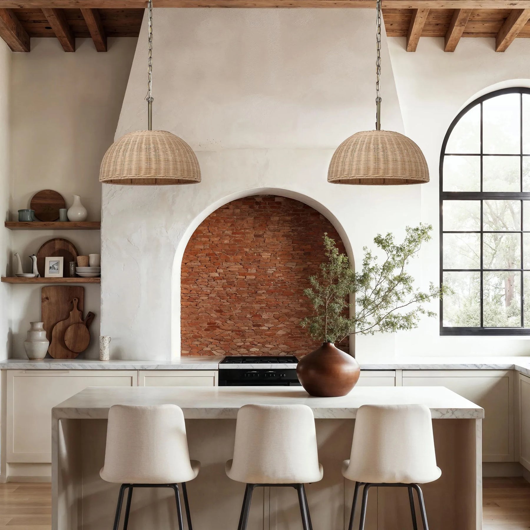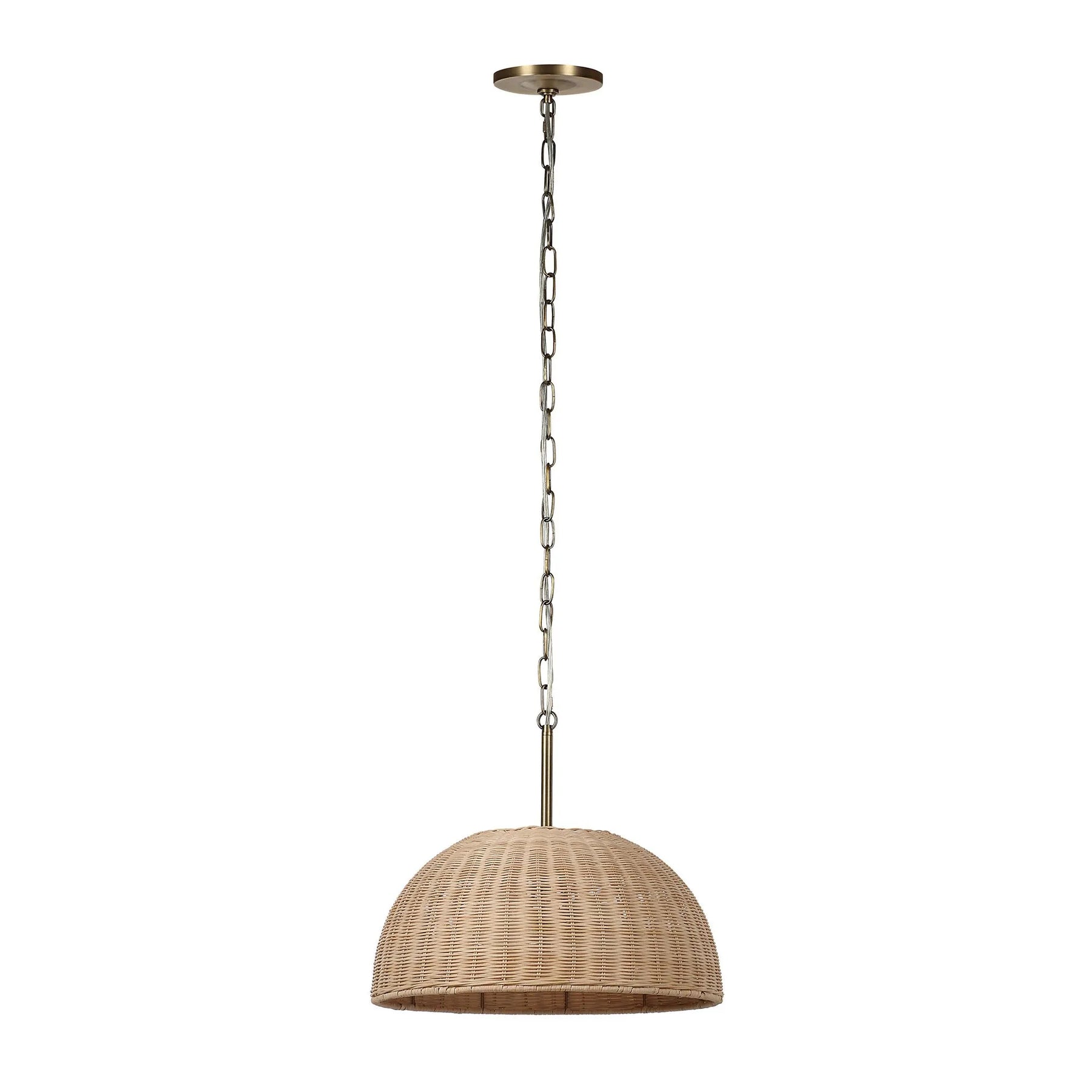 Transitional style is a wrap with the casual vibe delivered by this rattan ceiling fixture. An excellent choice for hanging above a table or in multiples over a kitchen island, it brings a warm and natural touch to any space. Dark antique brushed accents lend timeless flair, making this pendant a must-have addition to your design project.