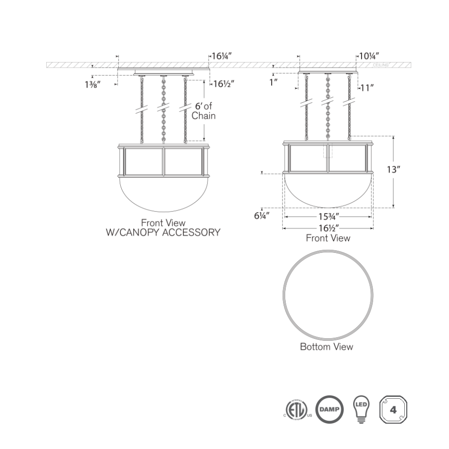• Lamping: 1 x 15W LED, A19, E26 Keyless Socket