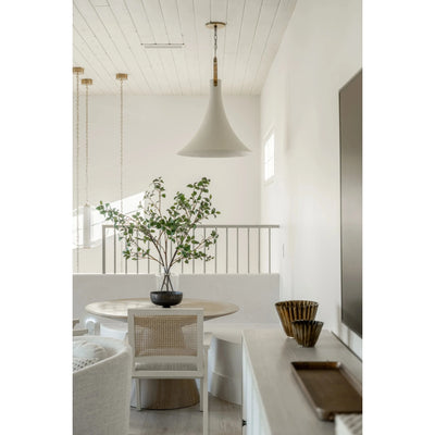 Effortlessly chic and endlessly usable, this pendant features a slender shade that starts narrow and slopes outward. The curved hardware detail at the top is simple but stunning, drawing the eye and elevating the design. Radcliff would look beautiful in the kitchen as a single light in the center of the room or in multiples over the island.