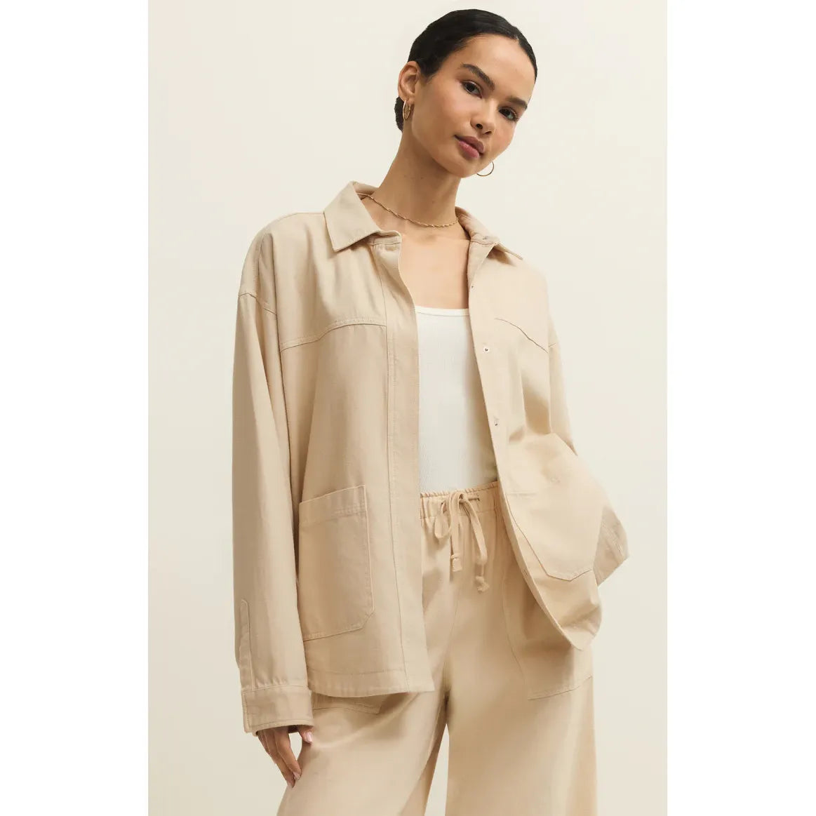 Soft twill and a relaxed fit make this jacket equal parts polished and practical. Made from our Sunspun Twill fabric, this jacket offers a relaxed fit with patch pockets and a button-up front. The longer length gives it full coverage and an effortlessly laid-back look.
