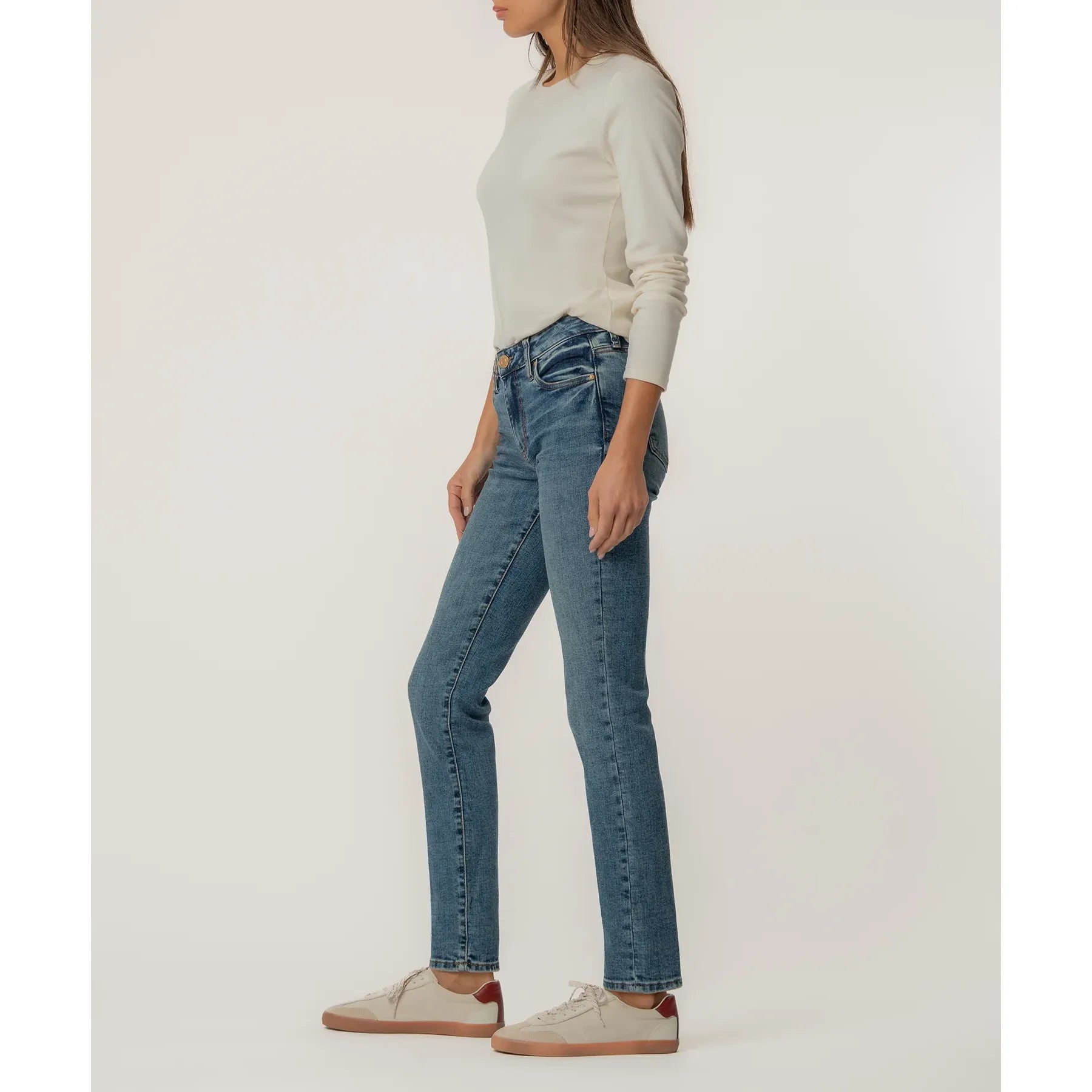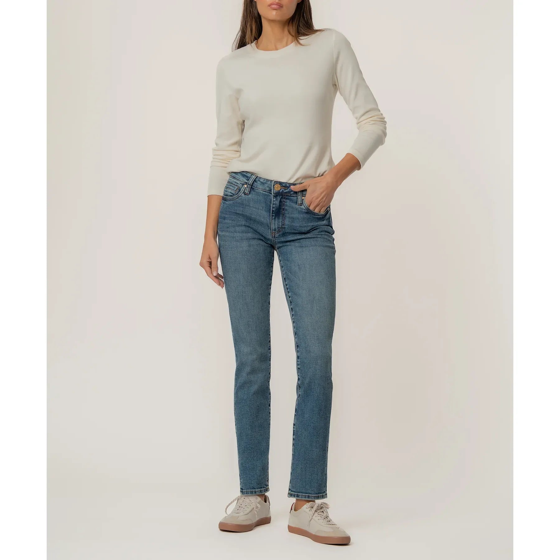 These mid-rise boyfriend jeans in a relaxed fit and classic medium wash are made from super stretchy fabric for ultimate comfort. Easily roll them up or down to switch up your look from casual to cool in seconds. Perfect for laid-back days with effortless style.