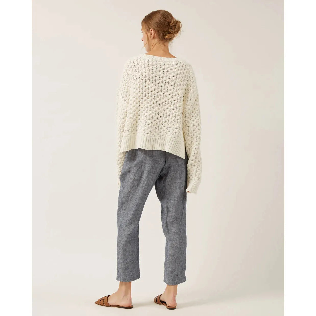 Meet your new go-to: The Clover Sweater - 100% cotton twisted cable knit - an effortlessly stylish staple for everyday wear. Crafted from pure, breathable cotton, this sweater features a classic cable-knit design with a modern twist. The intricate texture adds depth and character, while the soft, natural fibers keep things comfortable all day long. Long sleeves and a relaxed silhouette make it easy to layer or wear on its own, perfect for transitional weather and laid-back days.