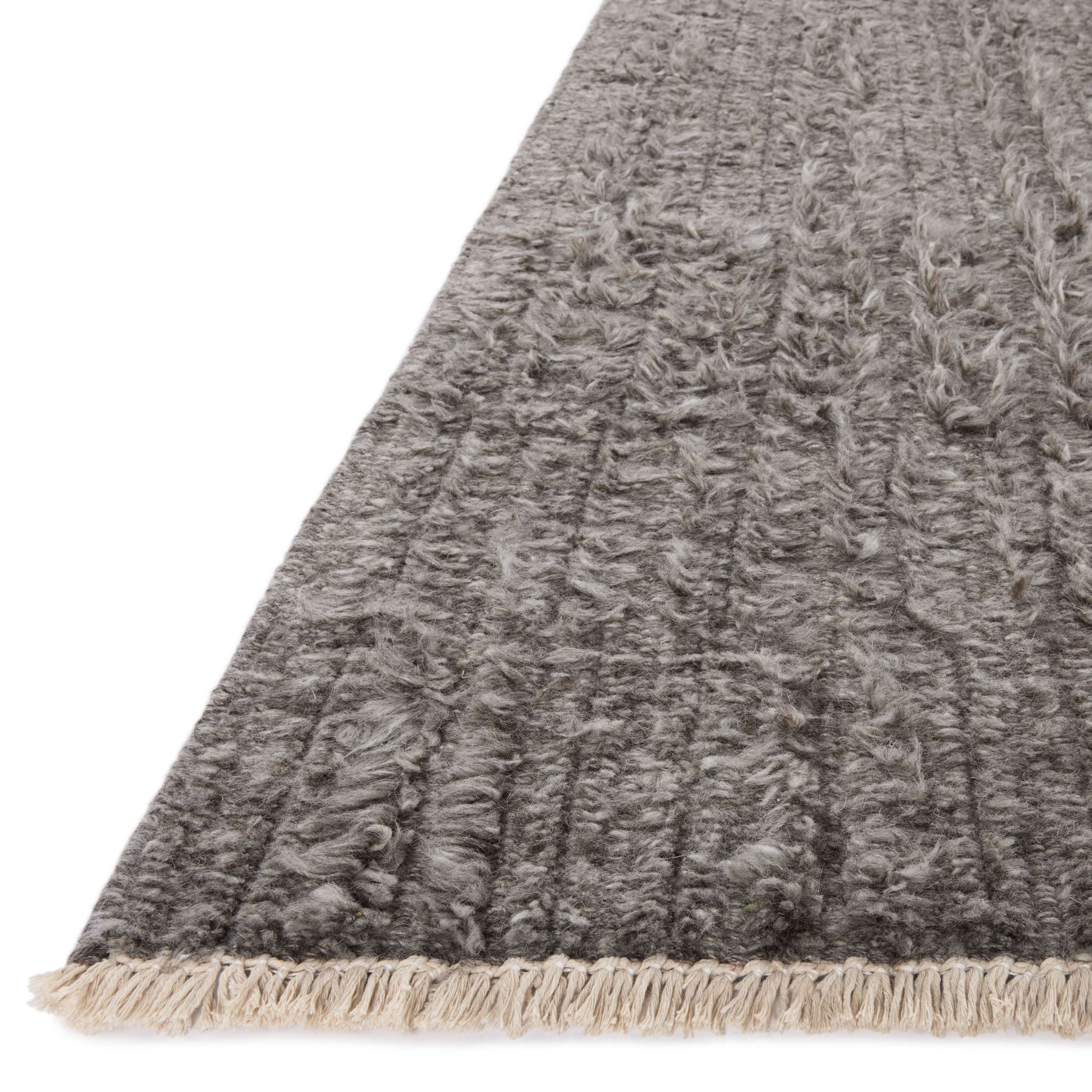 Irresistible to walk upon, the Dana Collection by Brigette Romanek x Loloi has a high-low texture that alternates between a subtly shaggy pile and a soft base. Horizontal broken stripes give the area rug a fresh and energized structure, while a finish of fringe along the edges accentuates its sense of movement. The Dana Collection is hand-woven of wool, cotton, and other fibers in India and GoodWeave-certified, ensuring our commitment to ethical production and the support of weavers' communities.