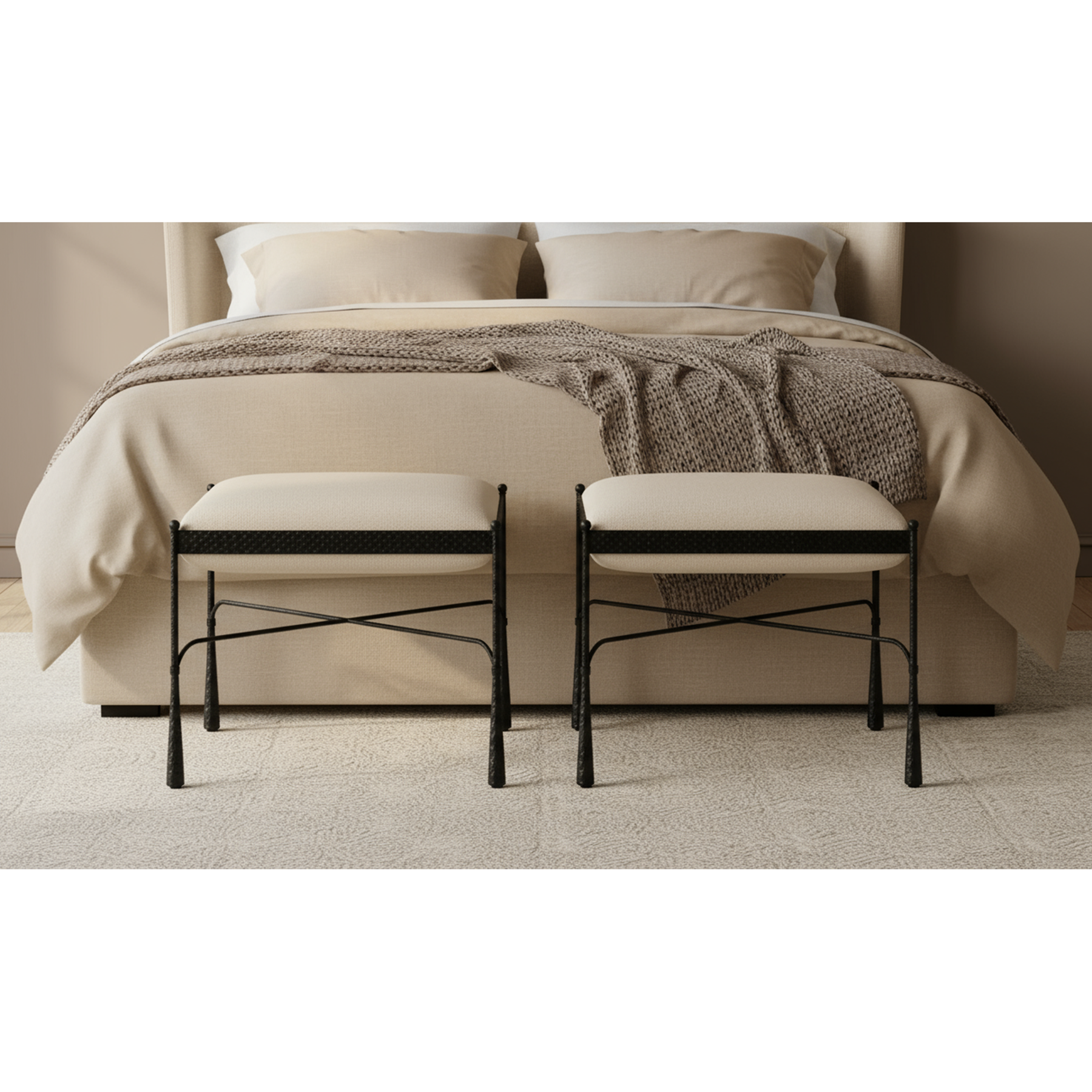 Flared legs. Nailed the landing. Agne brings a refined kind of flair. Its exposed iron frame feels sculptural and grounded, while the flared legs and finial detailing nod to vintage forms. The seat is finished in a soft, looped weave that adds texture and contrast without stealing the spotlight. It’s equal parts structure and softness—a thoughtful mix of form, function, and just the right amount of flourish.