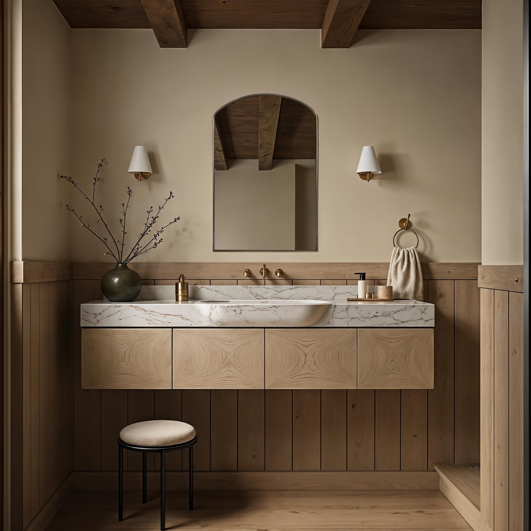 The Clarisse arched wall mirror blends classic elegance with contemporary flair. Its stainless-steel frame, finished in warm aged brass, highlights a graceful arch that adds depth and character to any room. Perfect for entryways, bedrooms, or living areas, this mirror reflects light beautifully while serving as a stylish, architectural focal point in your interior design project.