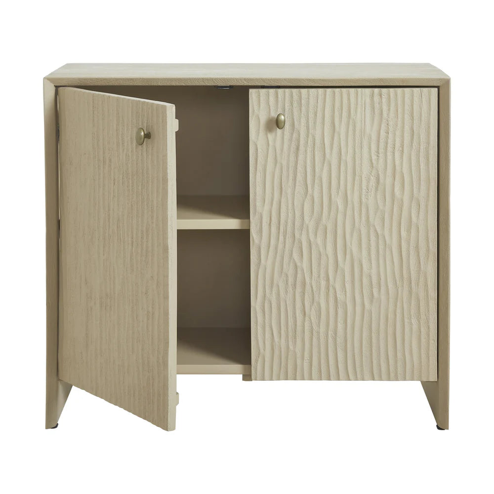 Add effortless function and style with the Willa 2-door cabinet. Its light or walnut finished mango wood body, sandblasted texture, and antique brass knobs create subtle elegance, while a clean transitional silhouette offers timeless appeal. Compact yet versatile, it’s perfect anywhere, from entryways to living rooms, blending practical storage with refined, understated charm.