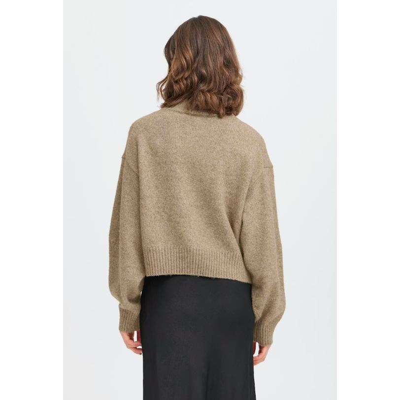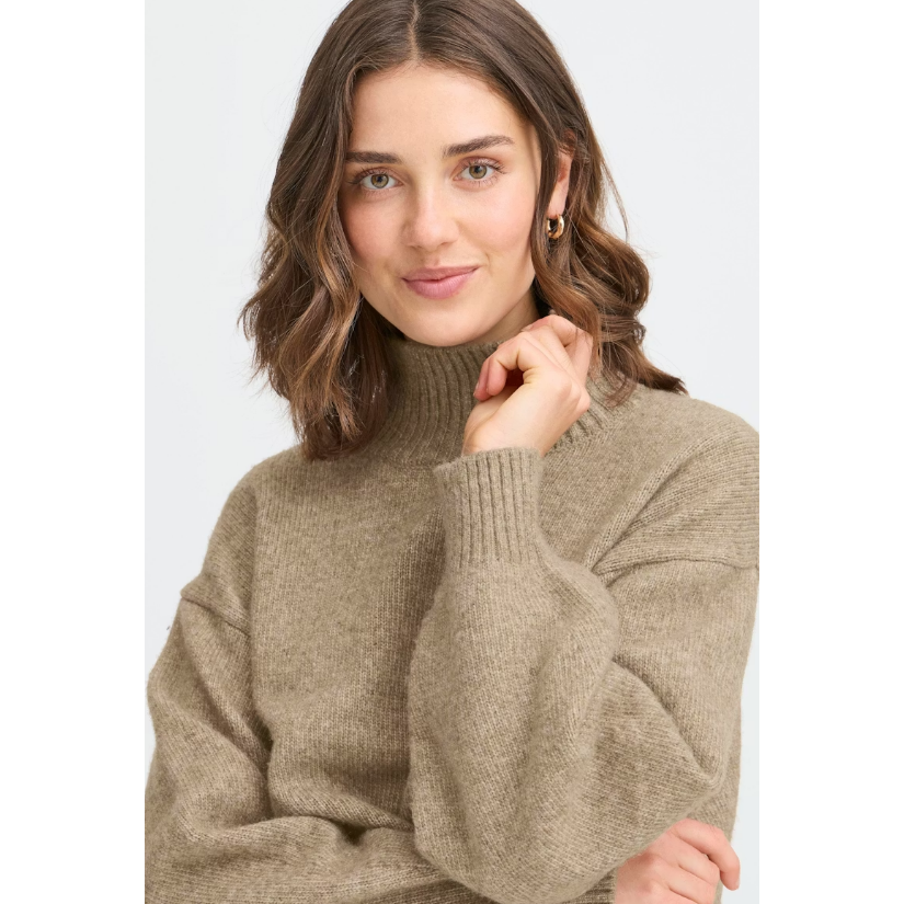 This women's turtleneck sweater boasts a laid-back fit with a trendy shape. It’s detailed with ribbed edges at the neckline, cuffs, and hem to keep you comfy and chic. Perfect for layering, it’s a playful addition to any casual or in-between-season outfit.