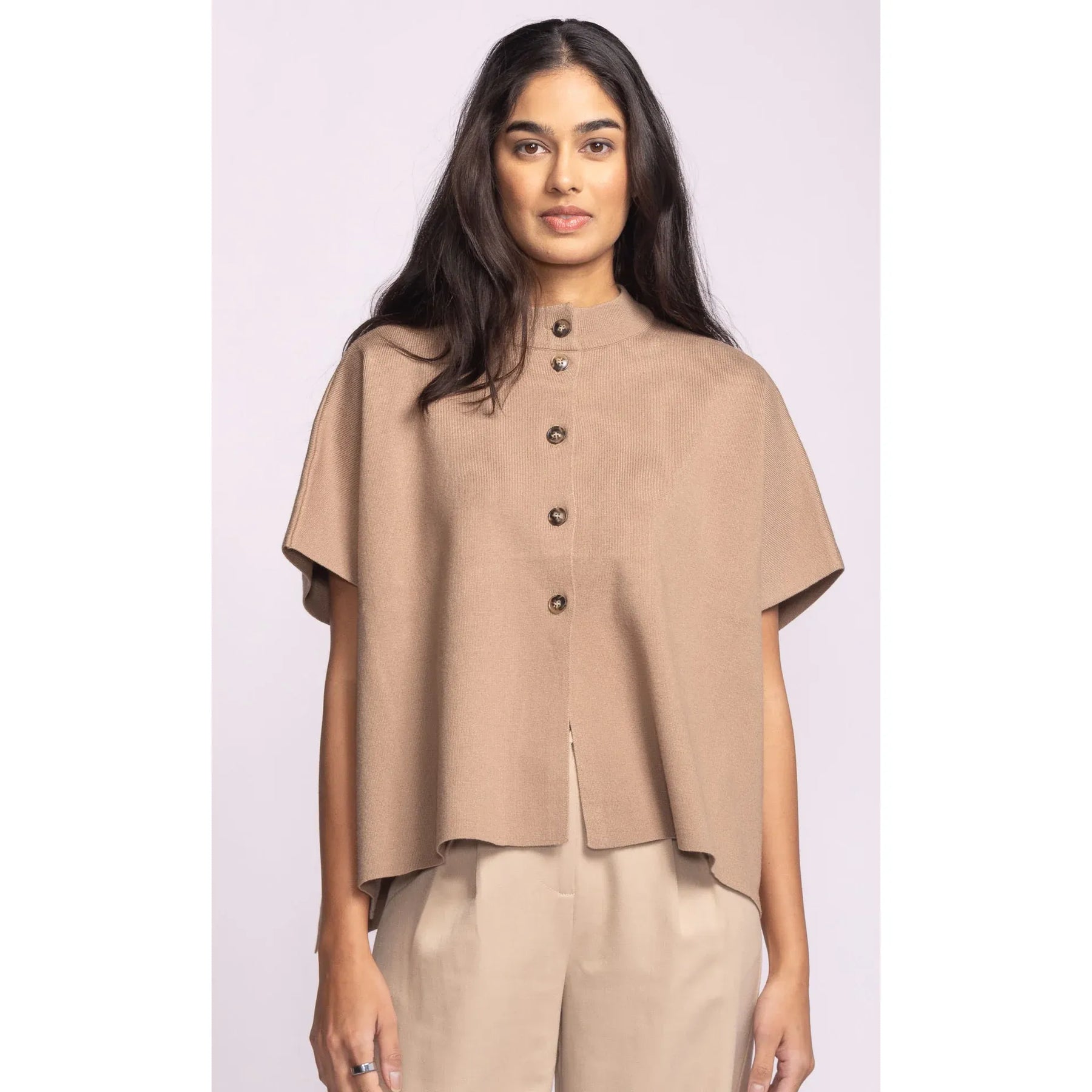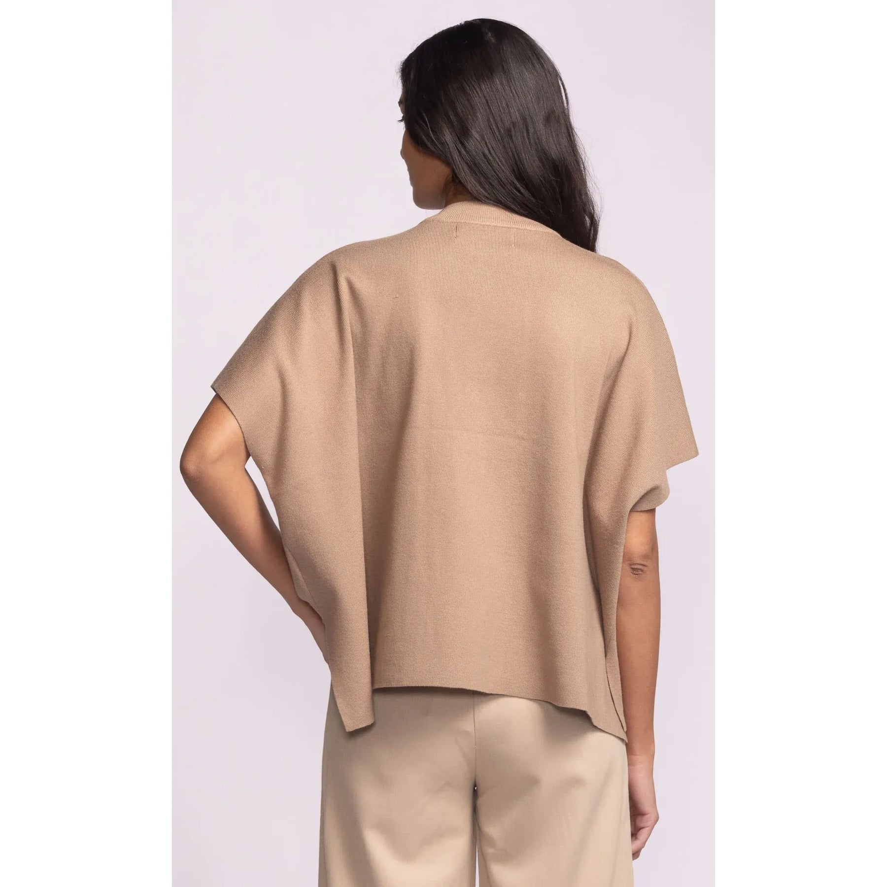 The Melrose Sweater is a mock neck button-up knit sweater designed with a seamless, boxy silhouette that drapes effortlessly. Finished with extended sleeves and a clean front closure, it's the perfect piece to style with tailored pants for a polished in-office look or jeans for casual elegance.