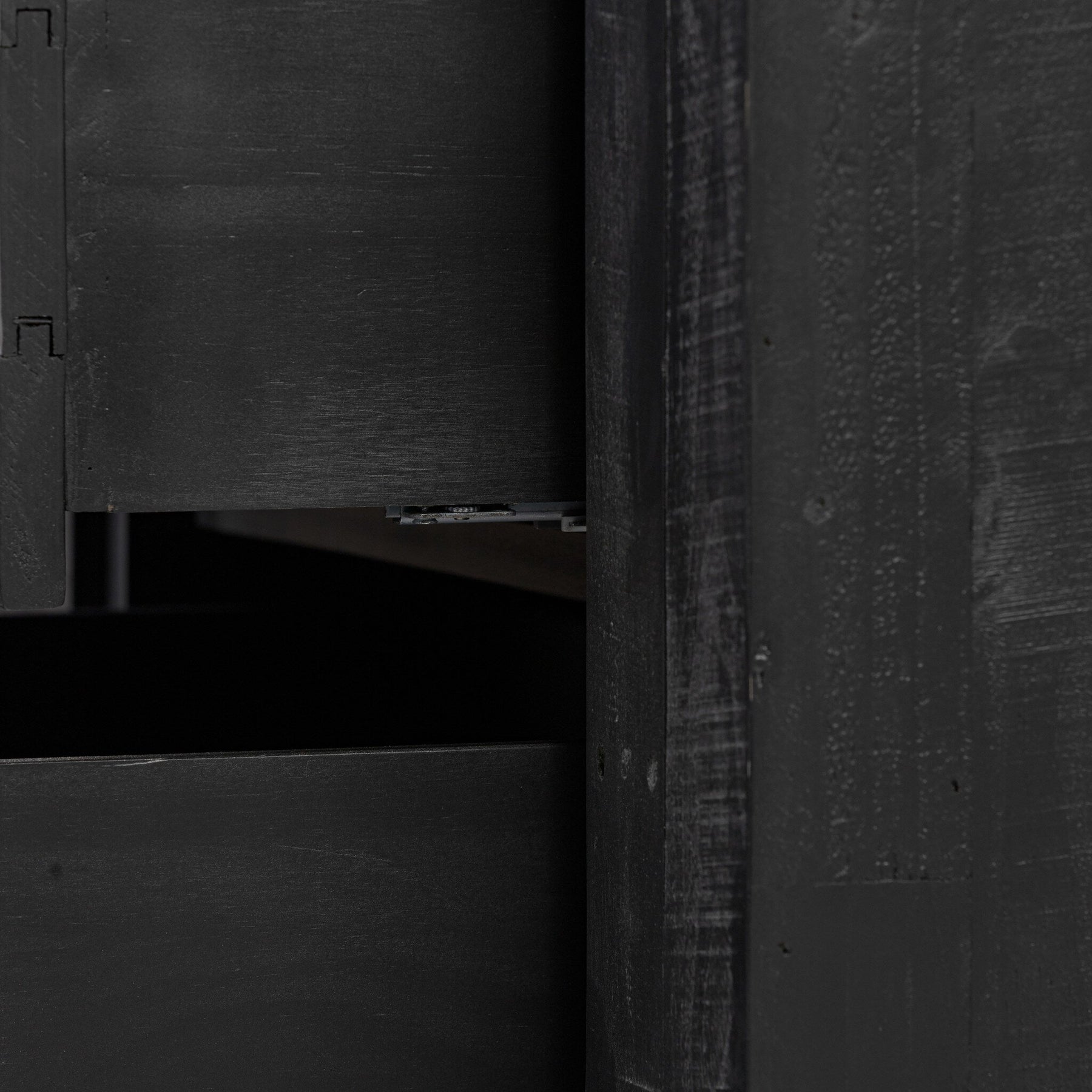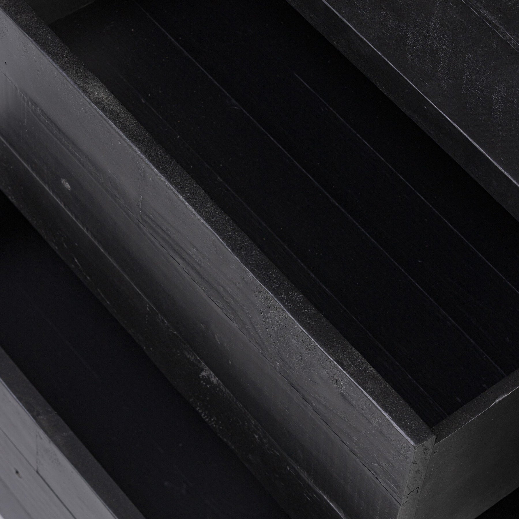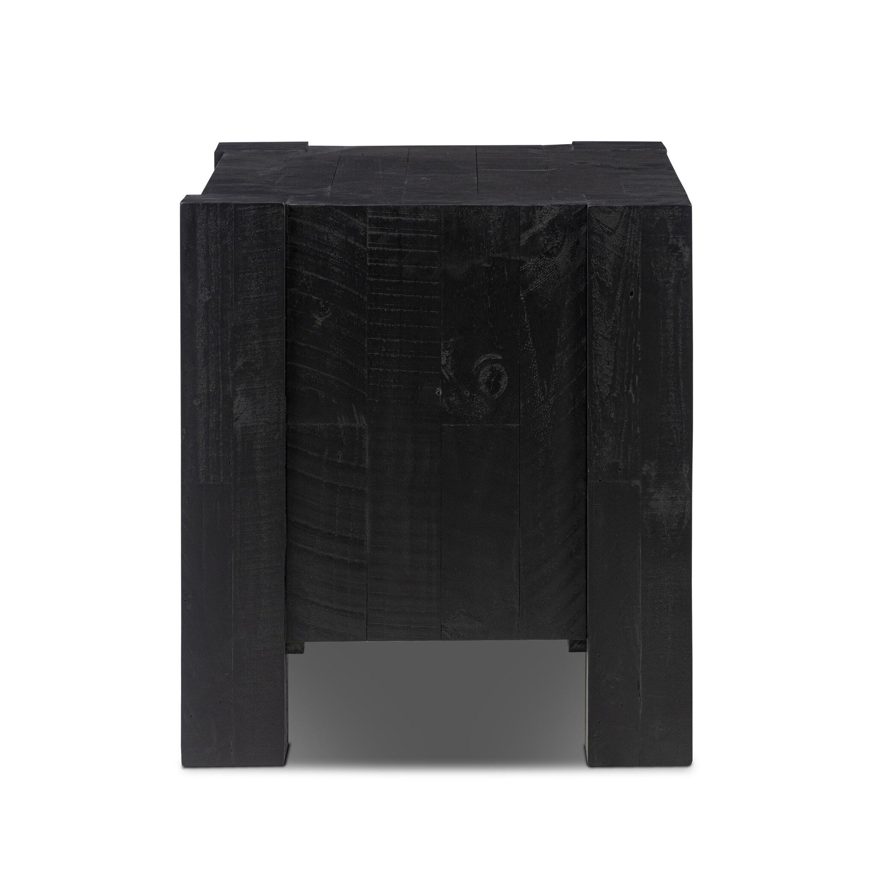 Beauty in simplicity. A clean cube of aged black-finished pine can be styled into a wide range of styles and spaces.
