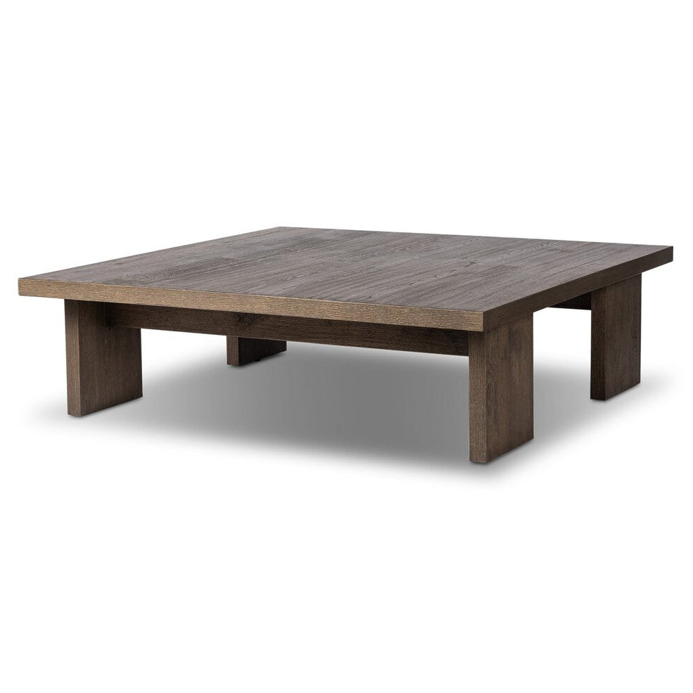 A squared coffee table of rich oak veneer meets clean lines with wide proportions, bringing a beautifully natural look to your living space.