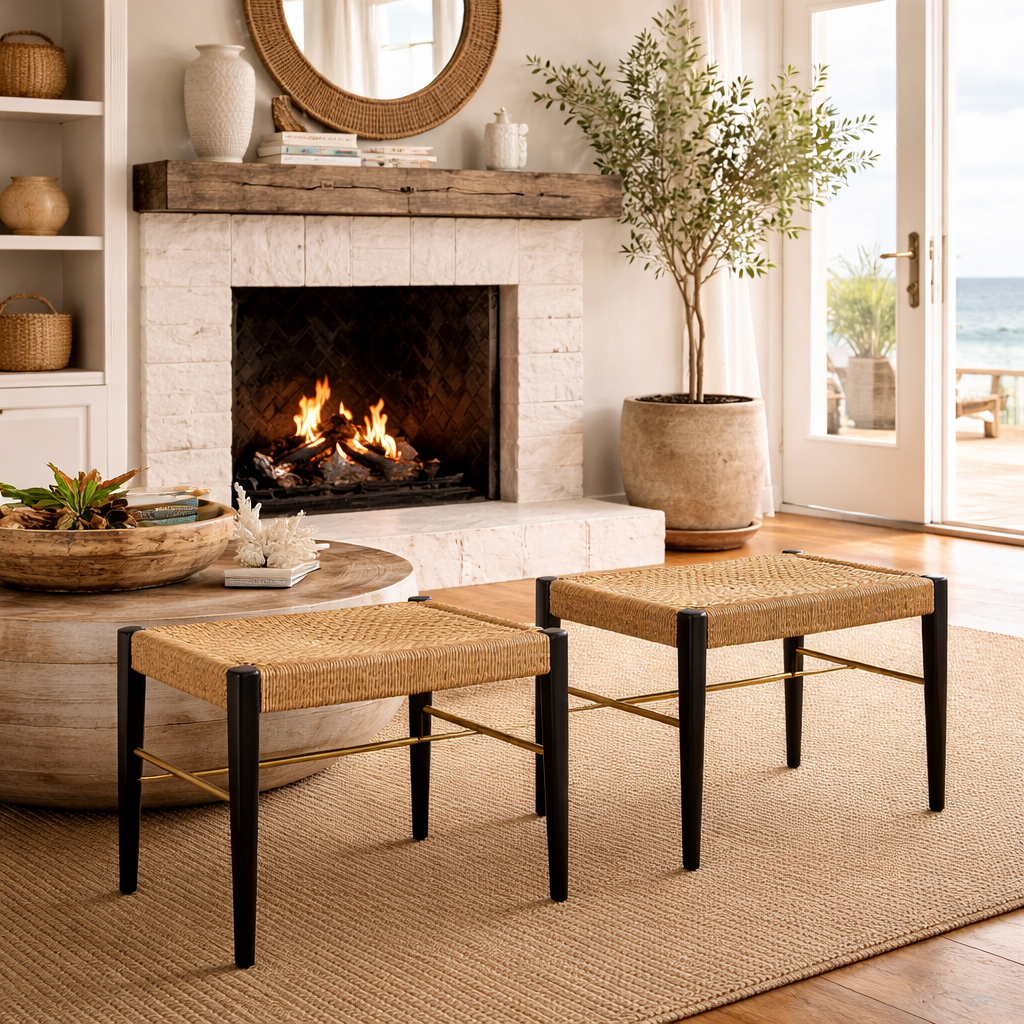 This modern take on a classic stool design offers timeless style for any space. Features a black beech timber wood frame with a natural rope seat.
