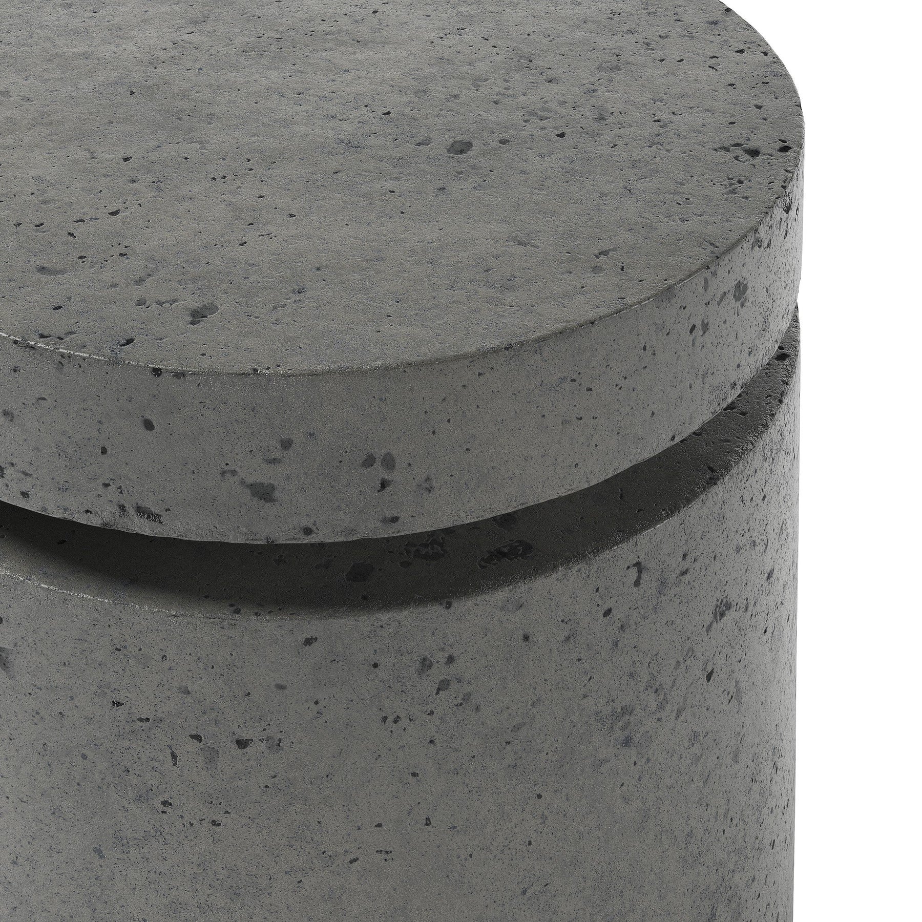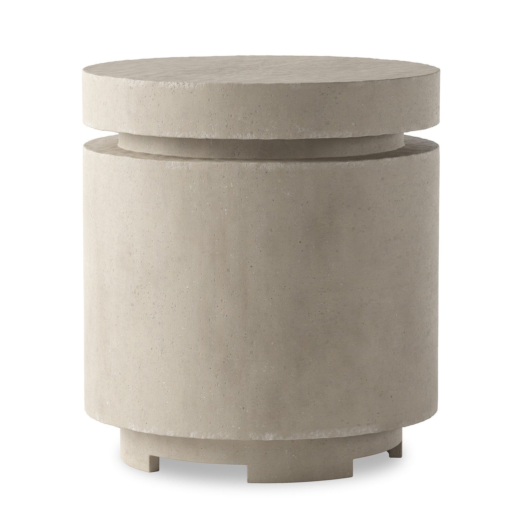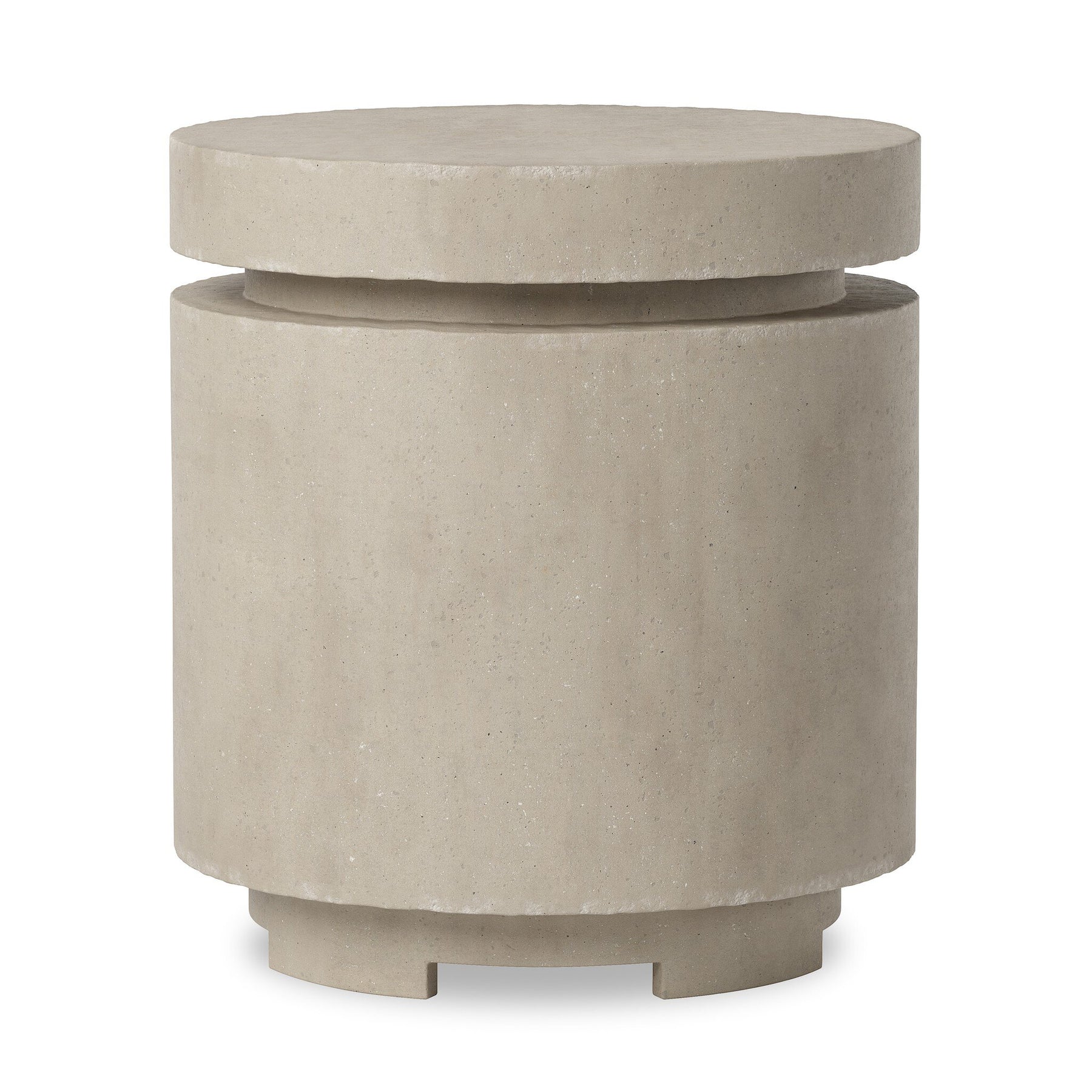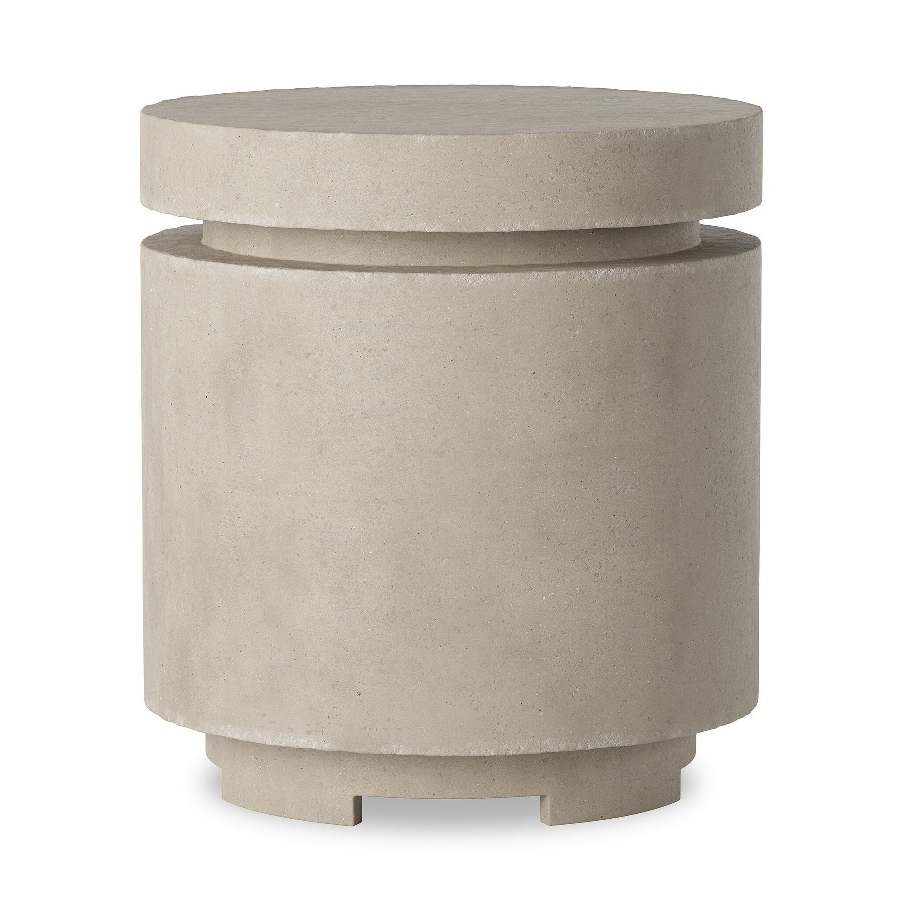 This outdoor propane tank enclosure pairs with fire tables for a clean, seamless look. Made from glass-reinforced concrete, each piece is naturally finished with subtle tones of grey and cream. It can act as an end table with its lid on, and has cutouts at the base for hose attachments. Cover or store indoors during inclement weather and when not in use.