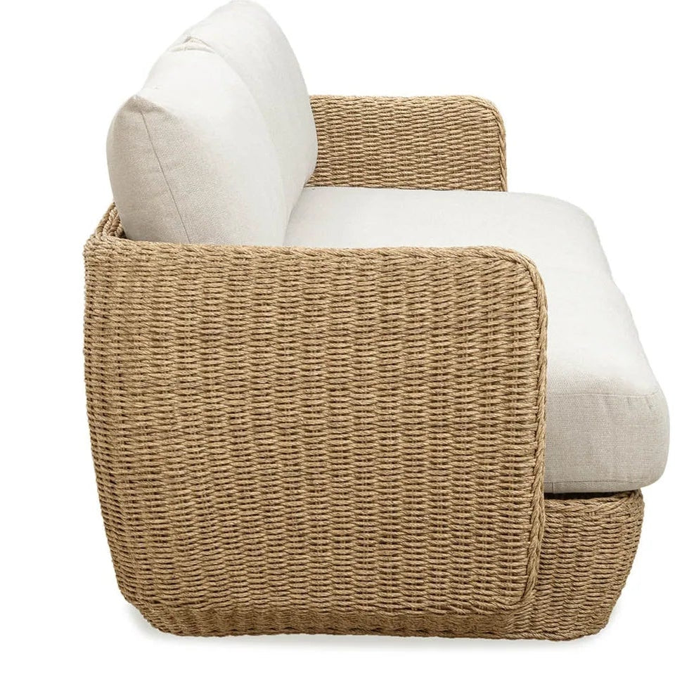 Experience the perfect blend of comfort, durability, and modern design with this outdoor sofa. Built to withstand the elements, this sofa offers a stylish retreat for your patio, garden, or poolside. Built with a powder-coated aluminum frame wrapped in all-weather wicker, it ensures stability and durability in various climates.