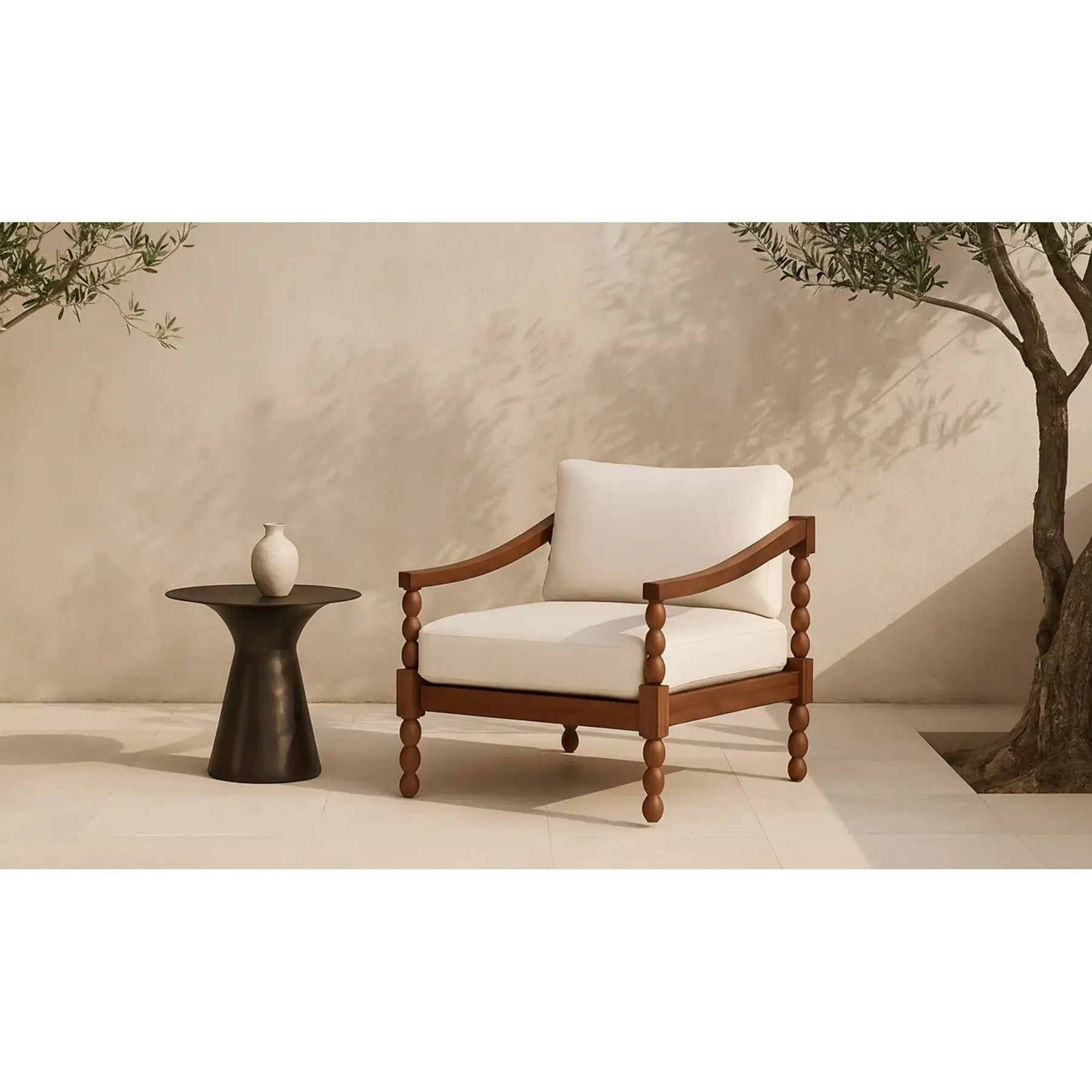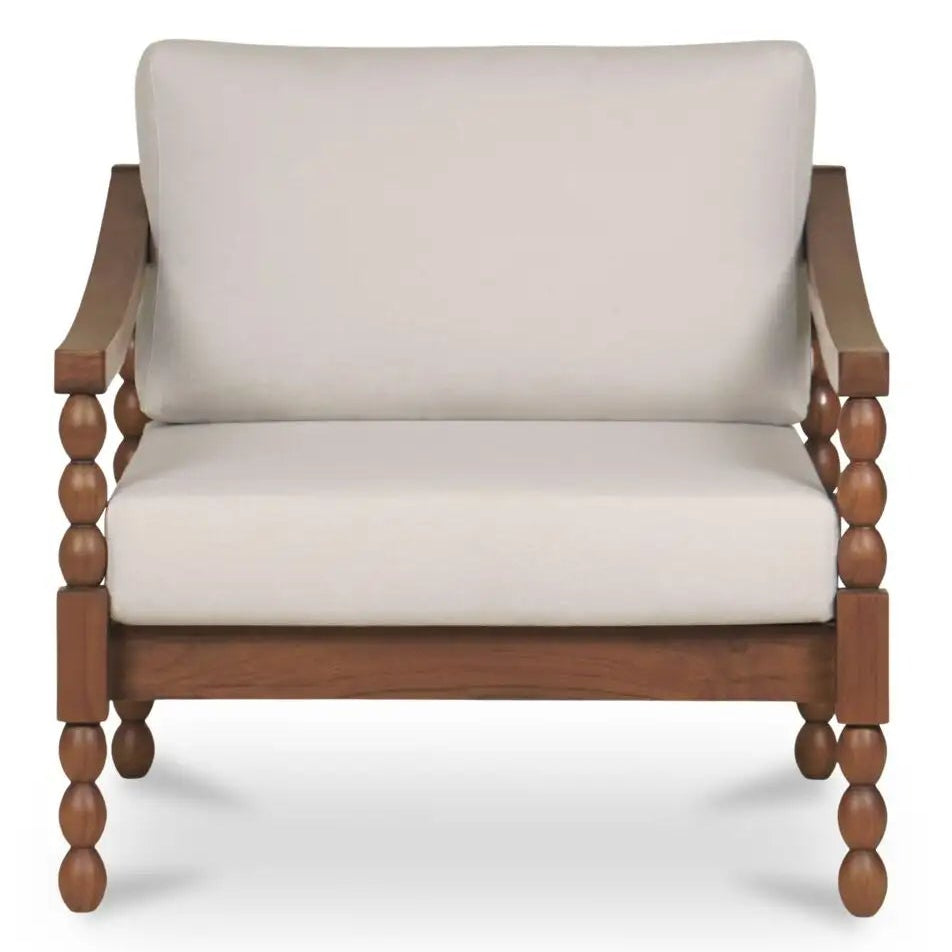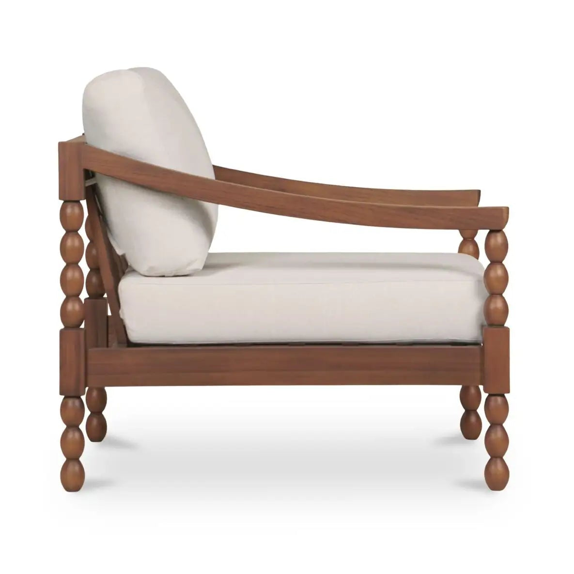 A solid teak frame channels a classic turned-leg shape, while outdoor-grade cushions keep it breathable, comfortable, and easy to sink into. Tailored, timeless, and built to live outside the lines.