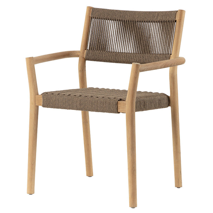 Reimagine al fresco dining with the stylish and functional Kavali Stackable Dining Armchair. A simple natural teak wood frame draws attention to the breezy handwoven rope design on the seat and backrest, encouraging an elegant arrangement around a table when paired in multiples.