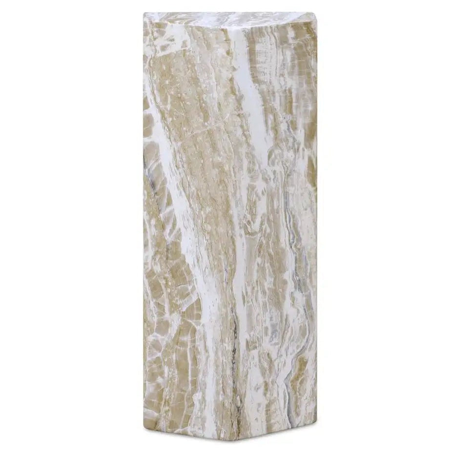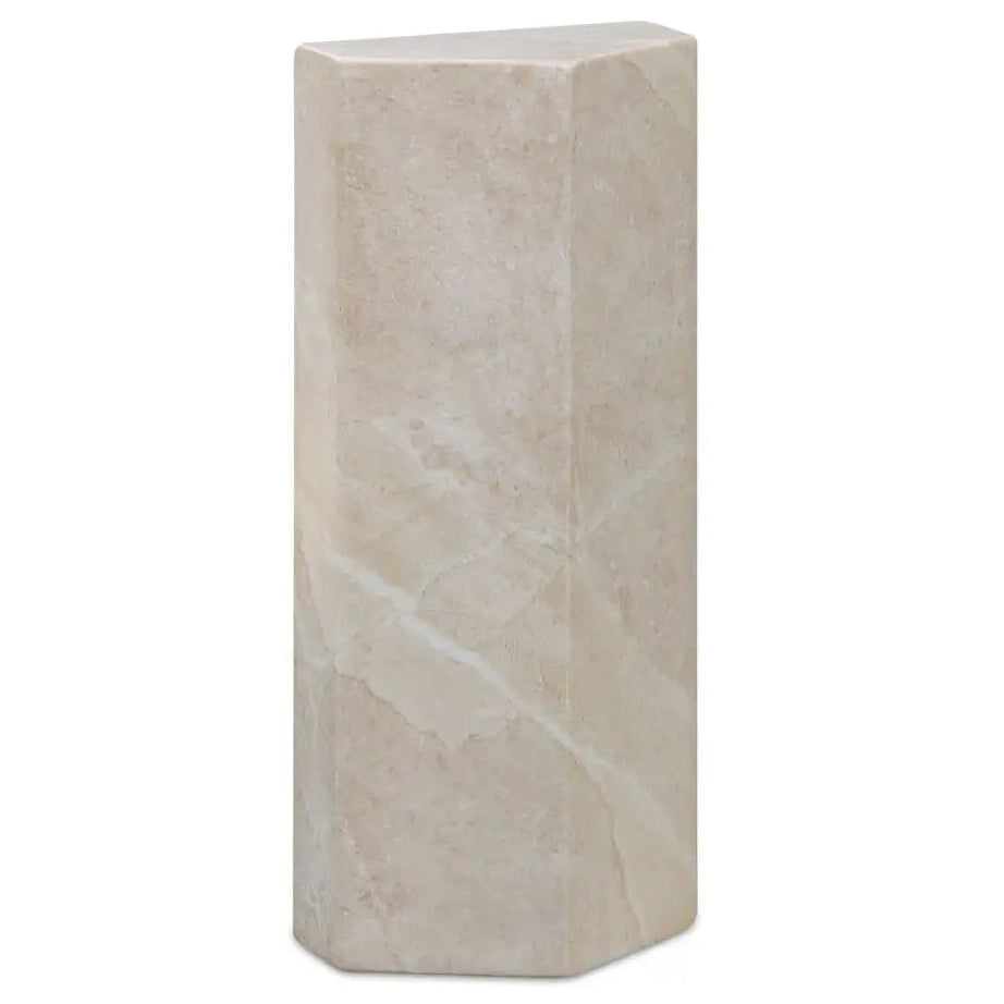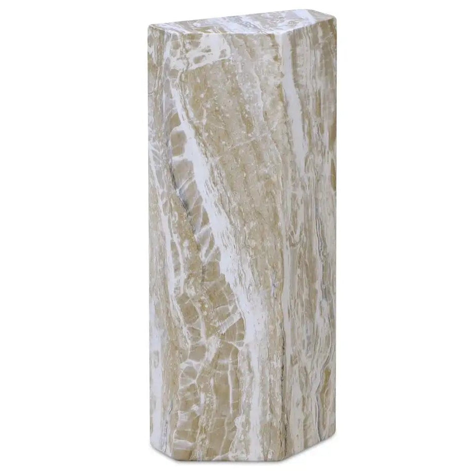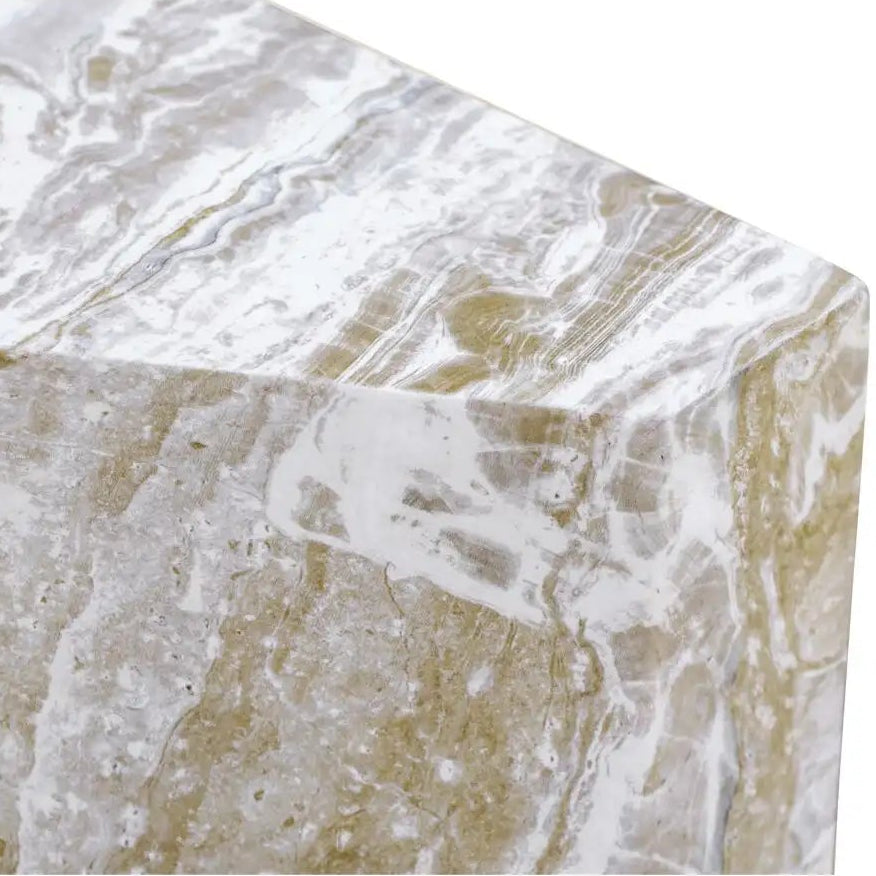 Because even your side table deserves main character energy. This five-sided accent piece brings serious presence, with sculptural form and bold texture. Cast in concrete and finished using a water-transfer technique, it mimics expressive marble veining with natural variation across every surface. Durable enough for the patio, striking enough for the living room.