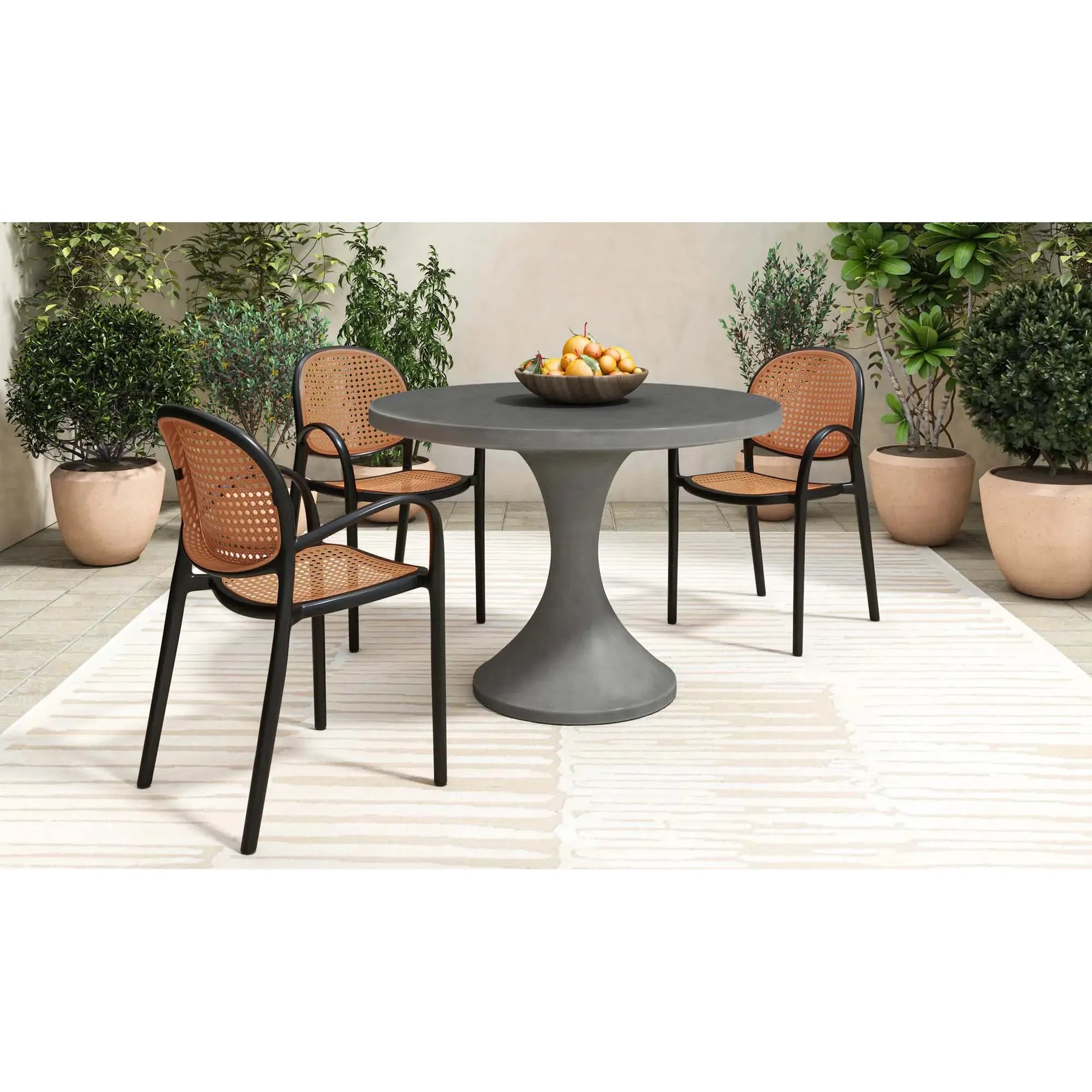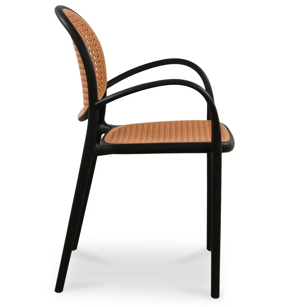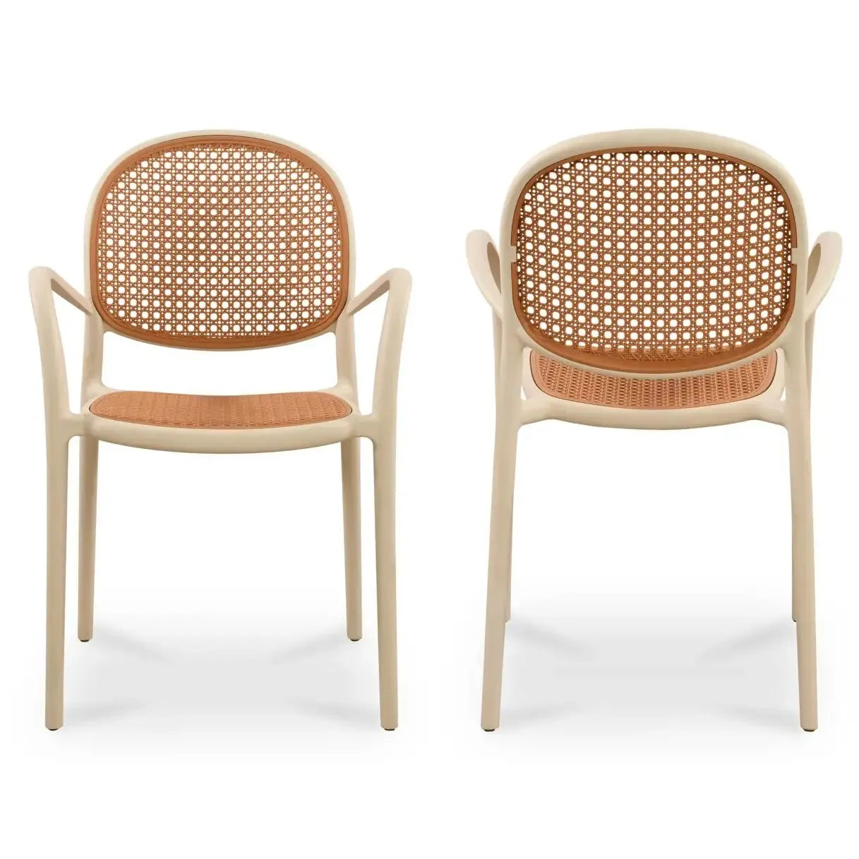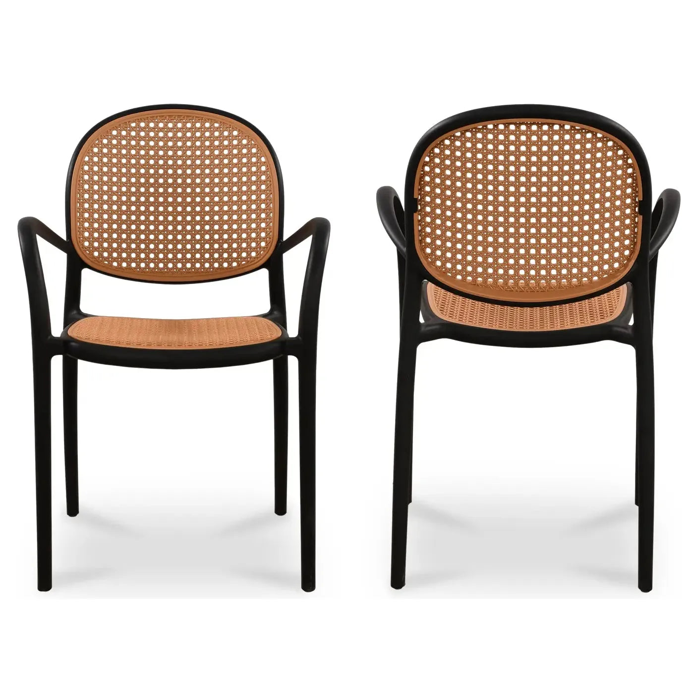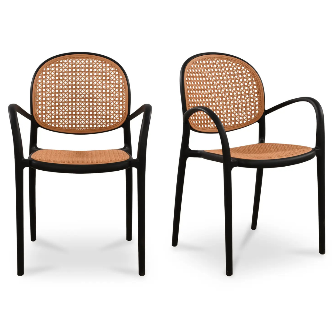 The Soren dining chair marries form and function in understated elegance. Crafted from durable polypropylene, its intricately woven seat and back create a visual tapestry. Stackable and weather-resistant, these chairs effortlessly adapt to alfresco living with refined simplicity. Set of two.