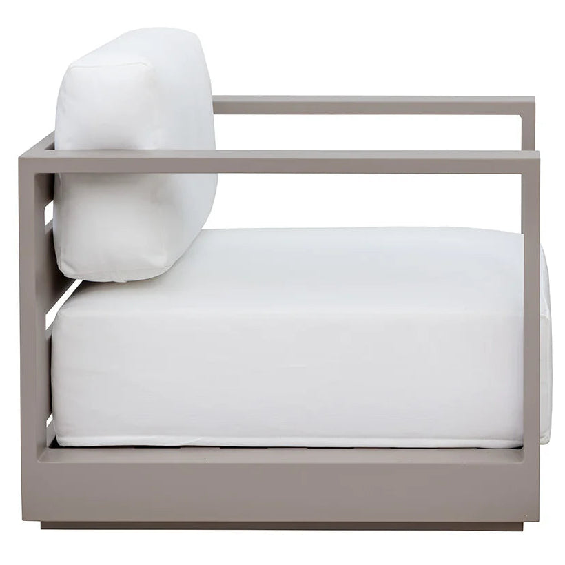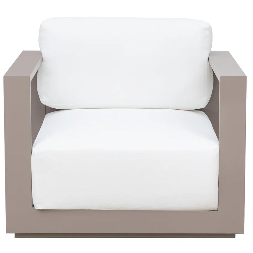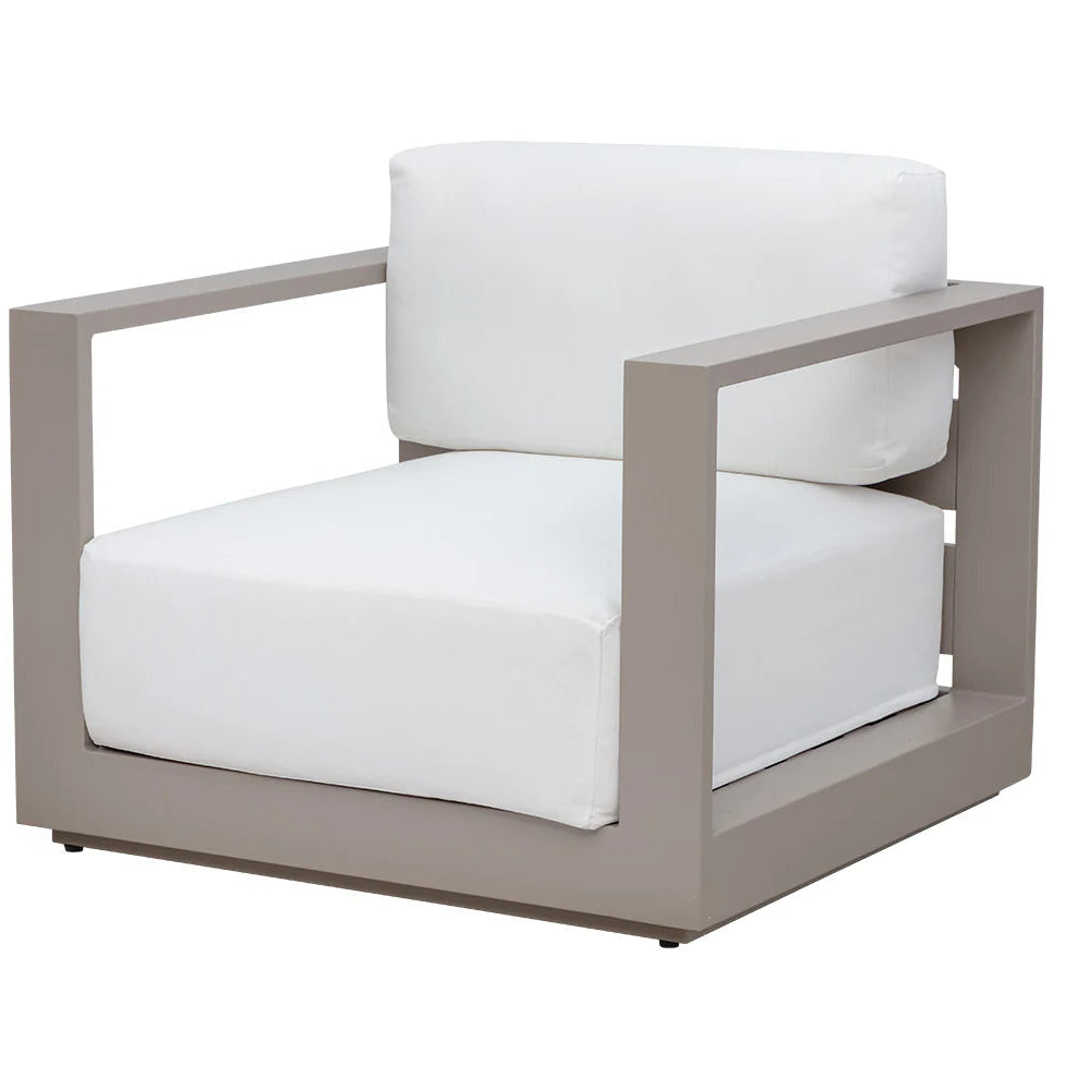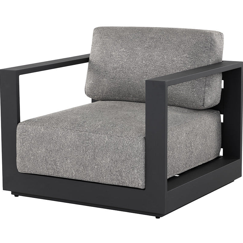 Cherish the outdoors with this modern armchair stocked in Stinson White or Lanikai Salt and Pepper fabric and completed with a powder-coated charcoal aluminum frame.