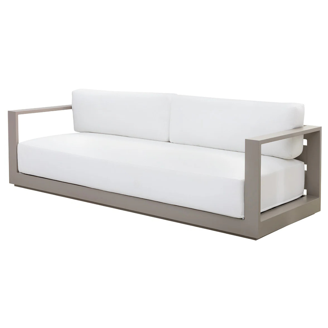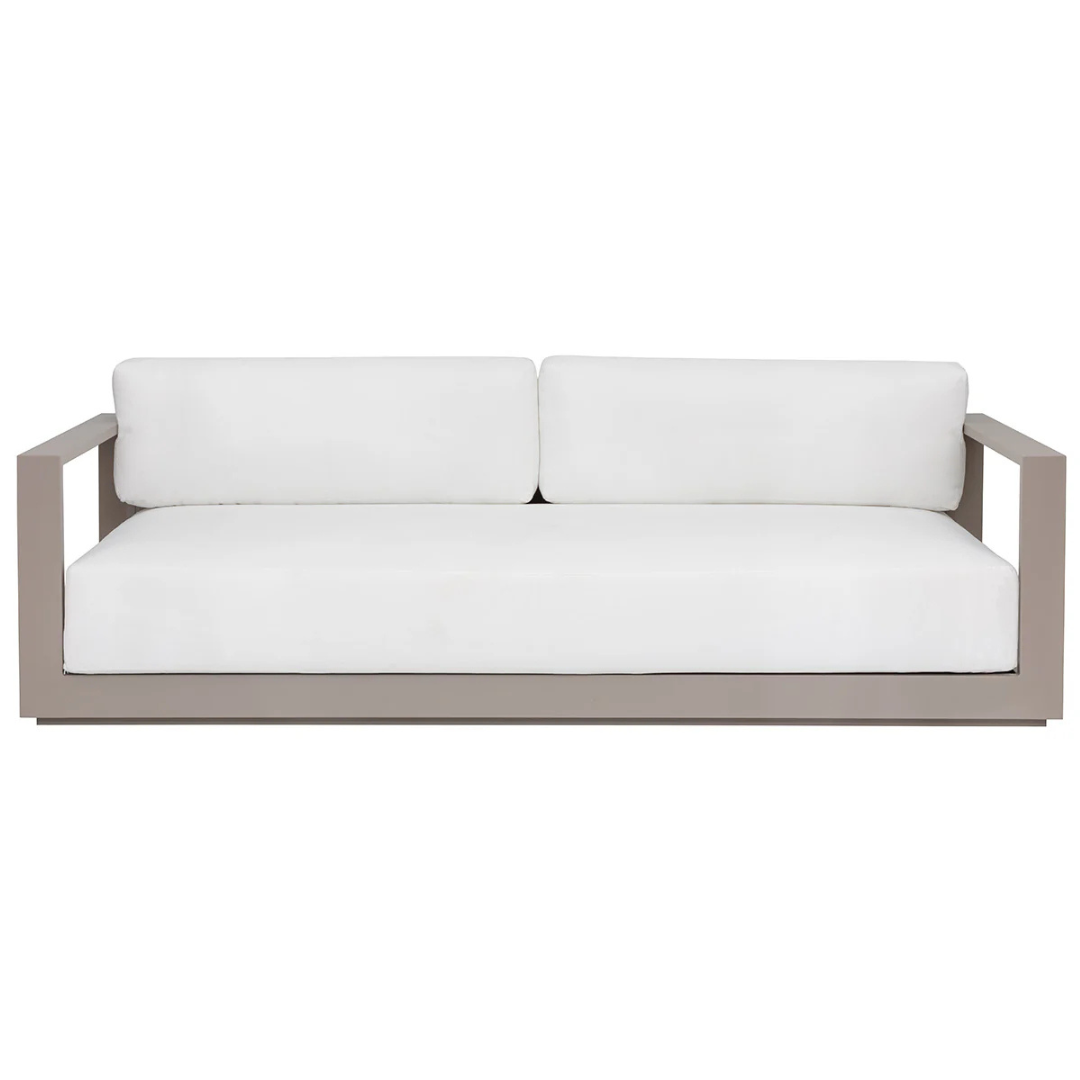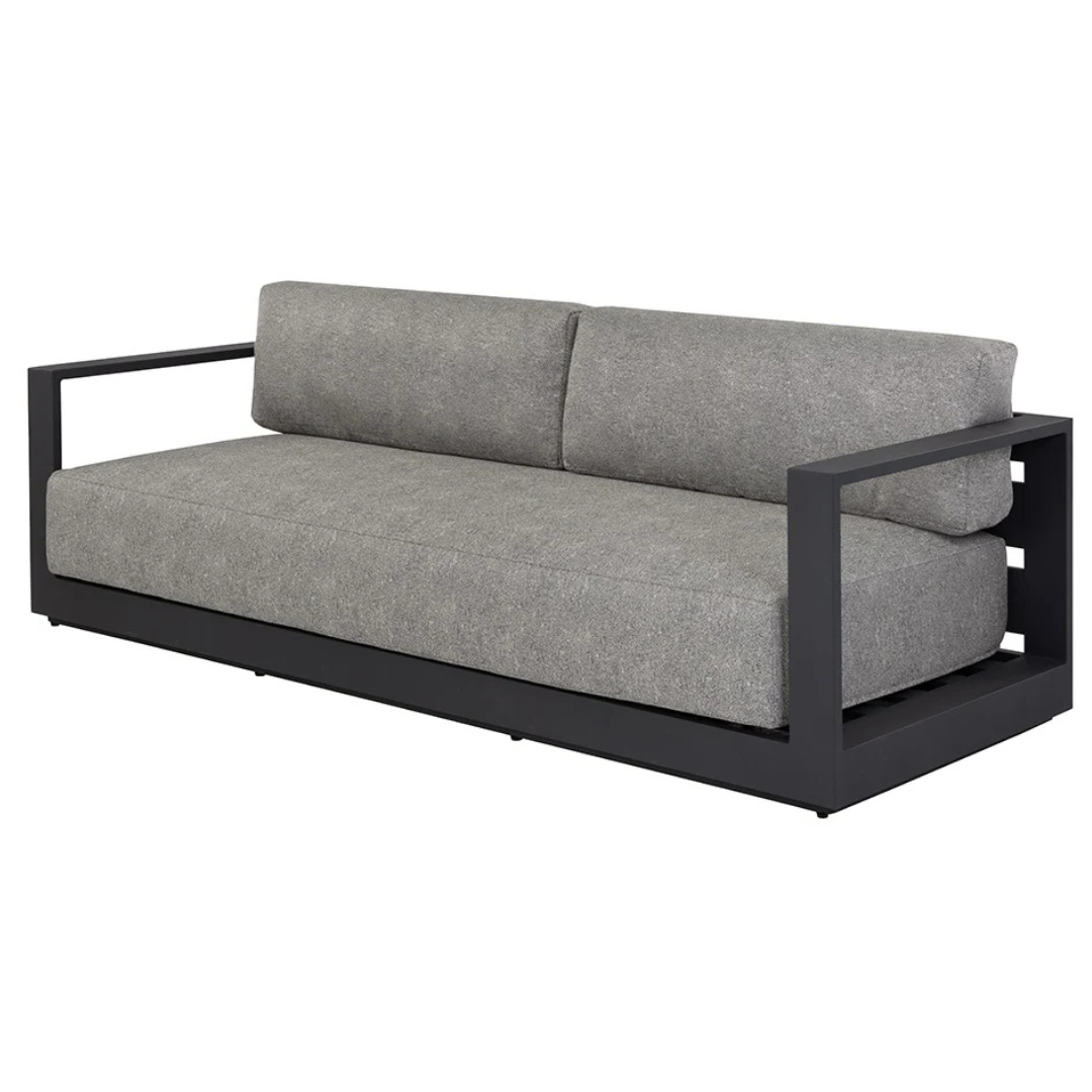 Cherish the outdoors with the Talia Sofa that offers a comfortable and laid-back style. Stocked in Stinson White or Lanikai Salt and Pepper fabric and completed with a powder-coated charcoal aluminum frame.