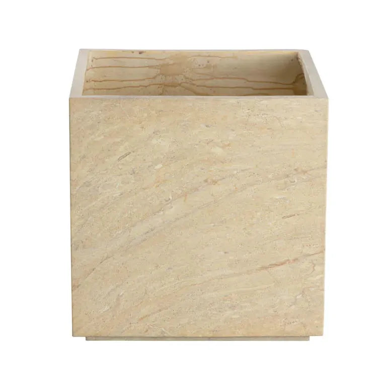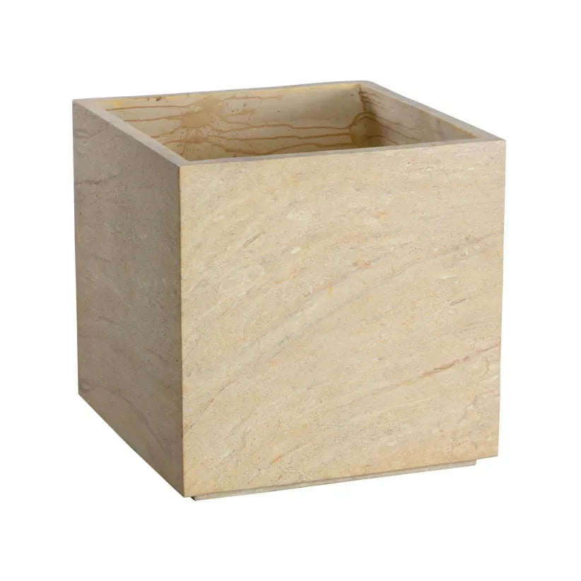 The contemporary form of the square Tivoli Planter allows for a lush display of botanicals that will complement any decor. Constructed from glass fibre-reinforced concrete for increased durability with a protective sealant finish that allows it to withstand the elements. Designed to resemble the look of natural travertine, this beautiful planter will be a welcome addition to large spaces such as hotel lobbies or building entrances. Includes holes for drainage, one step, and a removable shelf insert. Suitable for indoor and outdoor covered spaces.