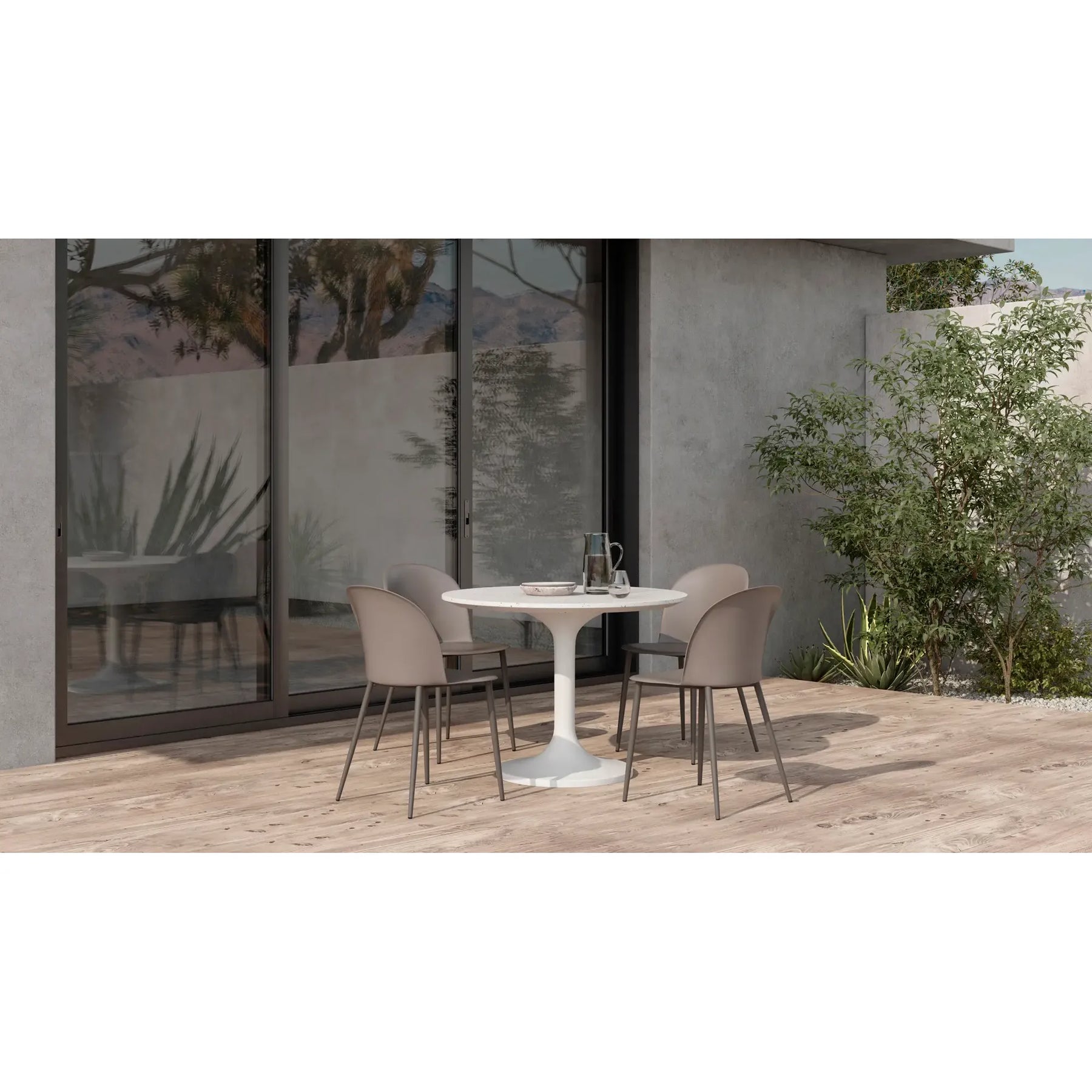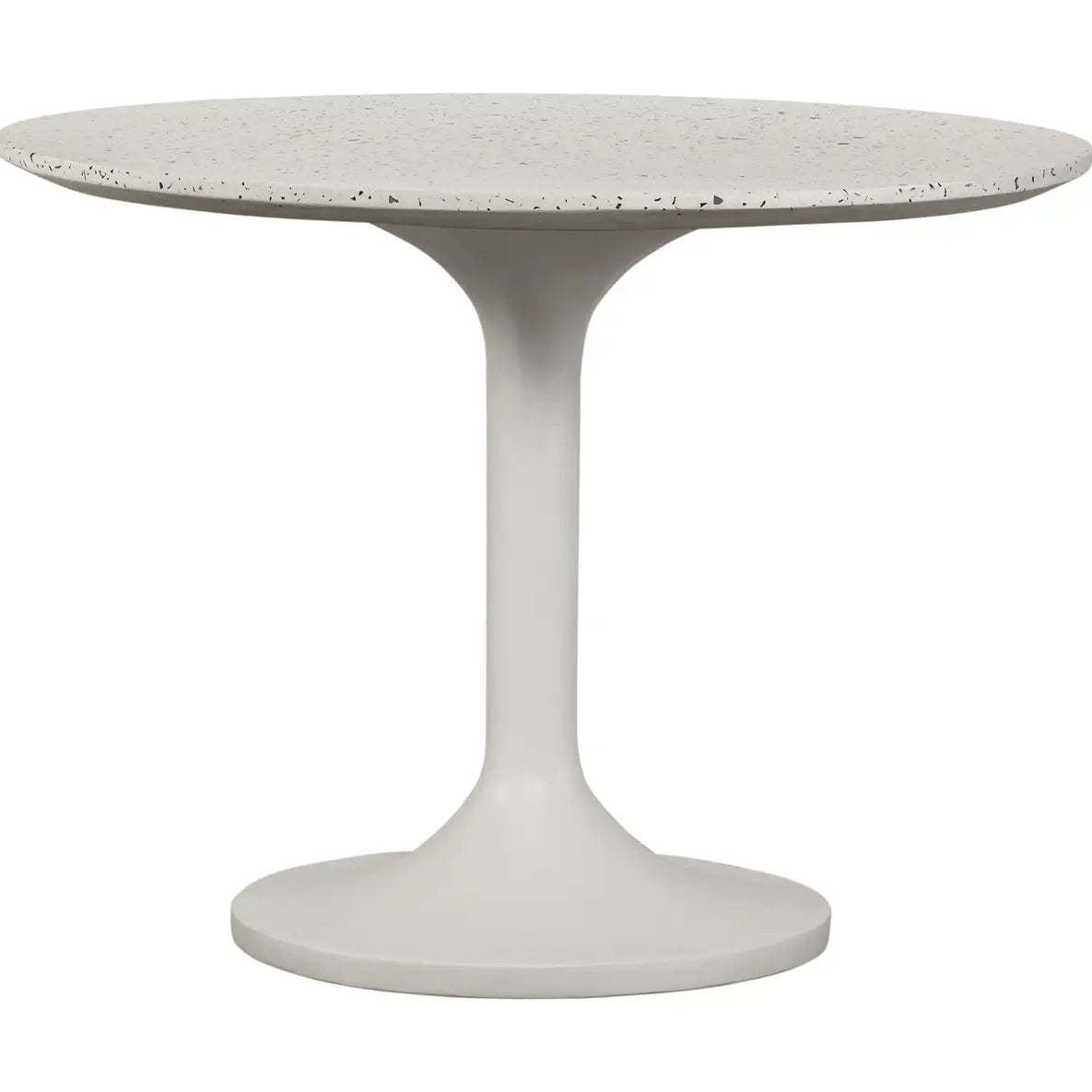 An ideal café table to sit at and catch those morning rays. Perfect for an open-plan garden, patio setting, or balcony with spacious seating for 4, this outdoor table’s rounded, pedestal shape contrasts flawlessly within an organic environment. Smooth and minimal, it features a unique concrete terrazzo composite that displays a natural mineral-effect with its speckled, contemporary aesthetic.