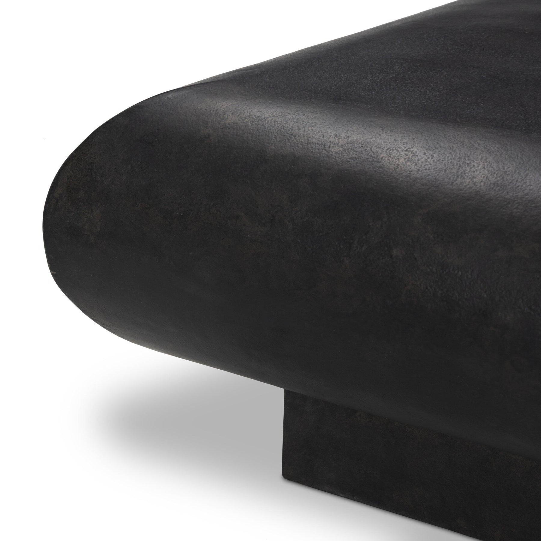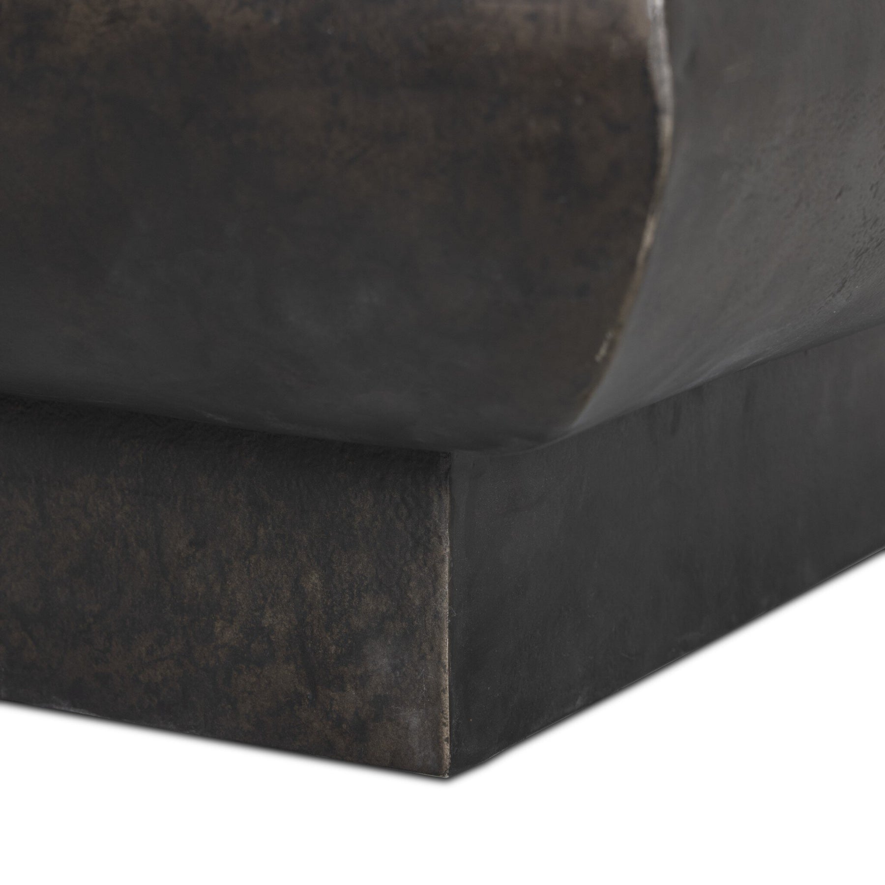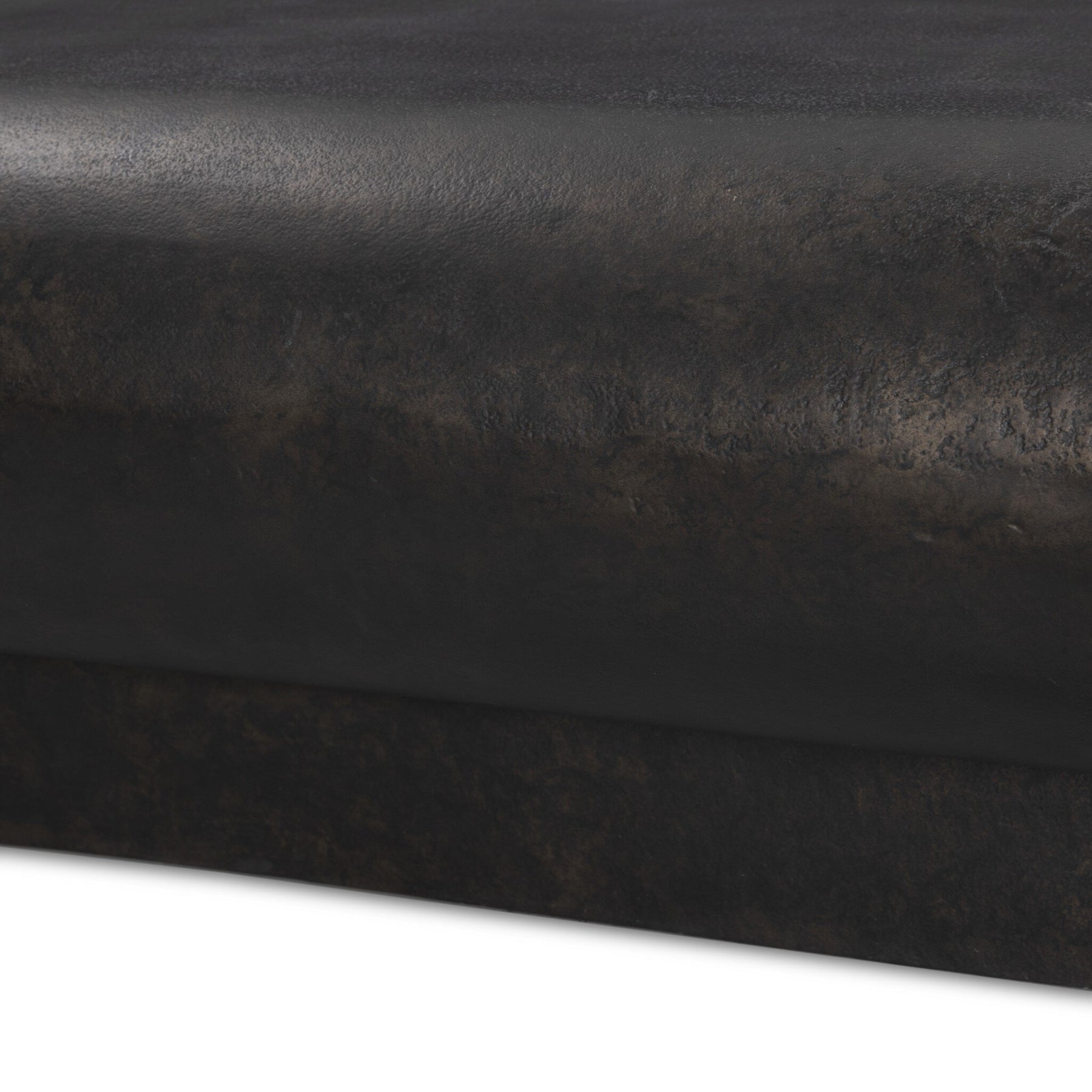 Finished in a distressed bronze with beautiful highs and lows, cast aluminum shapes a softened top on a plinth base — the perfect centerpiece for outdoor gatherings. Cover or store indoors during inclement weather and when not in use.