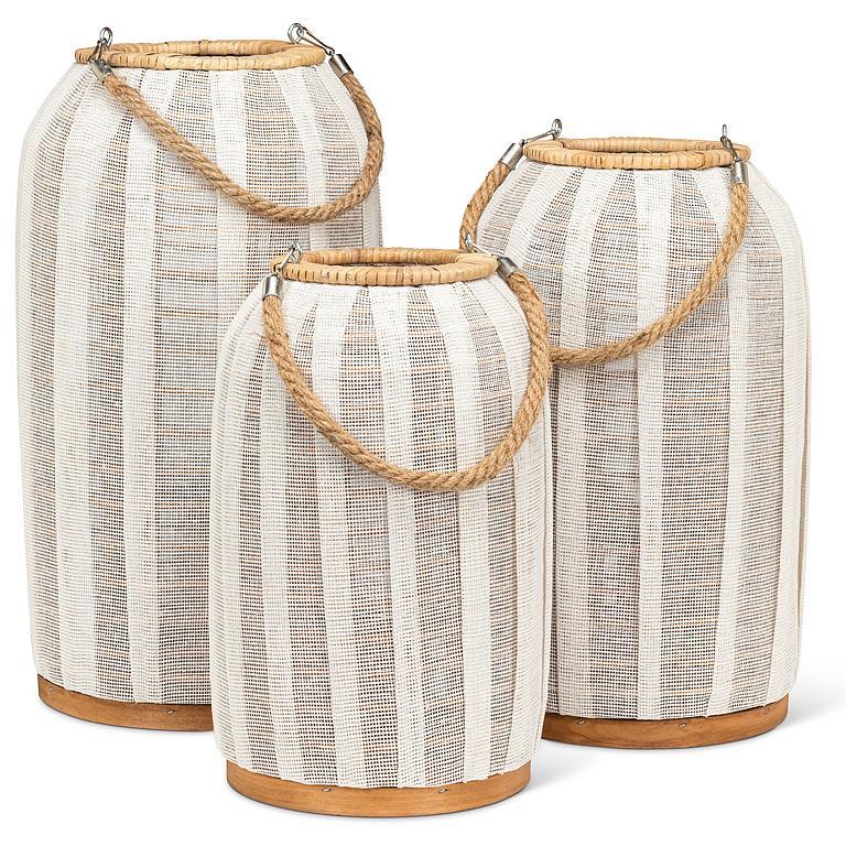 Tall and refined, this ivory lantern features a linen-style finish and jute handle for subtle contrast. An easy way to enhance indoor or outdoor lighting. Due to the natural materials, this lantern is more suited for indoor use. If using outdoor, use in fair weather and store indoors. Available in 3 sizes.