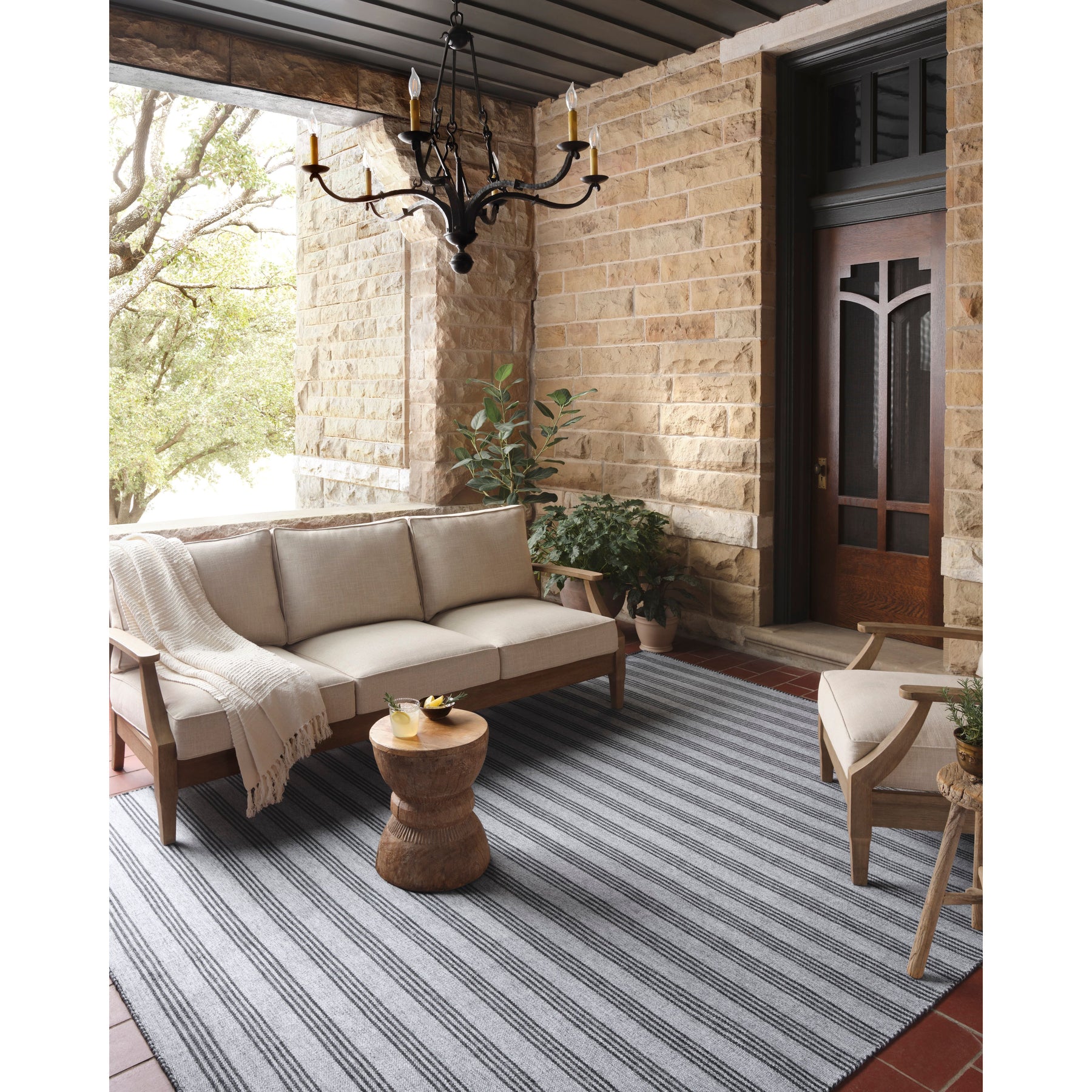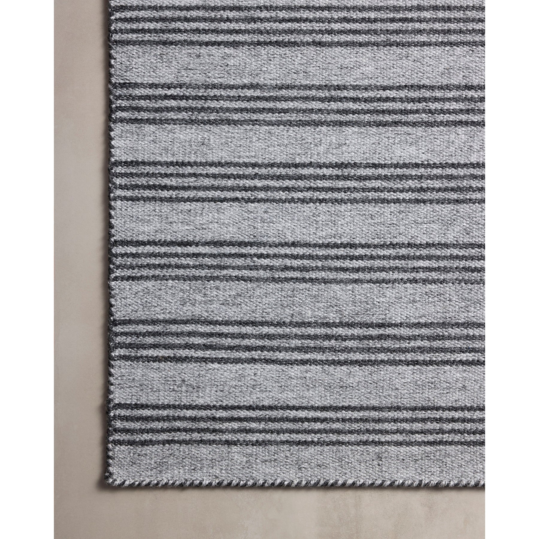 The Charlie Collection by Joanna Gaines x Loloi is an indoor/outdoor area rug with a timeless design inspired by ticking stripes. This easy-to-clean and durably made rug can hold up to high-traffic mudrooms and entryways, or anchor a backyard deck or patio. Charlie is hand-loomed of 100% recycled post-consumer polyester that saves post-consumer plastic bottles from ending up in landfills. This collection is made in India and GoodWeave-certified, ensuring our commitment to ethical production and the support of weavers' communities. To clean, hose off and air dry.