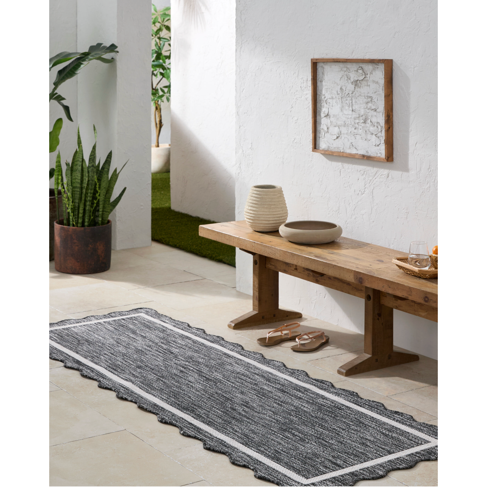 Miami Beach Scalloped Outdoor Rug 2319 | Black