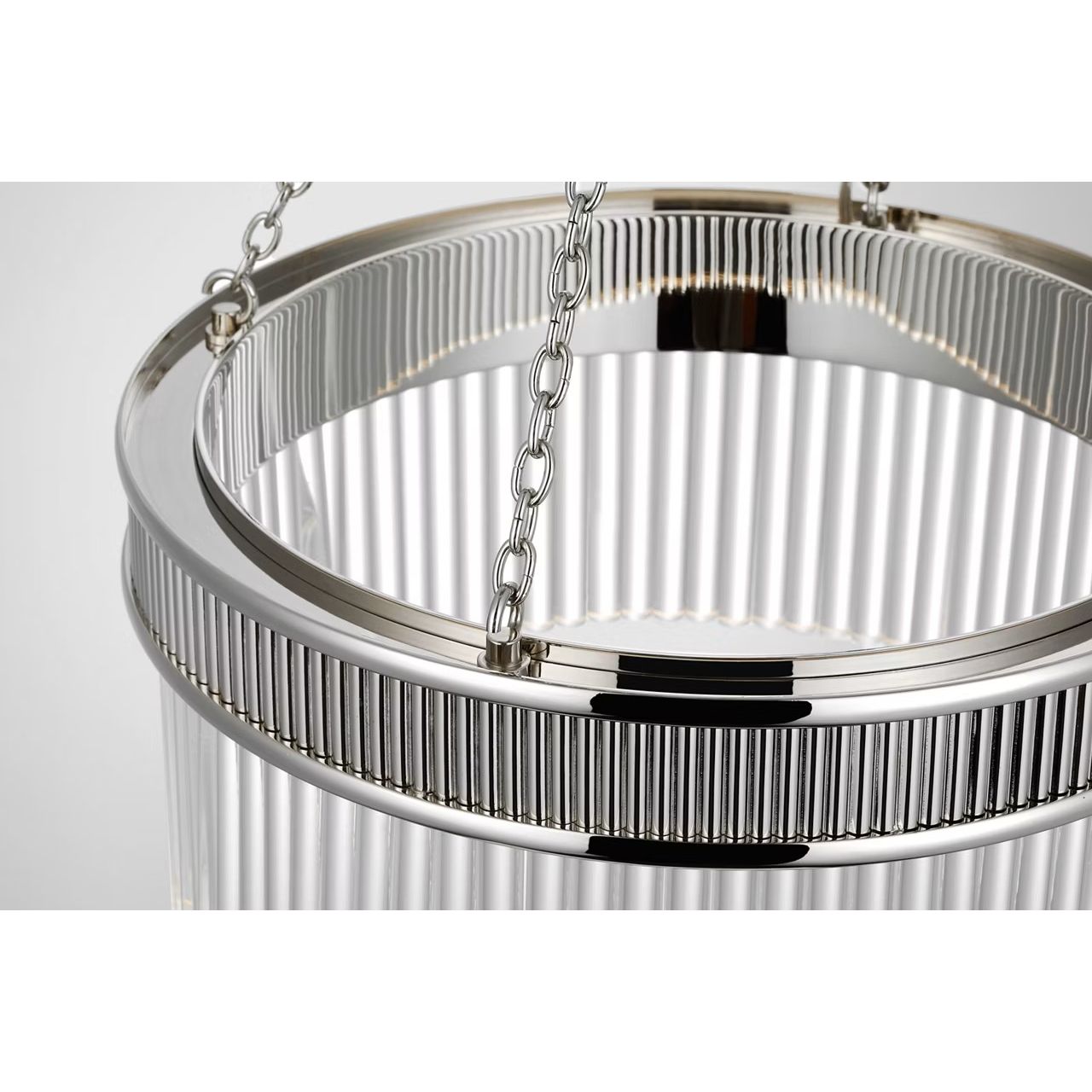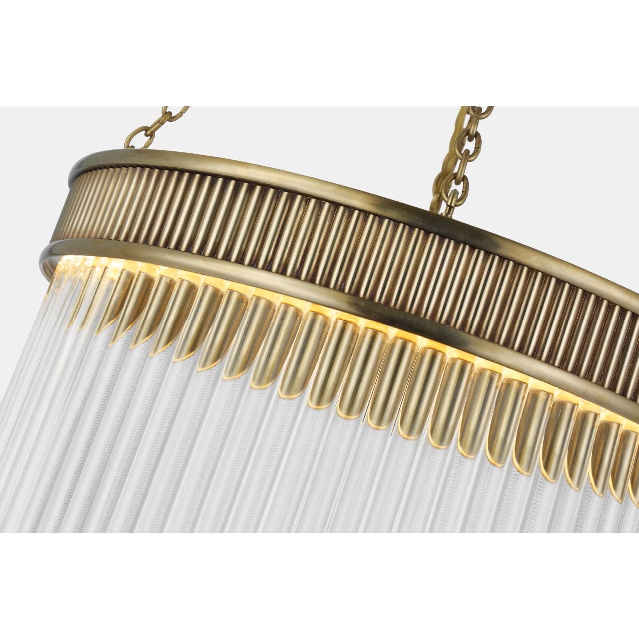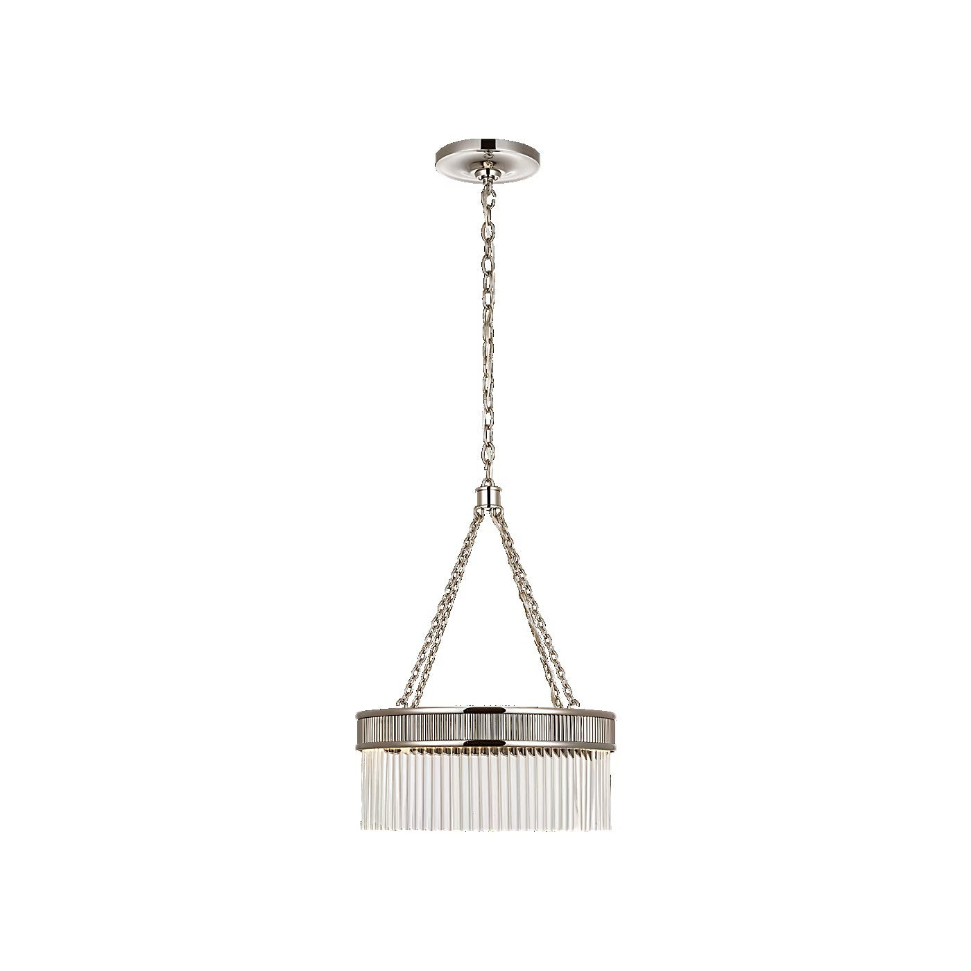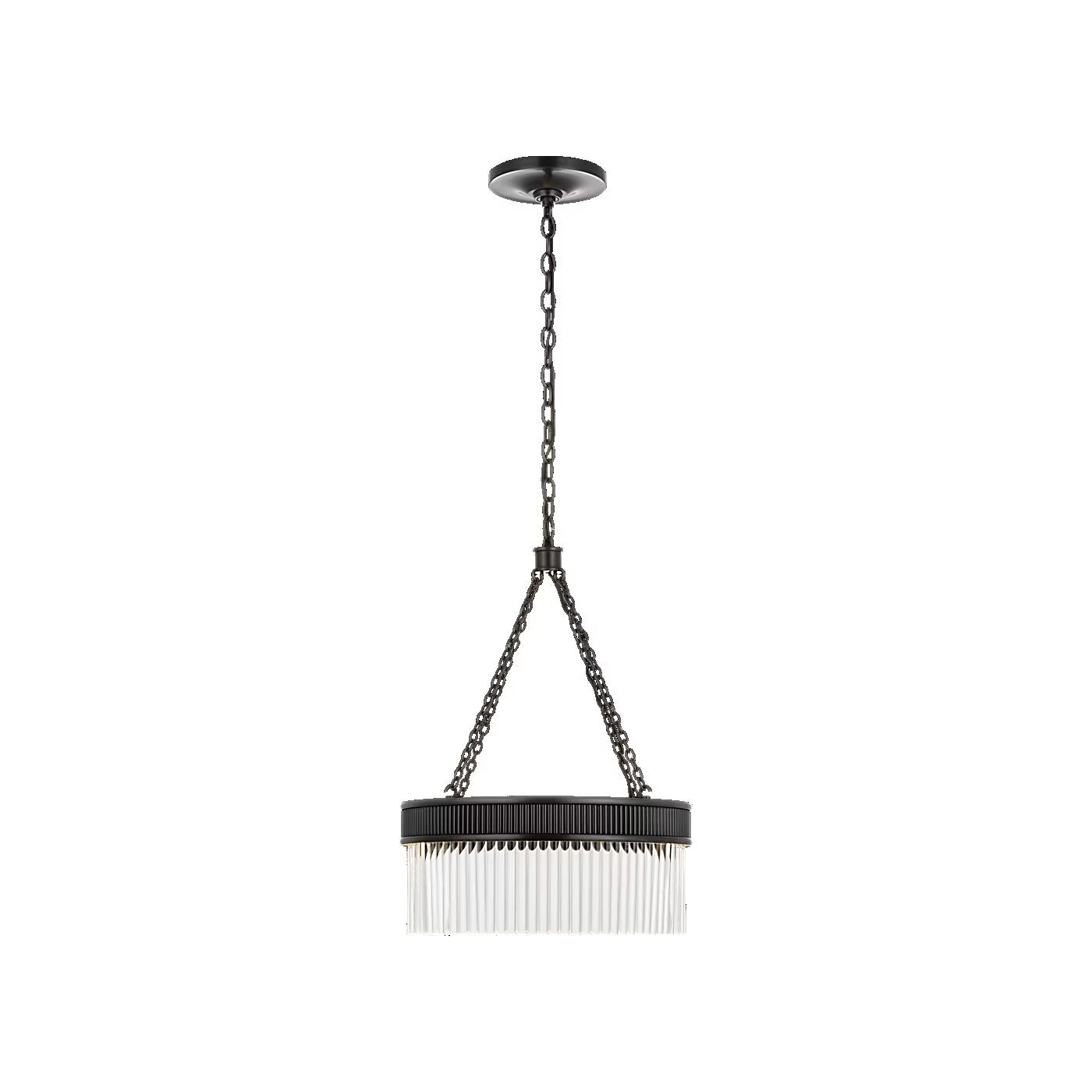 The Menil by Marie Flanigan showcases a ring design with glass rods. Two different widths and heights of chandelier are available and feature elegant metalwork in either bronze, brass or polished nickel. Suspended by delicate chain links, the Menil can make a statement alone in a kitchen or foyer or in multiples throughout a hallway.