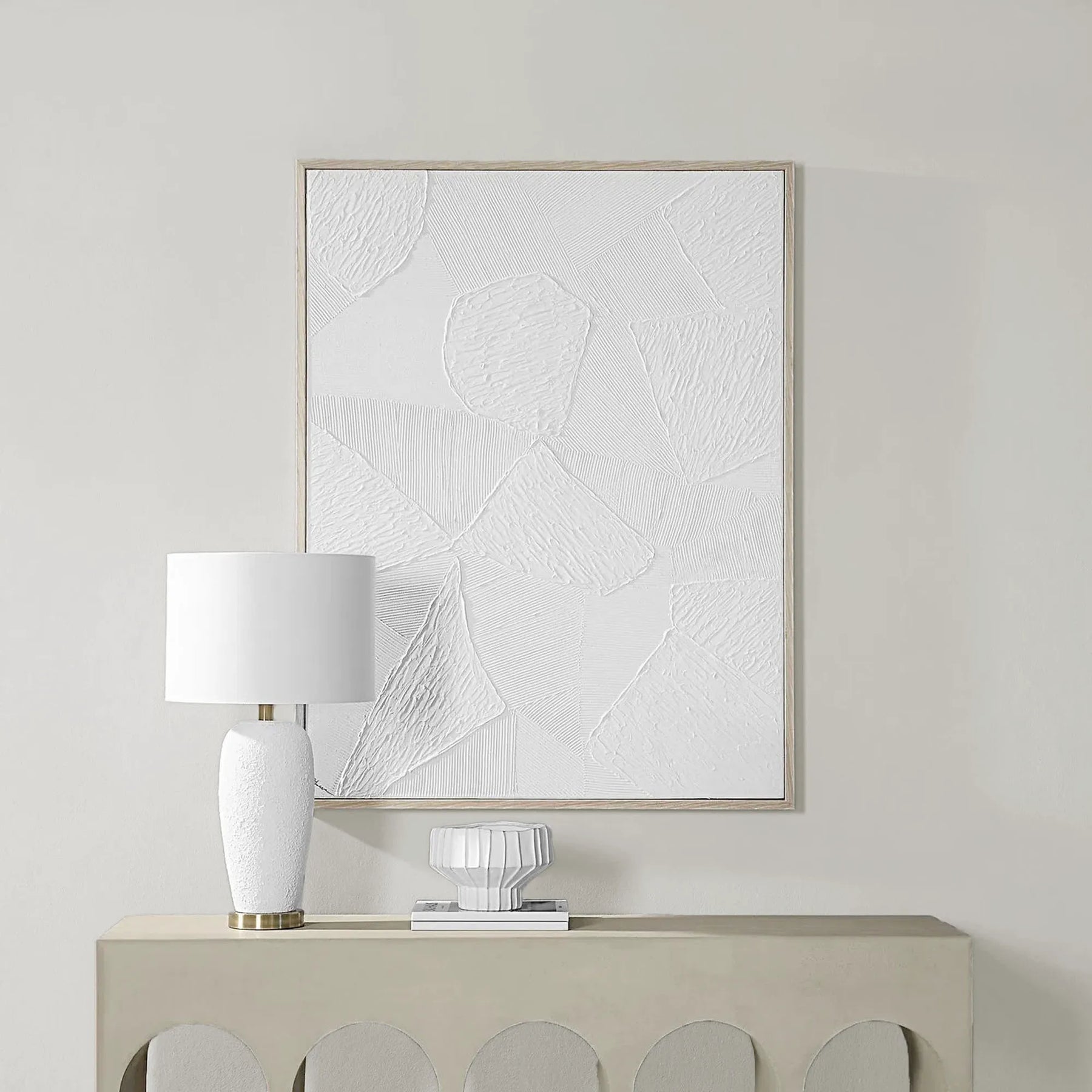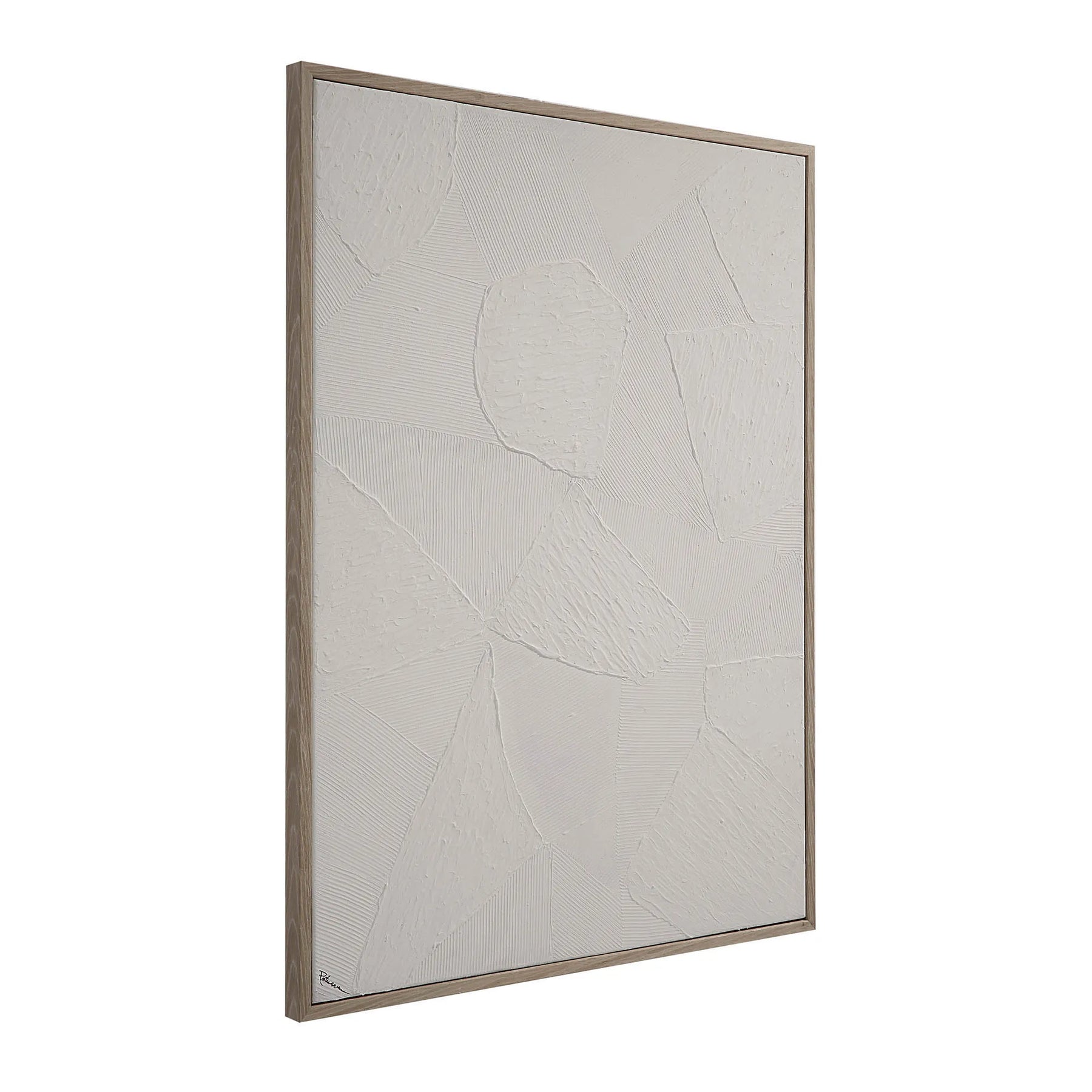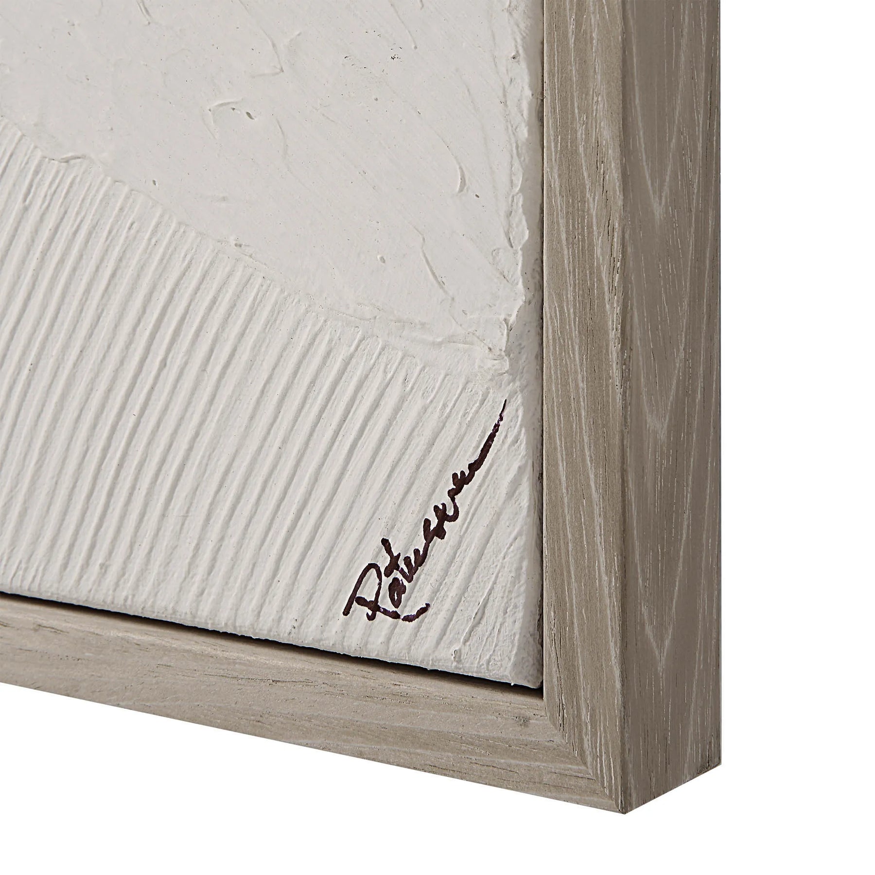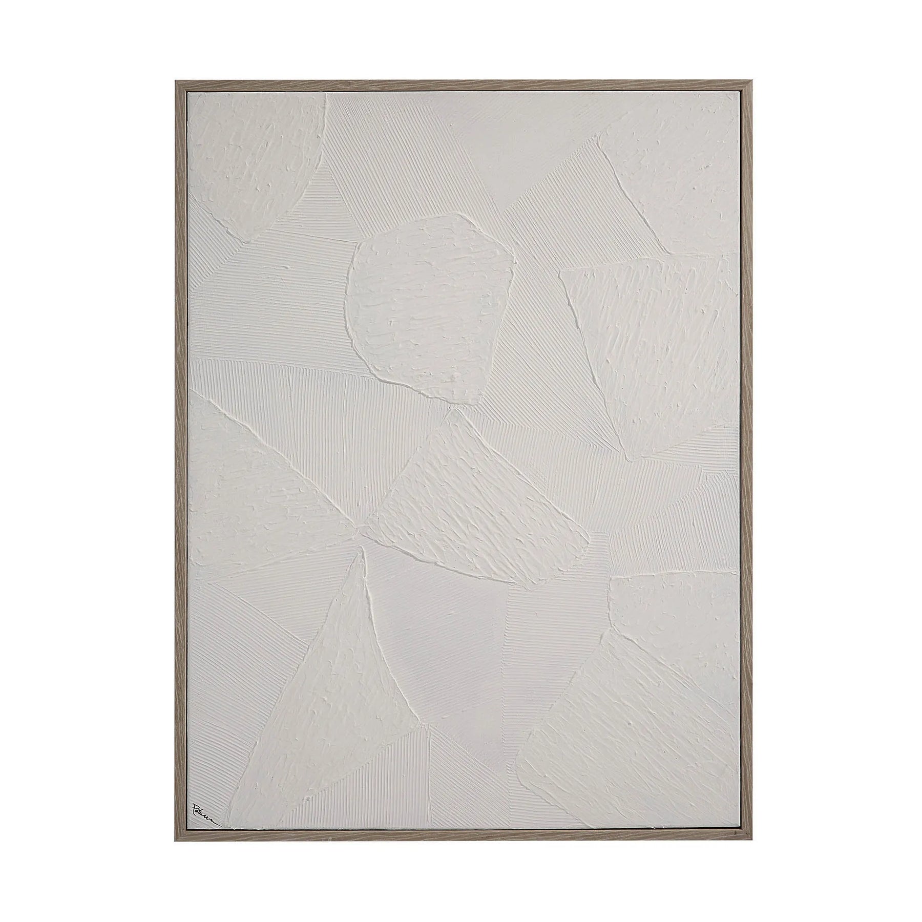 Subtle details and a minimal palette lend an air of sophistication to the home interior. When set against a vibrant or wall-papered wall, this art painting and its white frame require no extra embellishment to pop. Alternatively, when this canvas painting hangs against a white backdrop, it blends and allows the textured strokes to take focus.