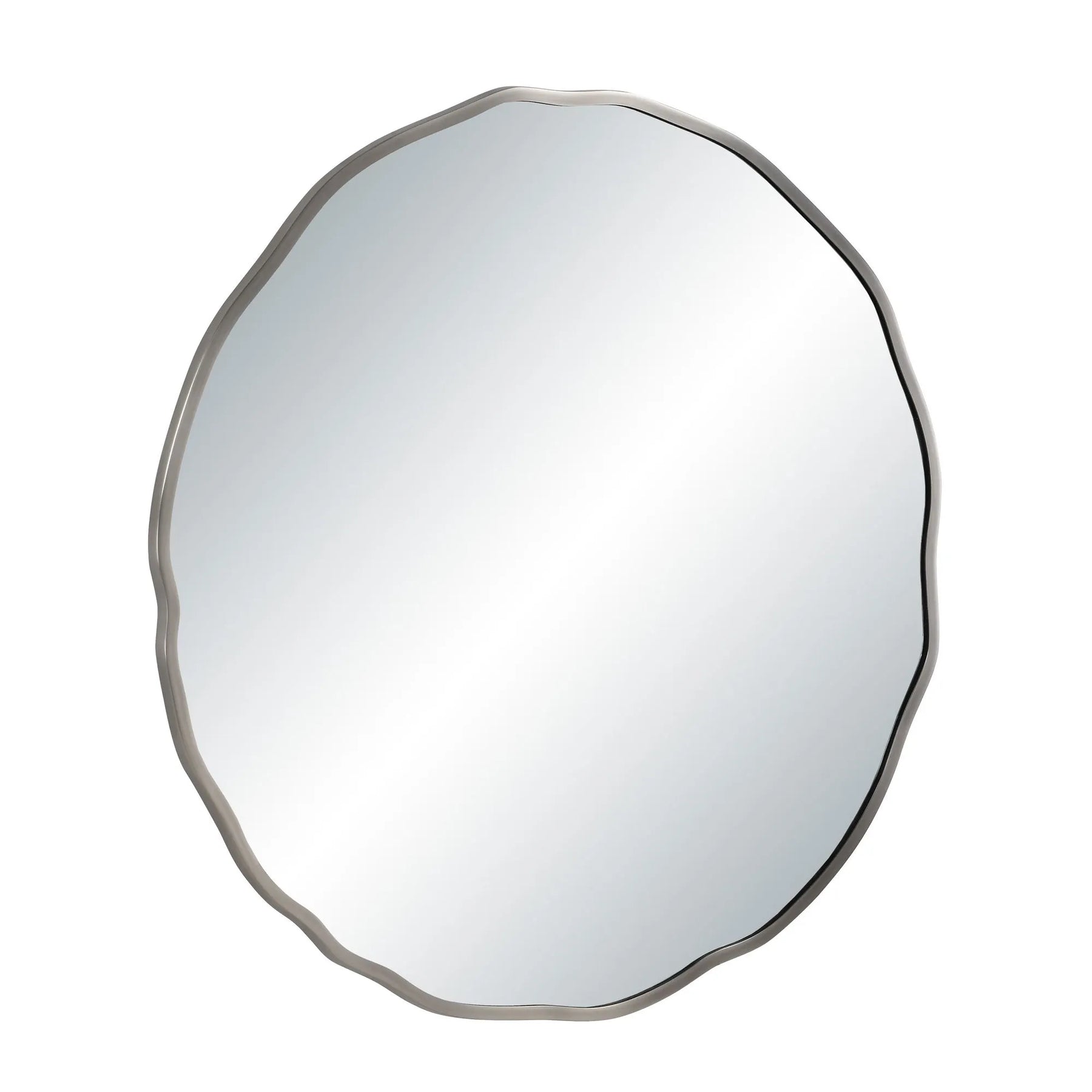 Add a whimsical touch to any room with this round mirror in brushed nickel. Sized right for creating a stunning focal point on its own or incorporated into a gallery wall, it delivers a vintage, yet modern aesthetic. A high-quality cast iron frame ensures durability while distortion-free glass provides a true reflection for years to come.