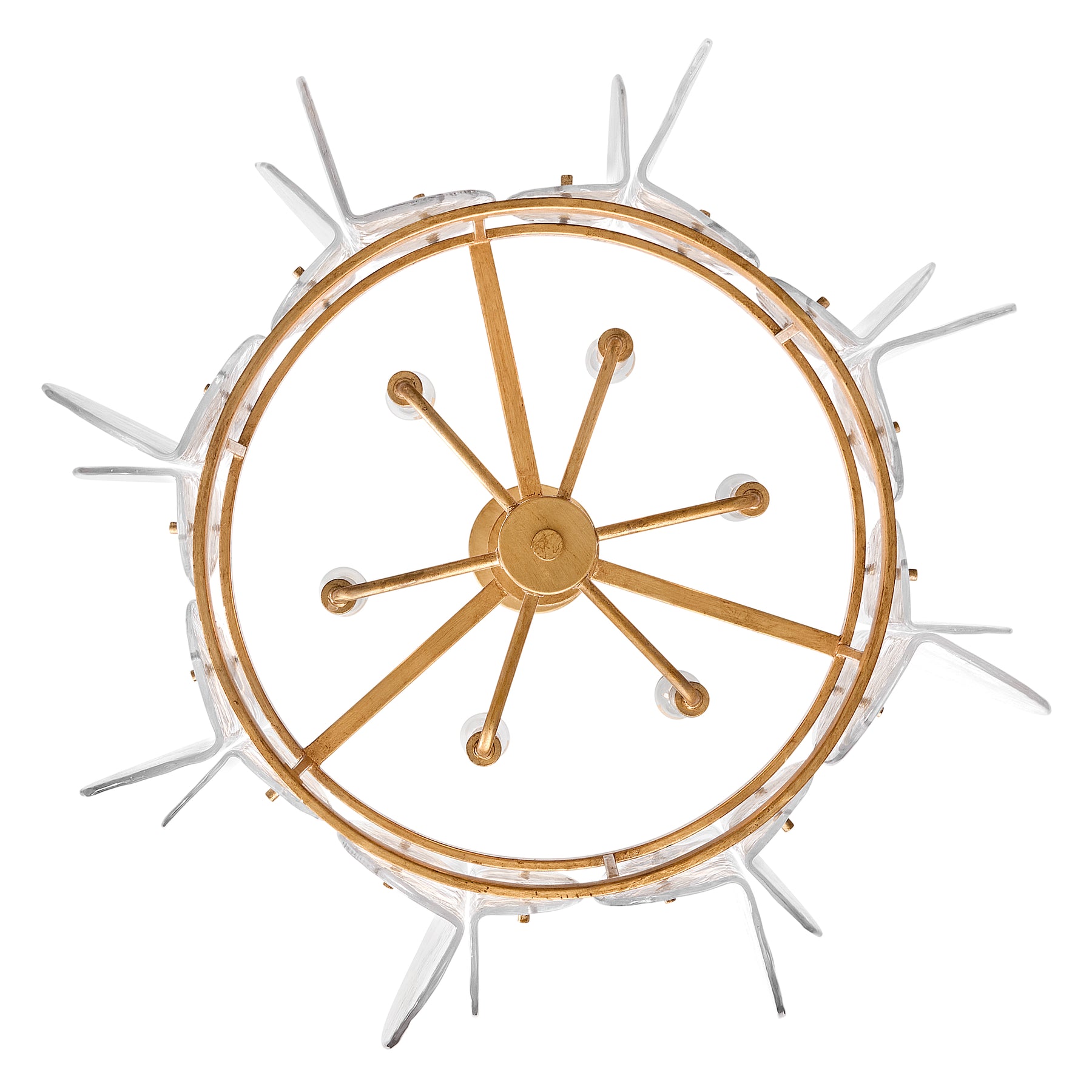 Opulent folded panes of textural water glass surround Seraphina’s glamorous, Distressed Brass frame, creating varied refractions and softly diffusing warm illumination throughout your space. A versatile yet stately silhouette makes a chic transitional statement in both modern and traditional settings.