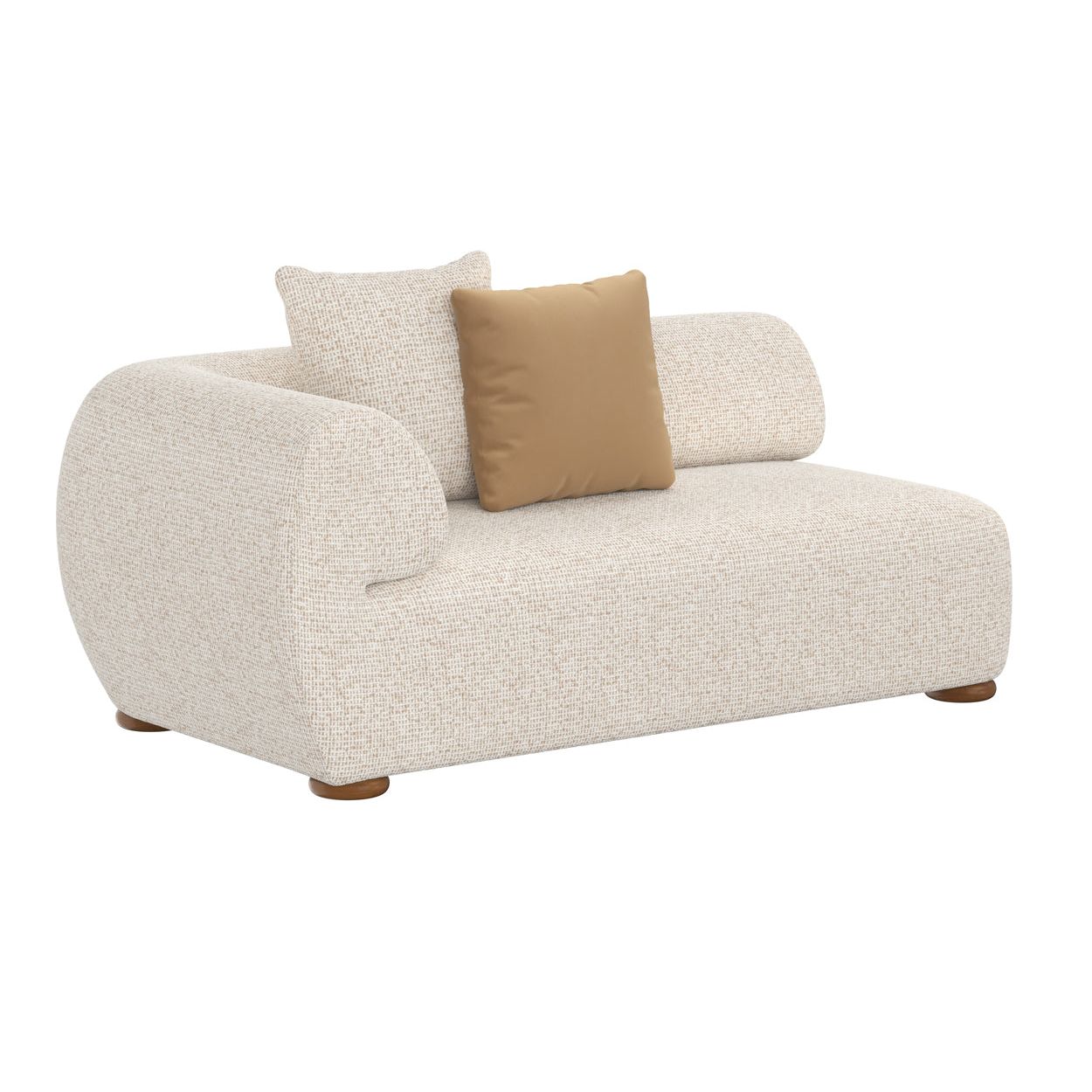 Generous in scale and soft in profile, the Henriette Modular Sofa is upholstered in textured performance fabric that lends a tactile richness designed for everyday use. Rounded arms and smooth curves flow seamlessly into its low-slung form for a relaxed yet refined feel. Resting on discreet wooden feet, its modular design allows for flexible arrangements to suit different spaces.