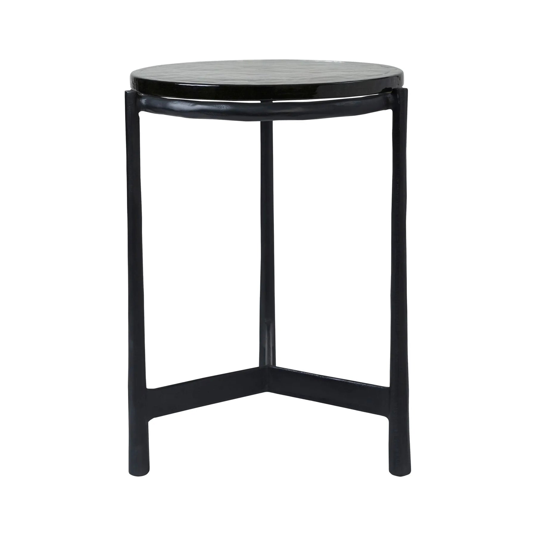 Modern artistry meets sustainable design in the Arila Accent Table. With a black-plated cast aluminum base and a tinted recycled glass top, this piece delivers sleek sophistication with an eco-conscious twist. The three-legged silhouette adds balance and stability, while the airy design makes it a versatile companion for any seating arrangement. Whether styled in a living room, bedroom, or lounge, Arila brings a subtle touch of modern luxury to your décor. A contemporary glass and metal side table that pairs sustainability with sculptural design.