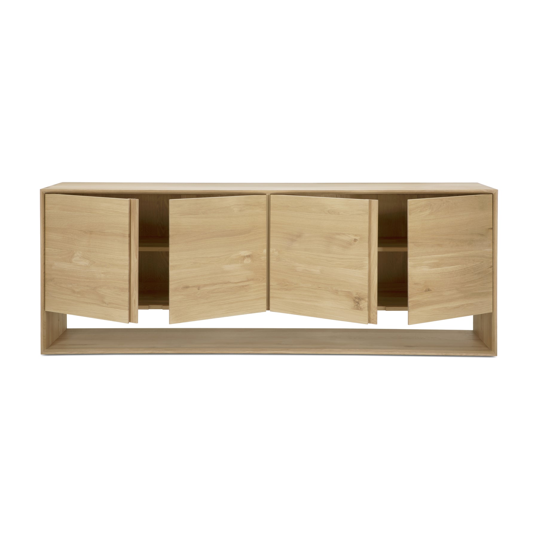 The Nordic collection, by Ethnicraft, combines refined design with the purity of solid wood. The bevelled edges gives this solid oak furniture an extra edge, we would say. This oak Nordic sideboard features 4 doors.