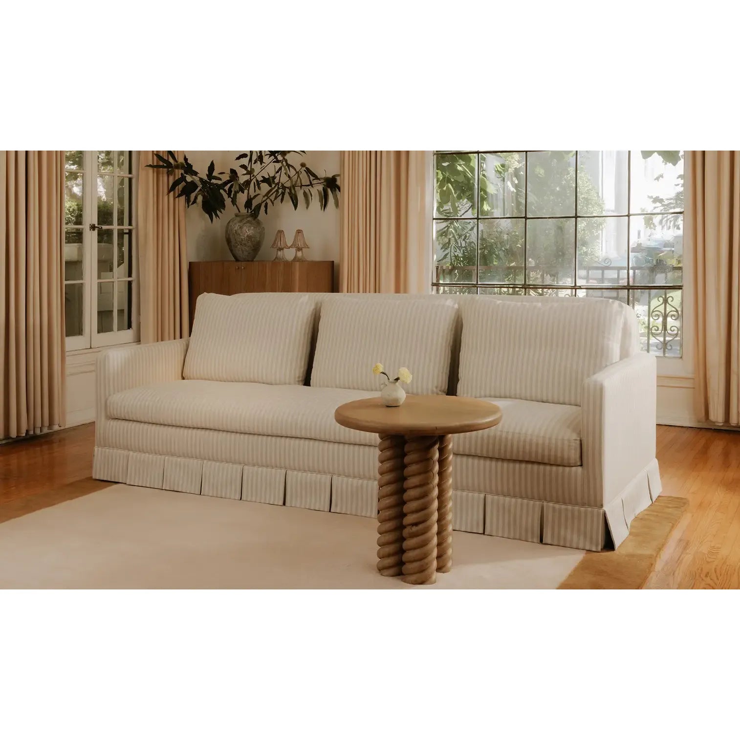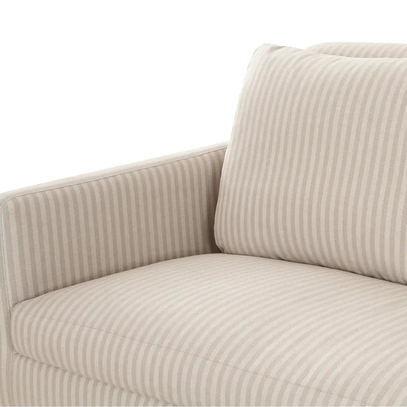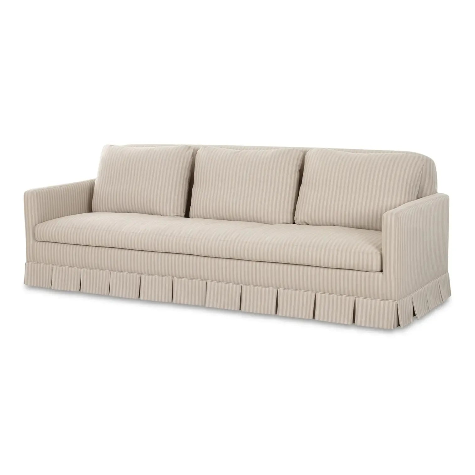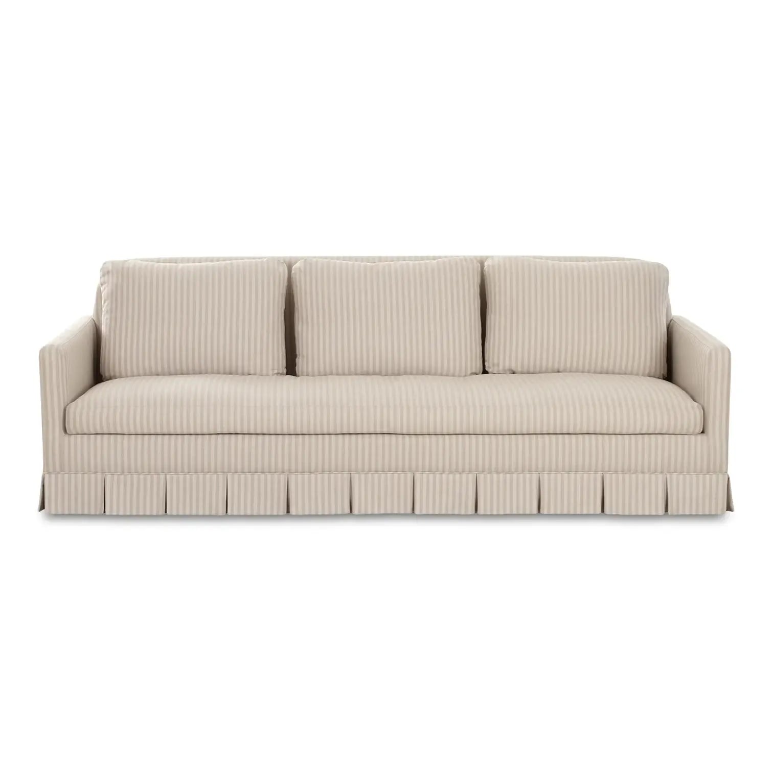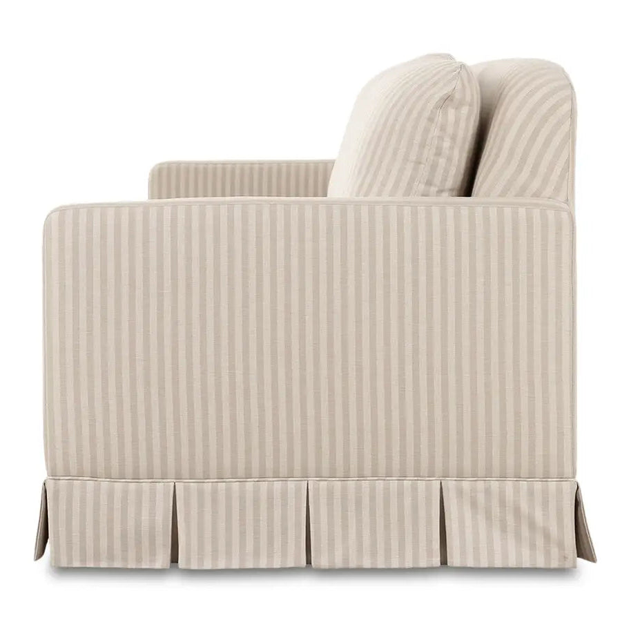 Gillian Segal for Moe's The Pellicano Sofa presents a romantically skirted silhouette, artfully pleated while echoing the enchanting essence of Italy. Upholstered in a hardwearing Performance Fabric in a versatile hue, it provides forgiveness to everyday wear while evoking the same beguiling charm as its namesake, Hotel Il Pelicano. Each curve and hue whispers tales of Italian escapades, inviting a sense of refined nostalgia with a touch of poetic grace.