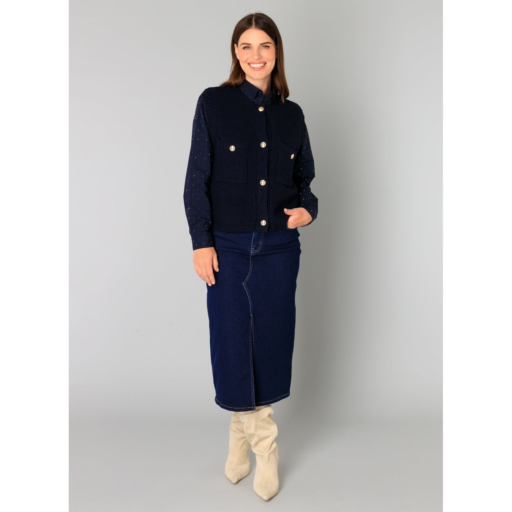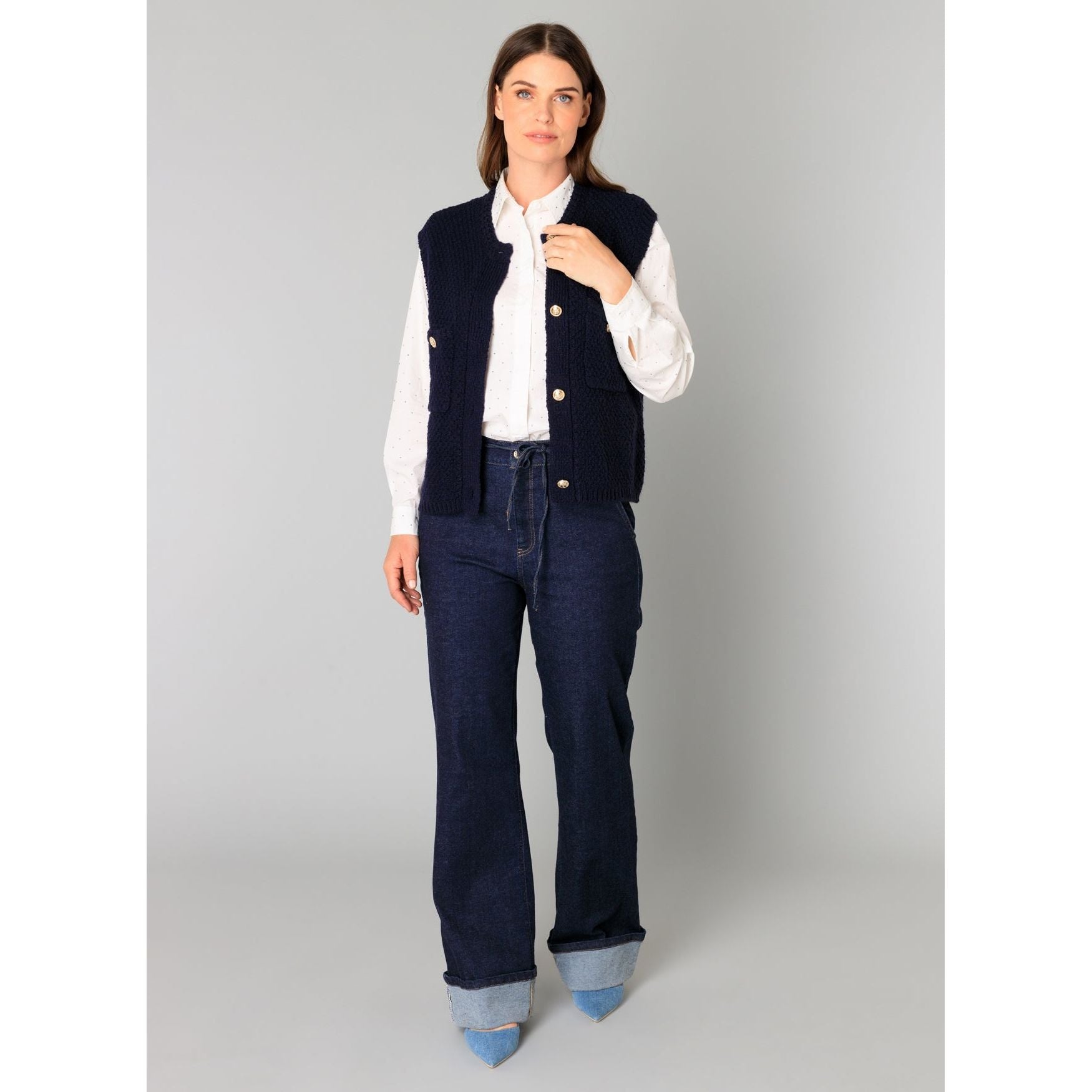 The Brenda sweater vest is a chunky knit, classic style with a trendy twist thanks to the eye-catching buttons. This versatile vest is ideal for creating different styles, from casual to more dressy. The thick structure gives your look an instant cool and warm feel.