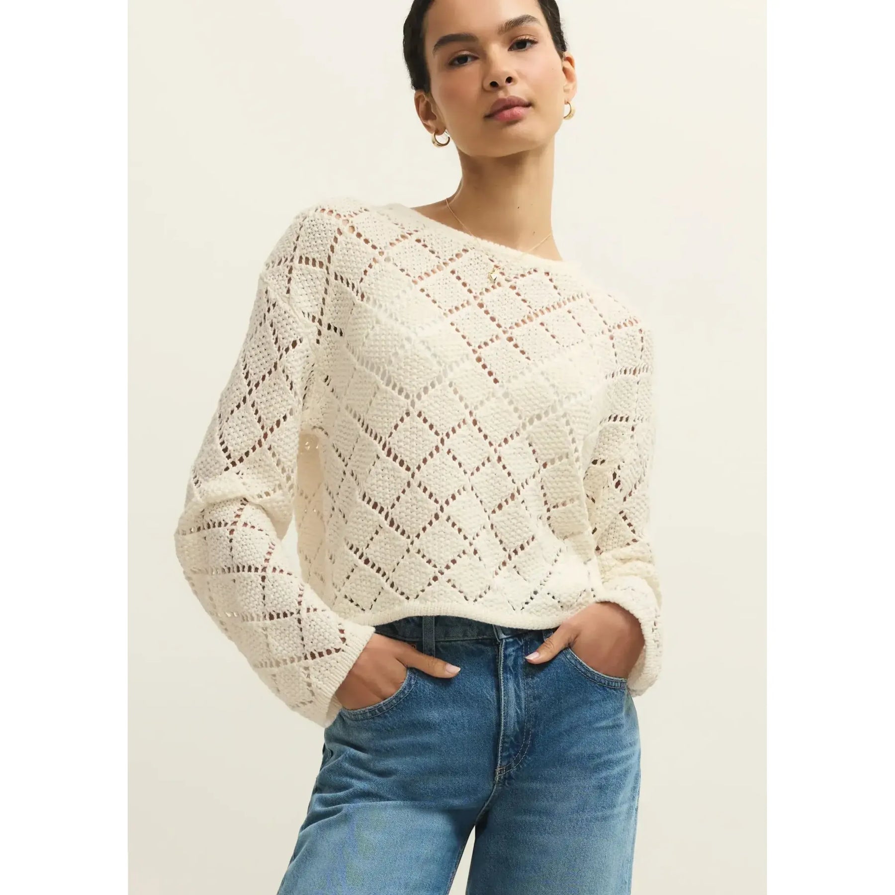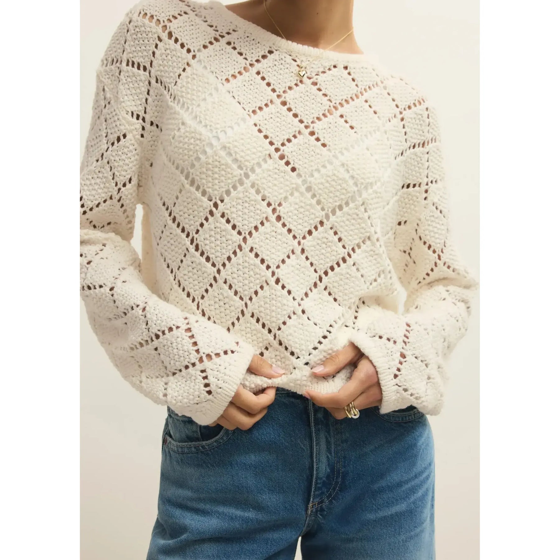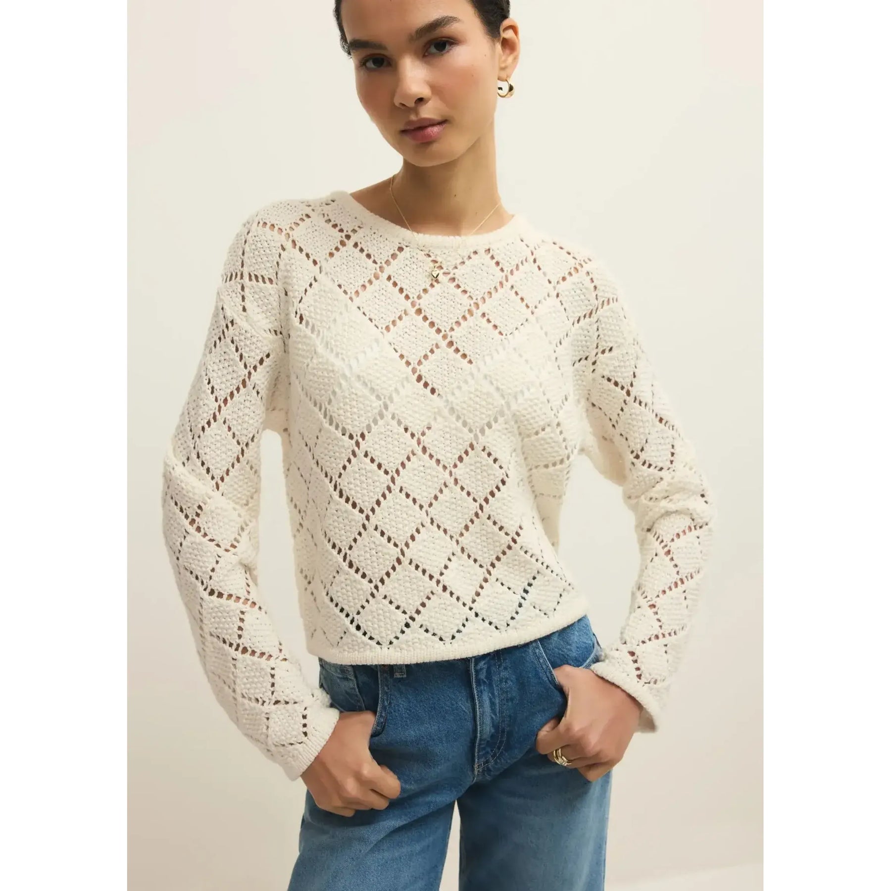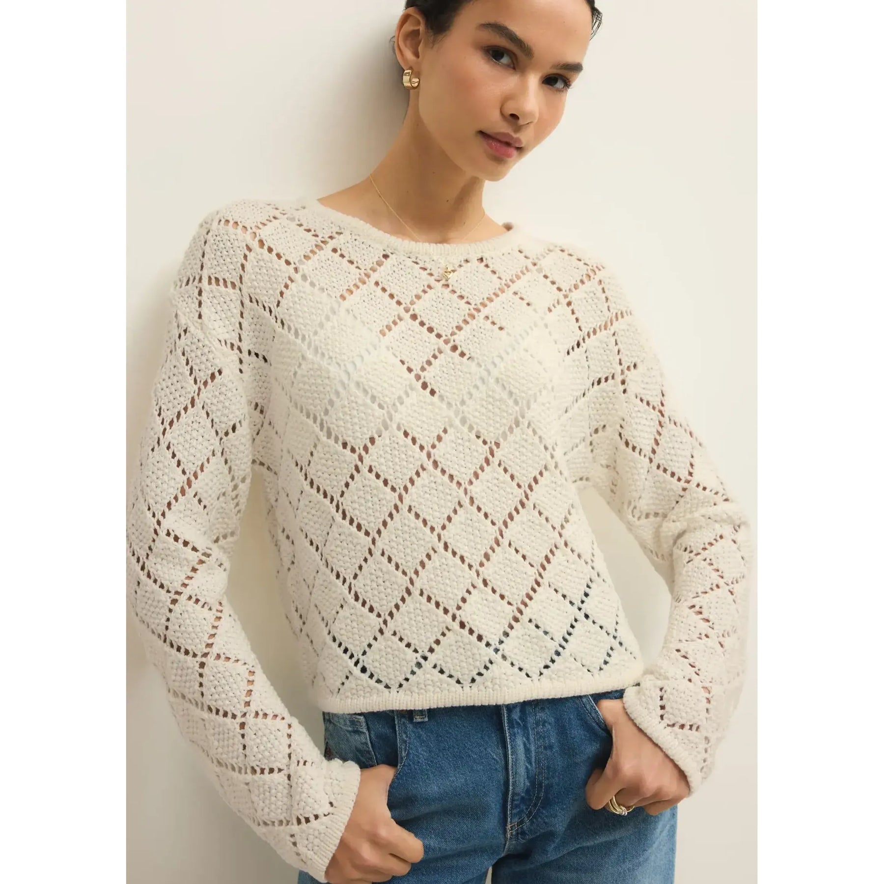 Crafted from premium diamond cotton yarn, the Hullen Crochet Sweater delivers breathable comfort with refined construction. The classic crew neck silhouette pairs effortlessly with any wardrobe, while the lightweight fabric ensures all-day wearability without bulk. Perfect for layering or wearing solo, this piece showcases expert crochet detailing that elevates casual styling with understated sophistication.