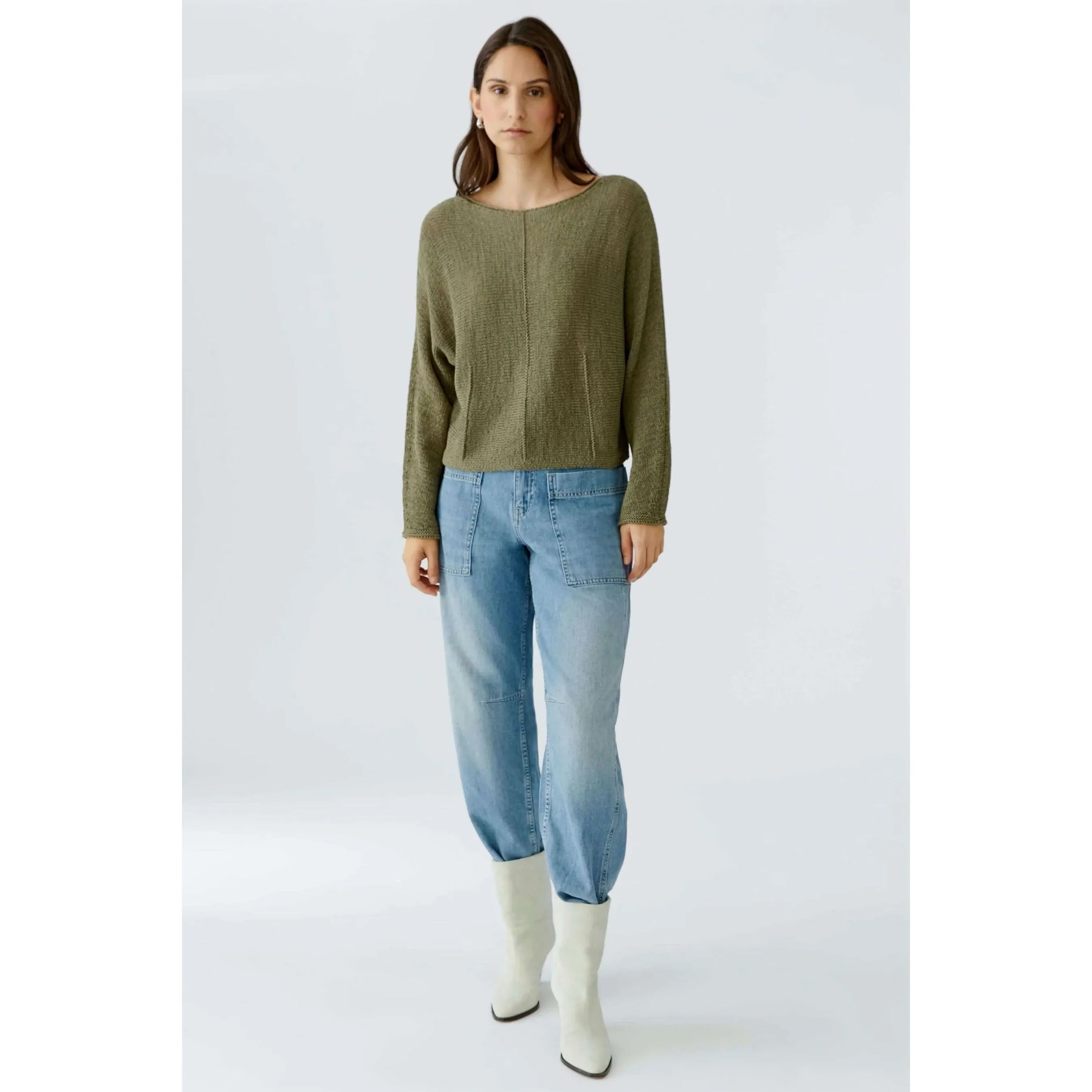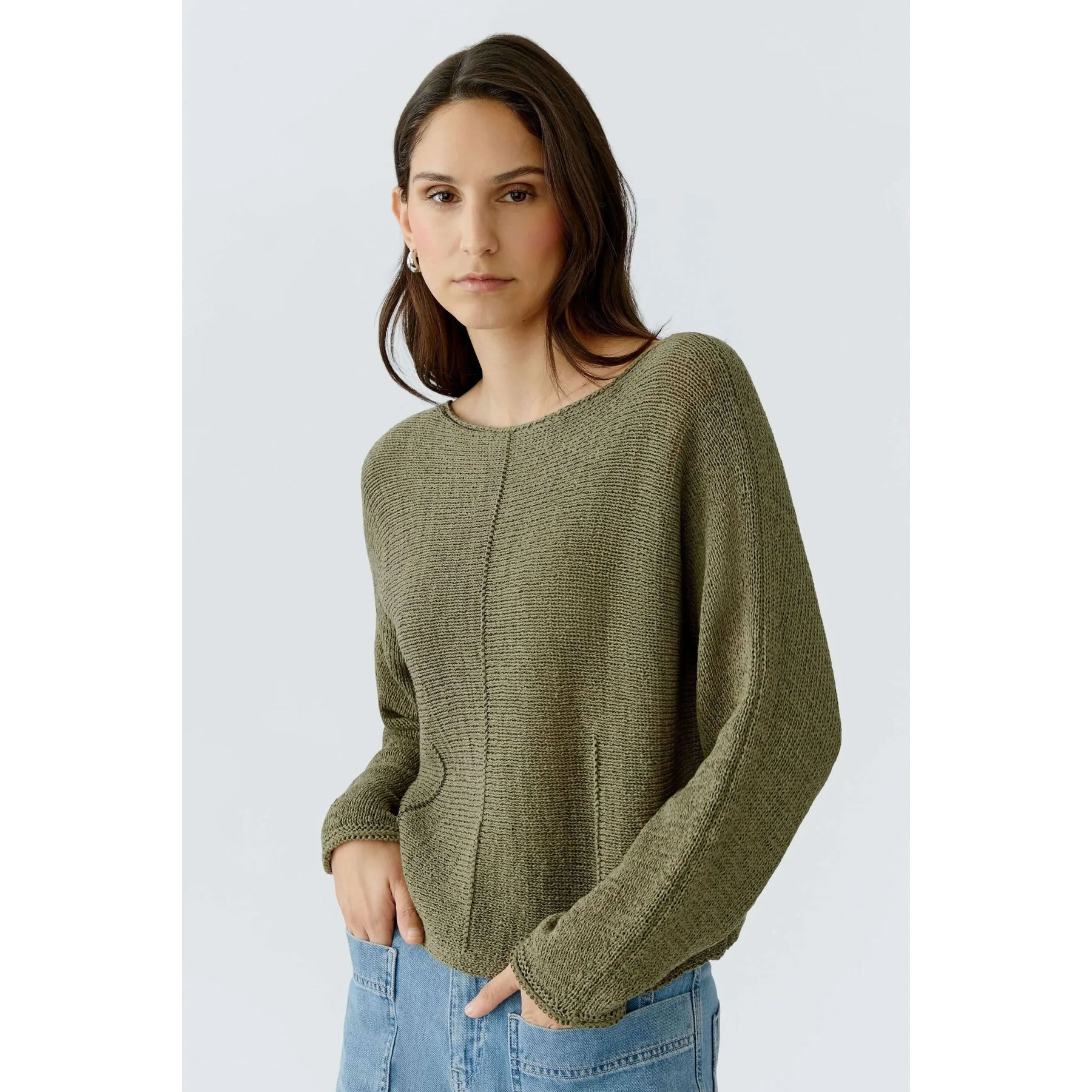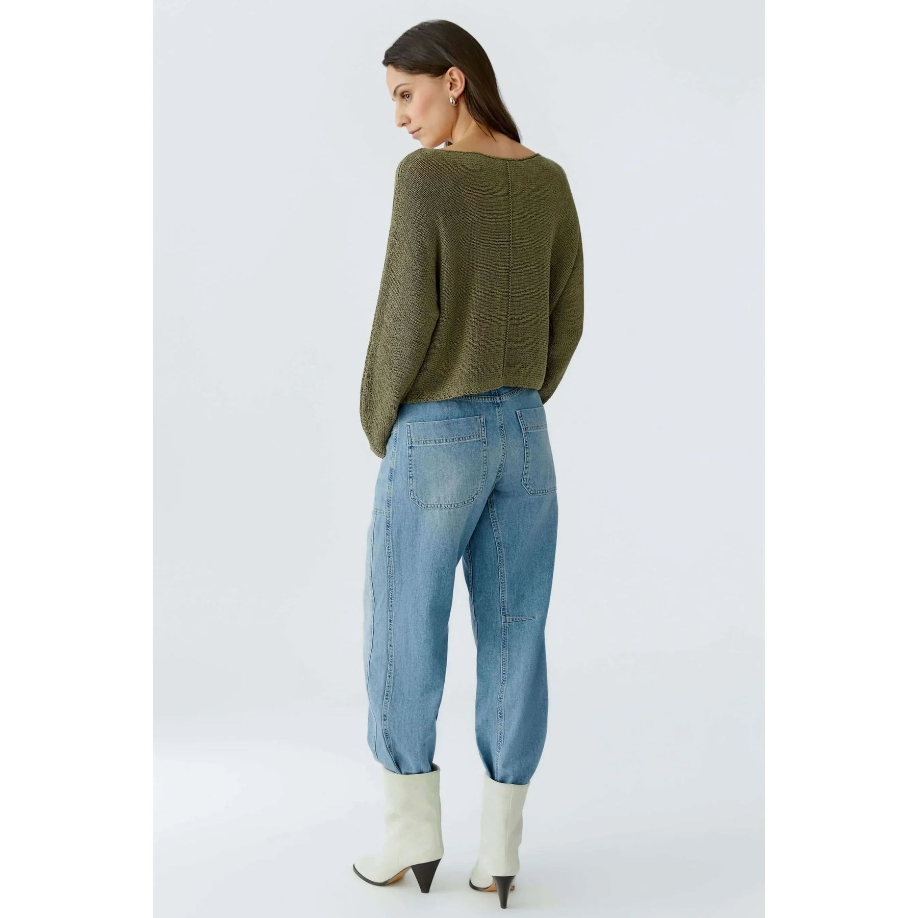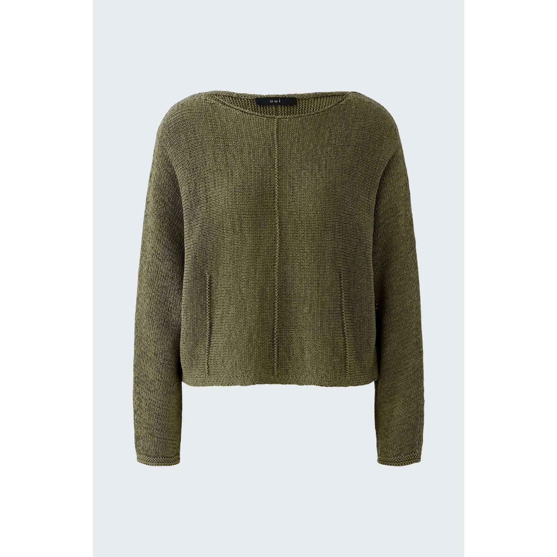Ribbon yarn Pullover with knitted dart details