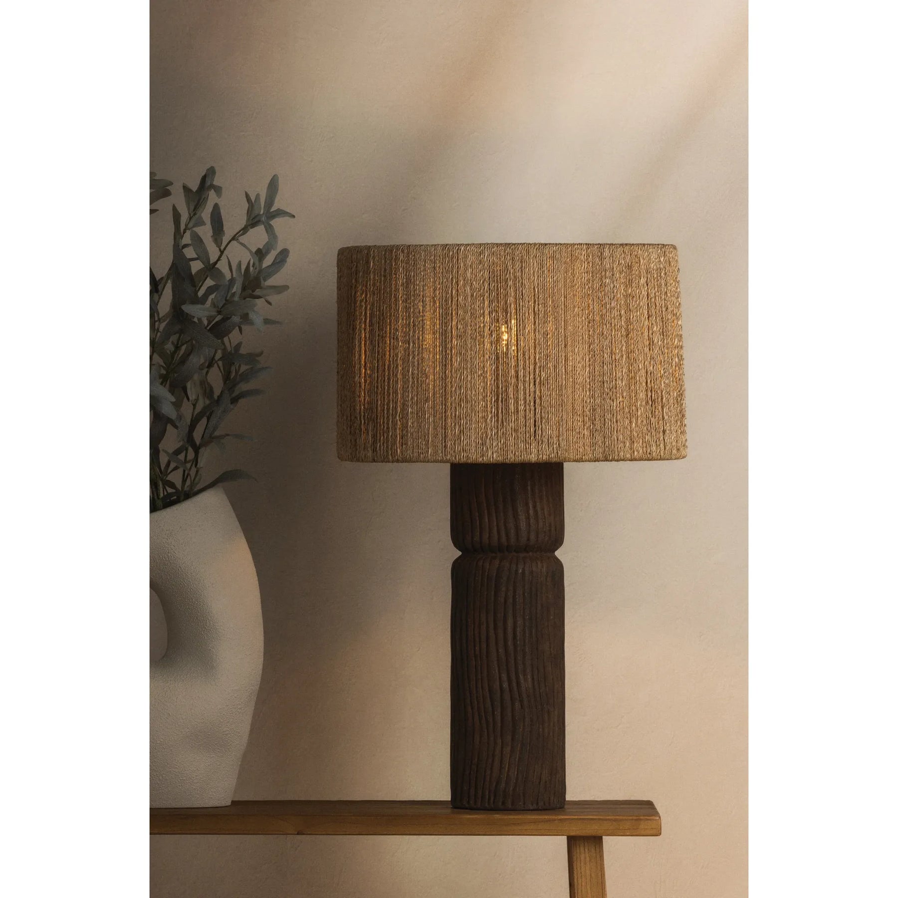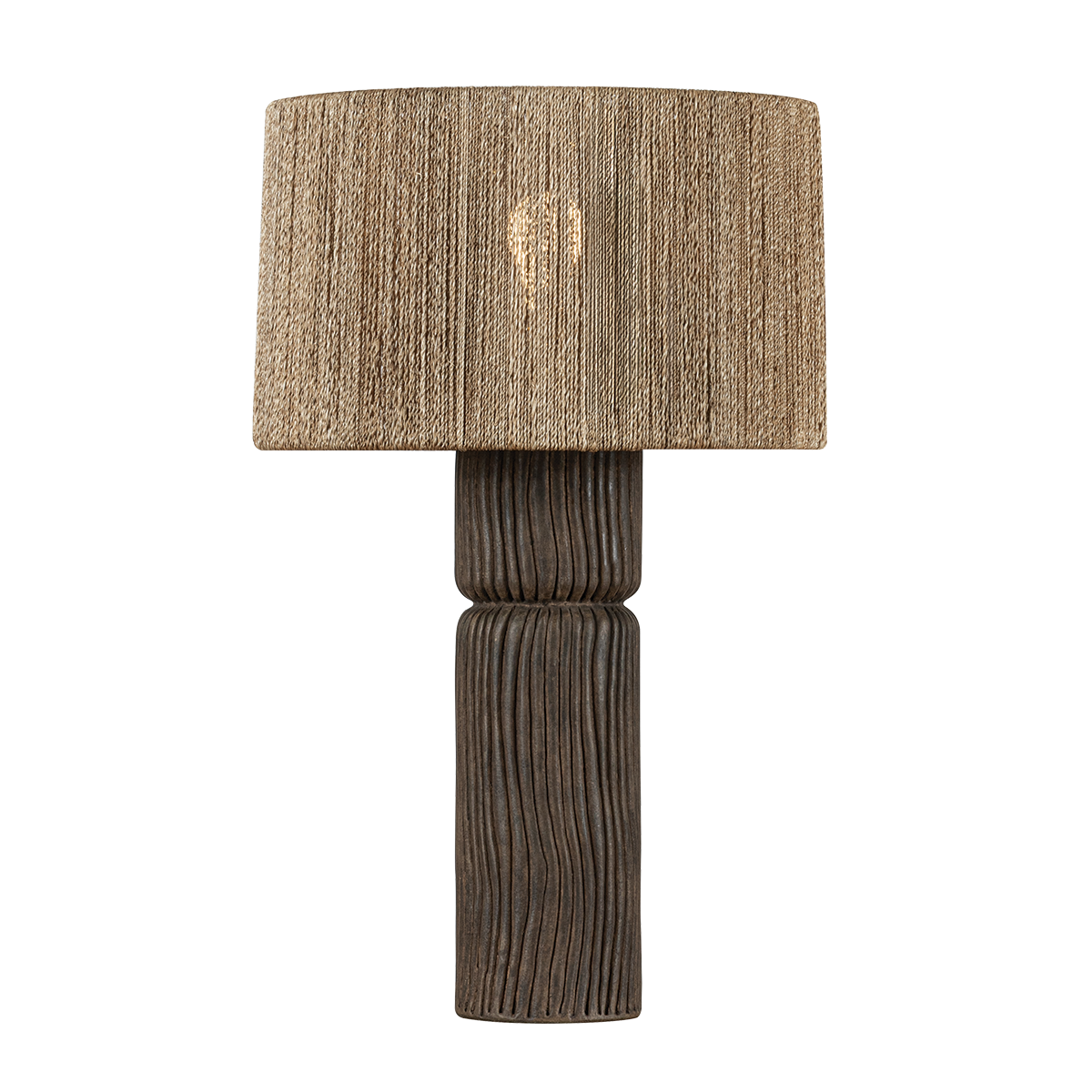 Celebrating natural texture and form, the Folk lamp pairs an earthy ceramic base with a handwoven abaca string shade. Raked grooves along the cylindrical base echo the shade’s flowing strands, creating sculptural harmony and vertical movement. Patina Brass hardware adds a subtle touch of refinement to this richly layered design.