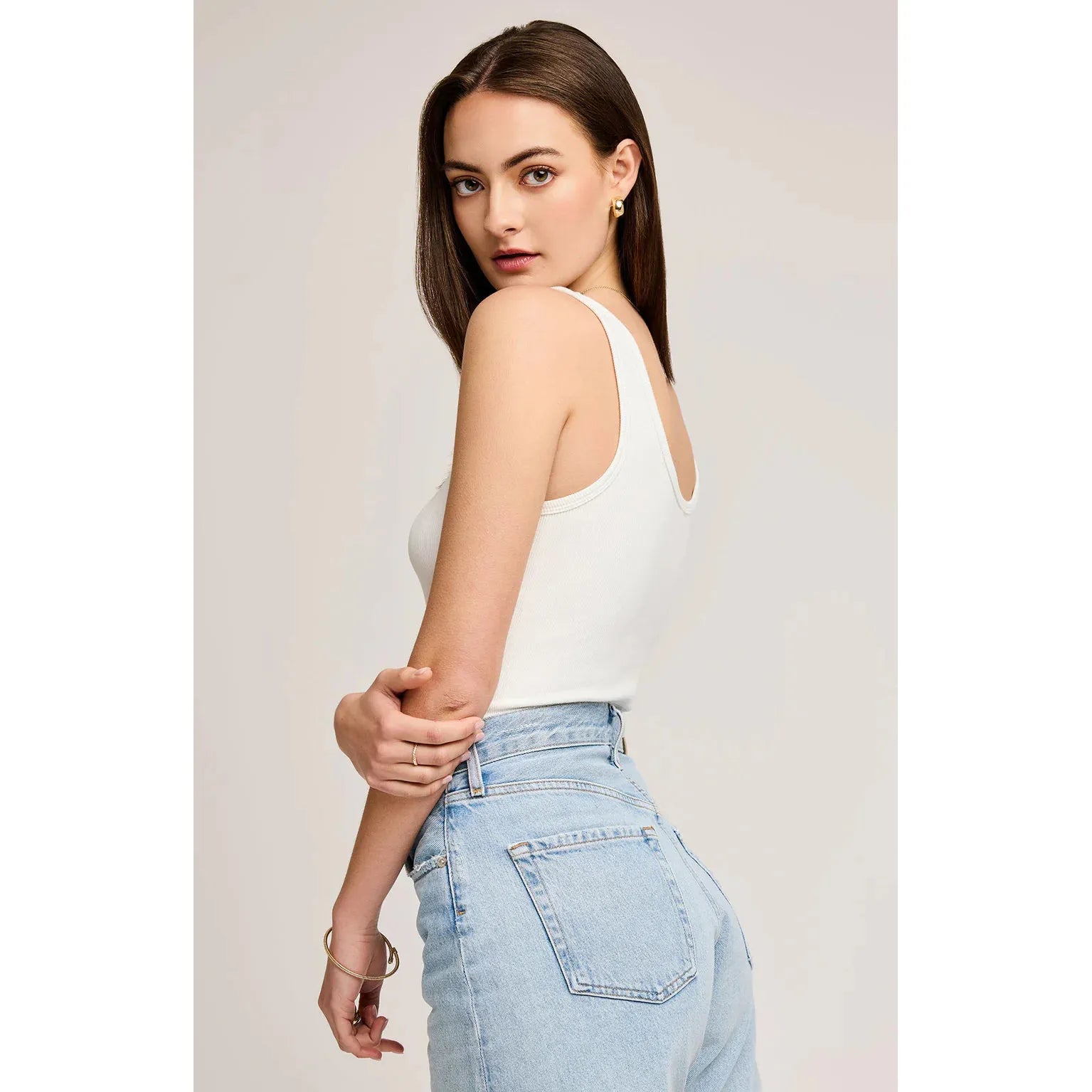 The Nina tank is made of a stretchy ribbed fabric that hugs the body. The flattering U-shaped neckline is perfect for everyday wear.