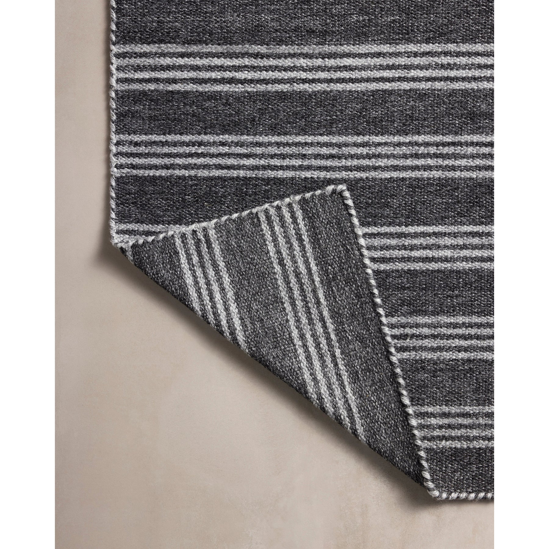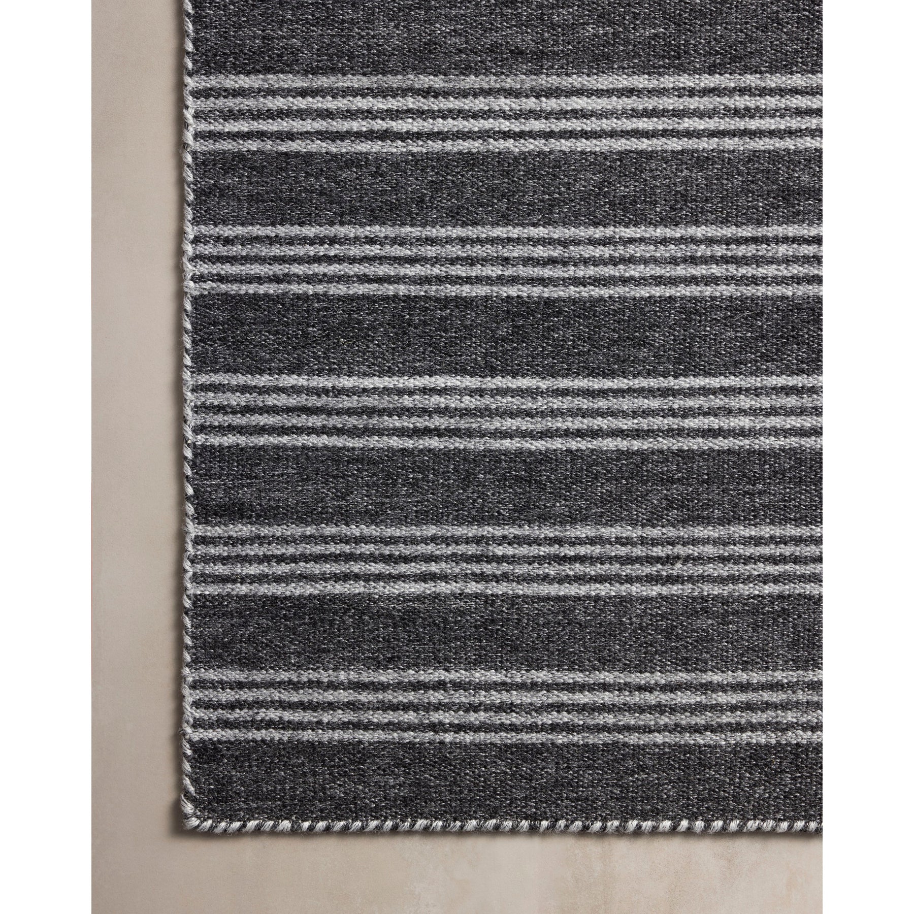 The Charlie Collection by Joanna Gaines x Loloi is an indoor/outdoor area rug with a timeless design inspired by ticking stripes. This easy-to-clean and durably made rug can hold up to high-traffic mudrooms and entryways, or anchor a backyard deck or patio. Charlie is hand-loomed of 100% recycled post-consumer polyester that saves post-consumer plastic bottles from ending up in landfills. This collection is made in India and GoodWeave-certified, ensuring our commitment to ethical production and the support of weavers' communities. To clean, hose off and air dry.