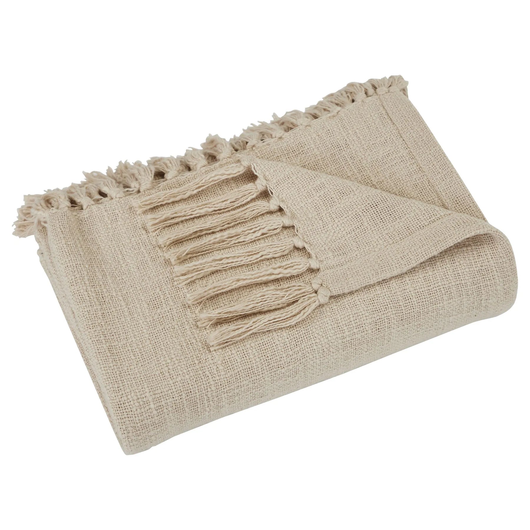 Woven from 100% cotton, this natural-beige blanket features a luxurious texture and eye-catching fringed trim for visual interest. Even when it’s not in use, this accessory adds beauty and dimension to any space. Throw it casually over a sofa or lay it at the foot of a bed to create a stylish layered look. Once you discover the relaxed vibe and cozy feel of this blanket, you may want to pick one up for every room.
