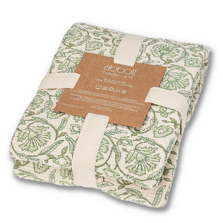 Green Floral Throw is made from 2 layers of soft, stonewashed 100% cotton that sandwich a layer of cotton yarn in between and finished with stitching. This lends a comfortable and cozy feel to these throws. It adds texture and warmth when curled up with a book or a stylish layer on your bed or couch.